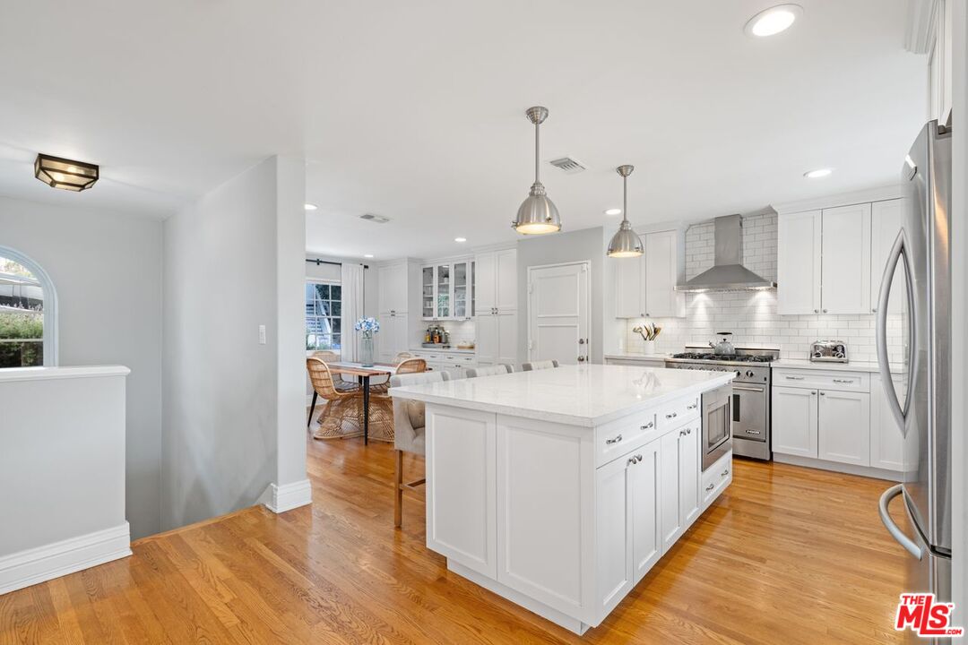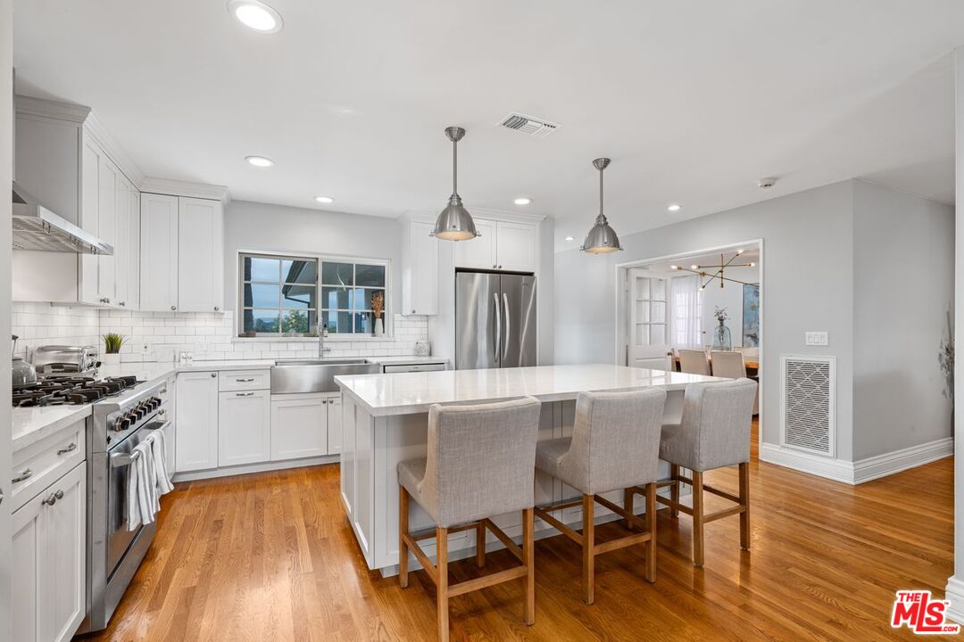 Welcome to your own private retreat nestled south of the boulevard in the coveted hills of Sherman Oaks. This stunning Santa Barbara-inspired hacienda has been thoughtfully upgraded to blend timeless architectural charm with modern comfort. Sunlight pours through expansive windows, illuminating rich wood floors and clean, elegant lines throughout.The gourmet chef's kitchen is the heart of the home, complete with stainless steel appliances, a generous center island with bar seating and a custom breakfast nook ideal for morning gatherings. An expansive formal dining room sets the stage for unforgettable dinners, flowing seamlessly into a sophisticated living room adorned with a fireplace, oversized windows and access to a sweeping balcony with scenic views.The romantic primary suite is a true retreat, featuring its own private balcony, a spacious walk-in closet and a spa-like en suite bath with a soaking tub, dual walk-in shower and double vanities. Three additional bedrooms offer high ceilings, large windows and designer details, ideal for guests. Downstairs, discover a sprawling bonus room with original Spanish tile floors great for a game room, home gym, office or creative studio. This versatile space opens directly to your backyard oasis, where tropical palms frame a sparkling lap pool, BBQ station, lush turf and multiple areas for lounging or dining al fresco.For added convenience and privacy, the property includes a separate attached guest quarters with its own entrance, two bedrooms and a full bathideal for visitors. This home is the ultimate blend of smart home technology, luxury, warmth and California lifestyle with many upgrades including new roof, HVAC, outdoor Kitchen/BBQ, exterior lighting, epoxy garage flooring, cameras and pool pump. Don't miss your chance to own this one-of-a-kind sanctuary in Sherman Oaks.Interested in this Listing?