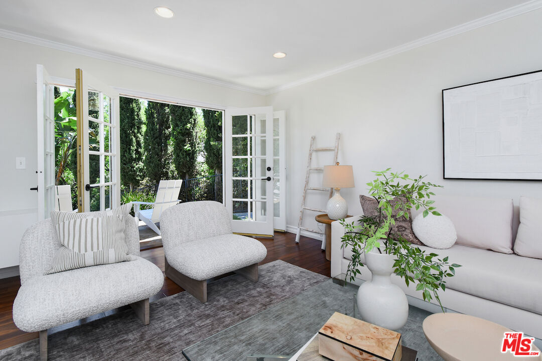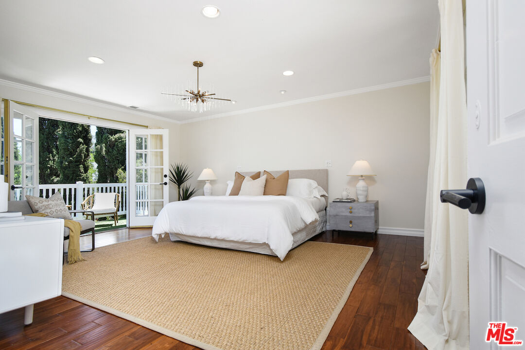 Nestled in the serene hills of Sherman Oaks, this unique traditional home is located on a quiet cul-de-sac near Mulholland Drive. Set back from the street and accessed via its own private driveway, the property offers a tranquil setting with canyon views. Step inside to discover a bright, open living space featuring hardwood floors throughout. The spacious living and dining rooms are enhanced by a fireplace and French doors that open to the private patio, creating an inviting indoor-outdoor flow. The large kitchen includes Thermador stainless steel built-in appliances, good cabinet space, granite countertops, and a charming breakfast nook overlooking the garden. The generously sized primary suite offers a peaceful retreat with an en suite bathroom, complete with a soaking tub, glass shower, and dual vanities. Additionally, there is a walk-in closet and a private balcony with a beautiful city light view. Other highlights include an indoor laundry room, a two-car attached garage, and extra driveway parking. The yard features a grassy area and gardens, all surrounded by mature greenery, ensuring privacy and tranquility. Desirable location and wonderful neighborhood with sidewalks and easy access to Beverly Hills, Century City, all canyons and the Westside. Roscomare Road School District.Interested in this Listing?