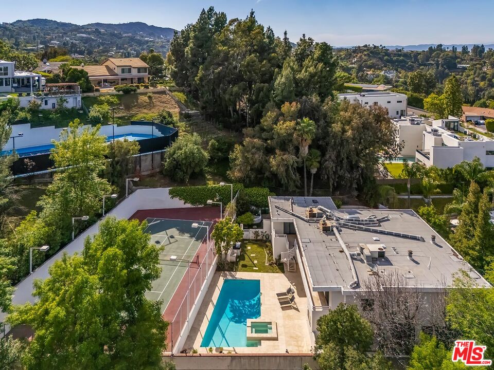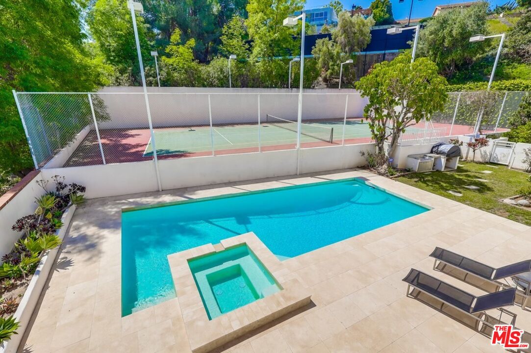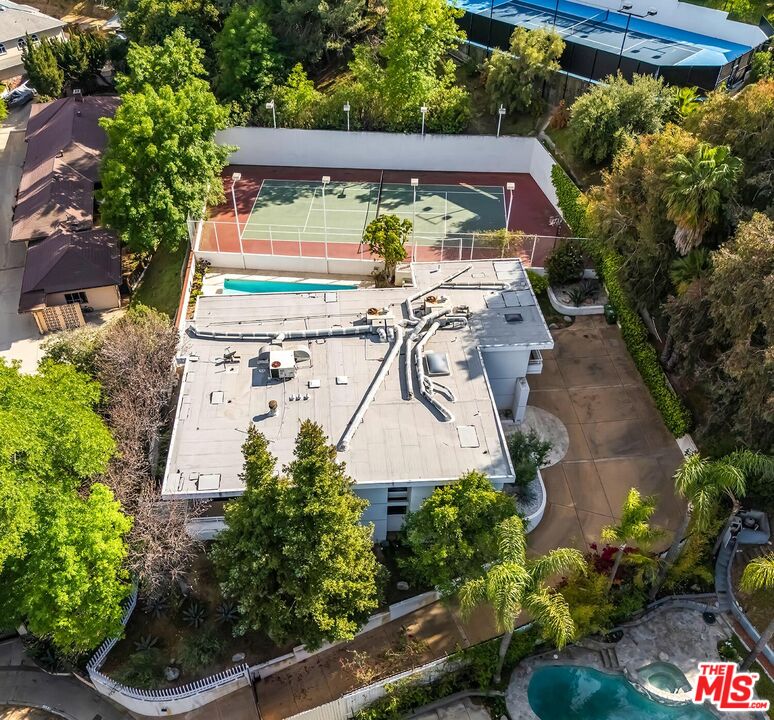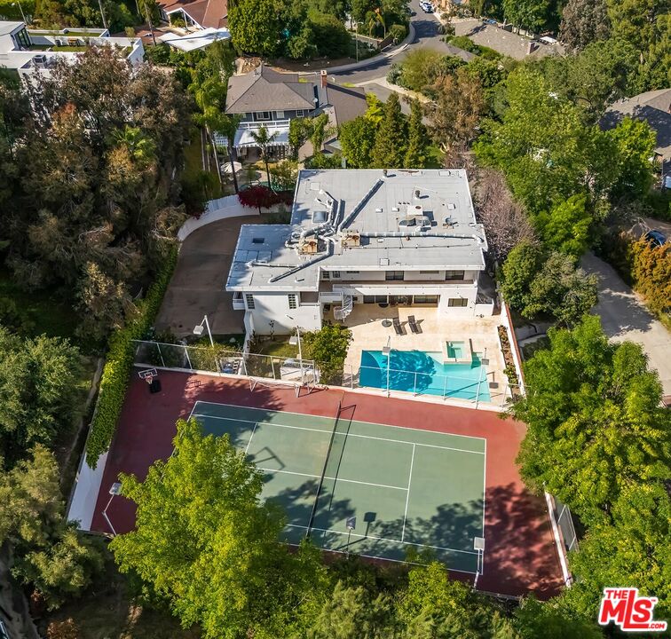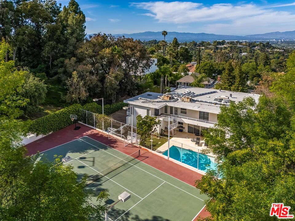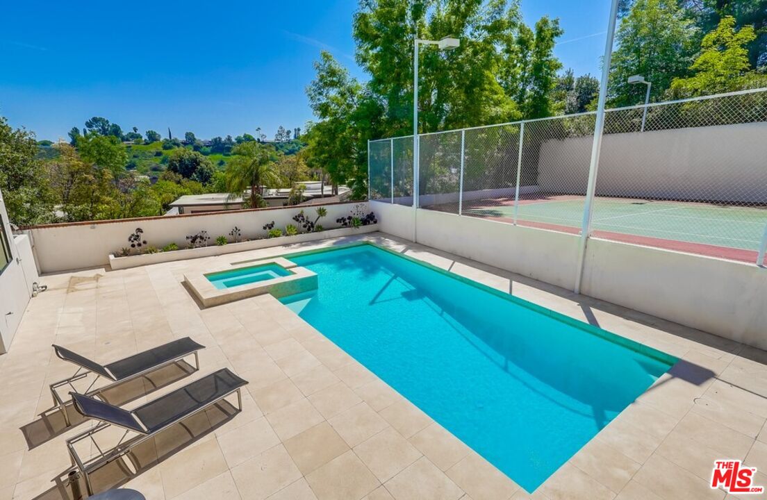Gated private villa/tennis court estate on a quiet cul-de-sac in Royal Woods section of Sherman Oaks. This is an urban oasis and entertainer's delight! Expansive and secluded near 20,000 sq ft lot with a large elevated flat pad offering unmatched privacy and entertainment possibilities with motor court, 3-car garage, pool and tennis court and relaxing hillside views. The house is appx 5000 sq ft of wide open hallways, high ceilings, gracious room sizes and a large open family room with wet bar with direct access to pool and tennis court. Upstairs there is the primary suite and three additional en suite family bedrooms. Downstairs there is den/office and fifth bedroom, both located conveniently off the entry. Easy Westside access via Sepulveda or the 405. Must see to fully appreciate this high impact home.Interested in this Listing?