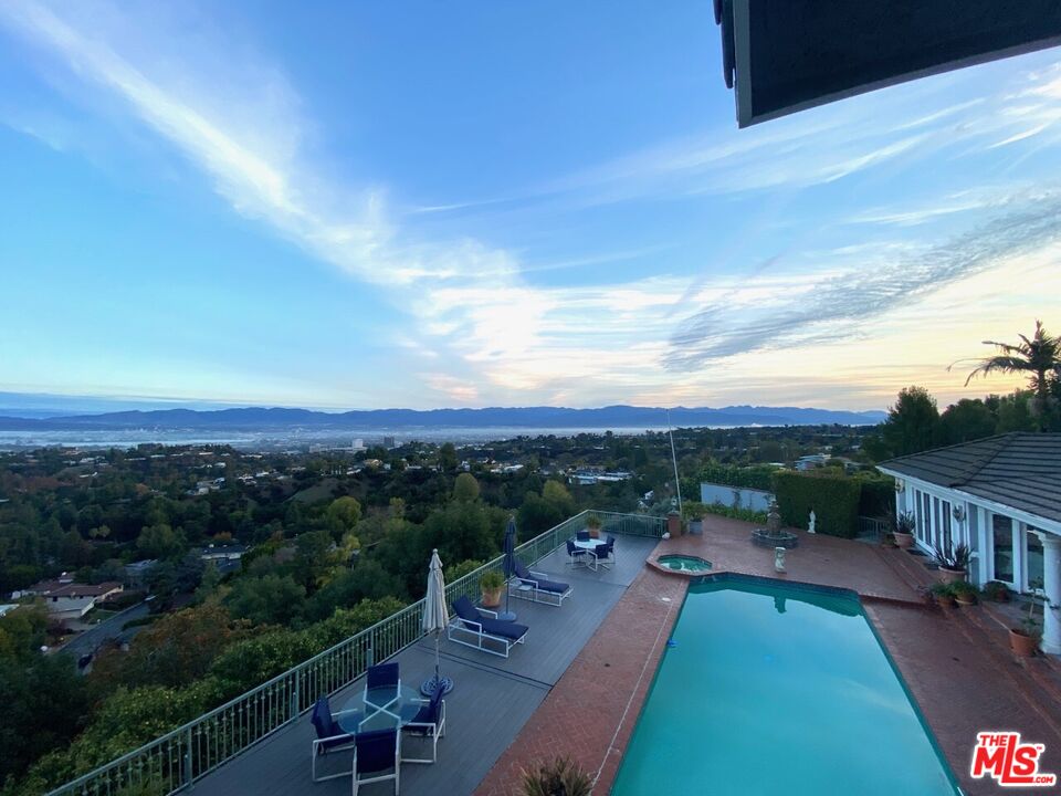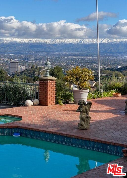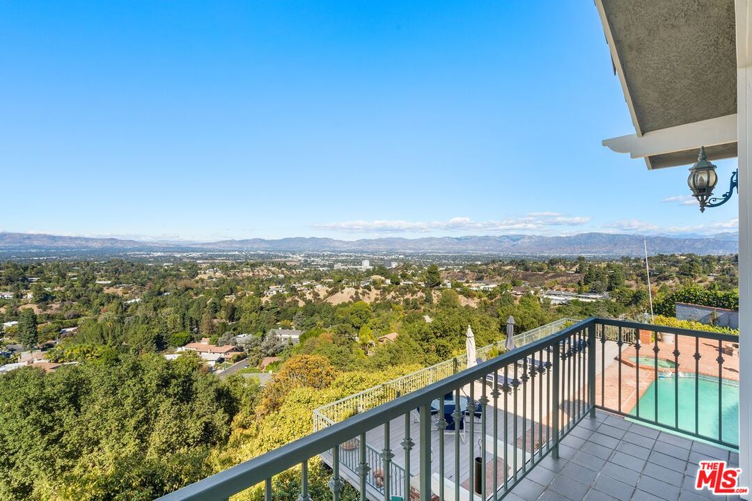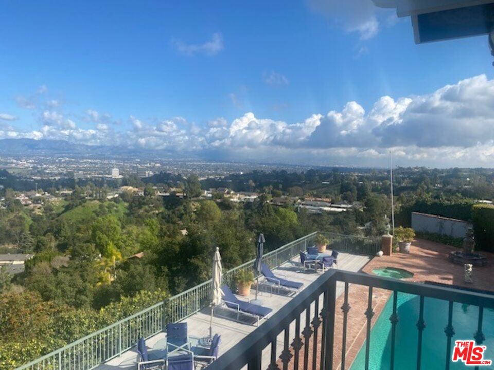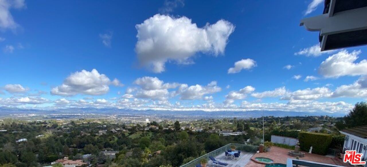 Top of the world views from this spacious home in desirably located Sherman Oaks. Overlooking a huge portion of the Valley with incredible views and total privacy on cul-de-sac street with under ground utilites and street lights. Close to the Skirball Cultural Center and private schools. Minutes to UCLA, West side, Westwood, Hollywood, Brentwood and Beverly Hills and good access to Mulholland Drive. Minutes to shopping and food. Light and bright Traditional Home with Views from most areas of the home. Double door entry with high ceilings and crown moldings. Large Living room features high ceilings, wood flooring, Fireplace, French doors. Formal dining room with large leaded glass windows. Spacious family /media room. Custom white oak cabinetry built-ins, surround sound speakers, accent lighting, wet Bar /refrigerator and fireplace. Opens out to an entertainer's dream backyard with pool/spa and water fountain. Large covered entertainer's patio. Makes for the perfect indoor-outdoor lifestyle! Your own private oasis. Center Island kitchen with breakfast area, leaded glass windows and custom white oak cabinetry, Viking stove, with large Hood and Fan, custom stainless-steel appliances, granite countertops walk in pantry. Primary bedroom suite with fireplace, large dual side walk-in closet, Large bathroom with double sinks, spa tub, bidet. French doors opens to balcony overlooking fabulous views. The second bedroom is very private and has its own bathroom, ideal for guests. Two bedrooms are used as offices.Interested in this Listing?