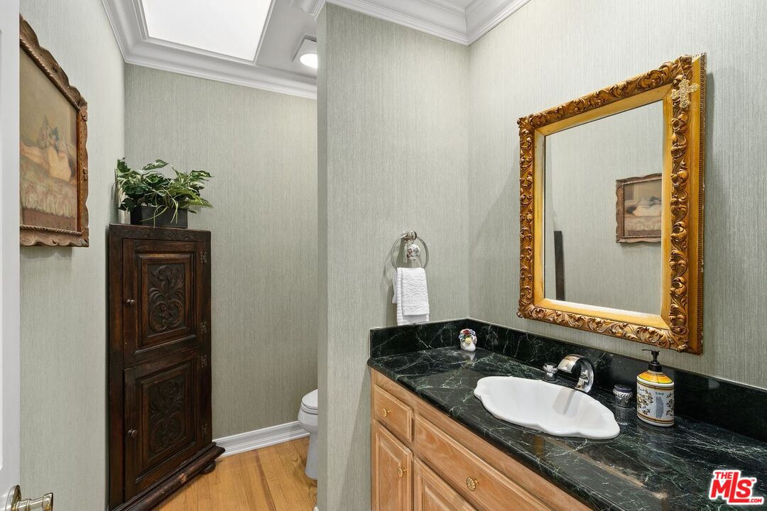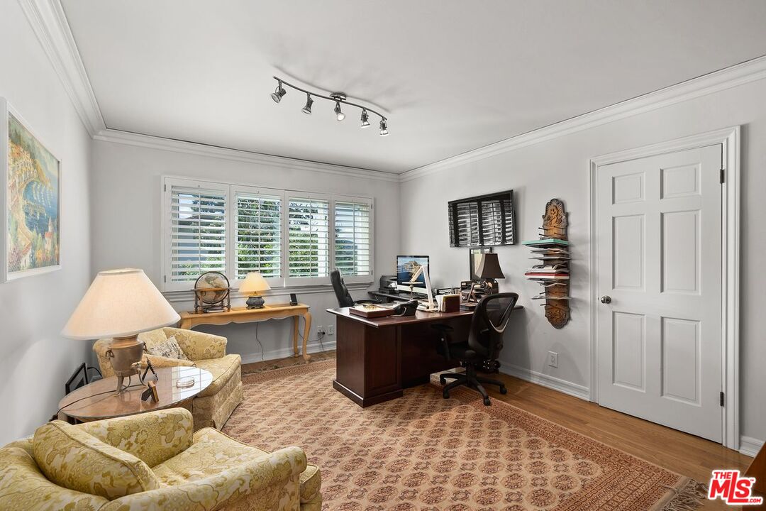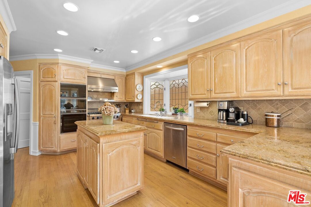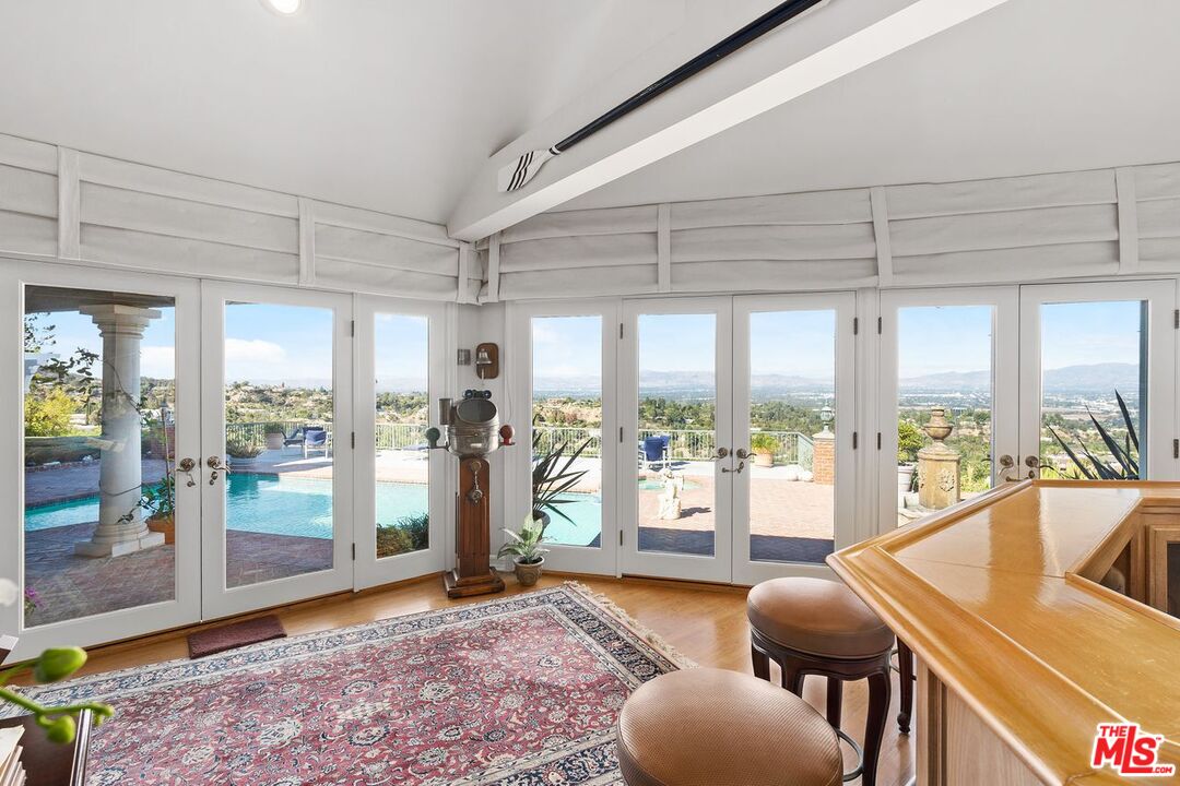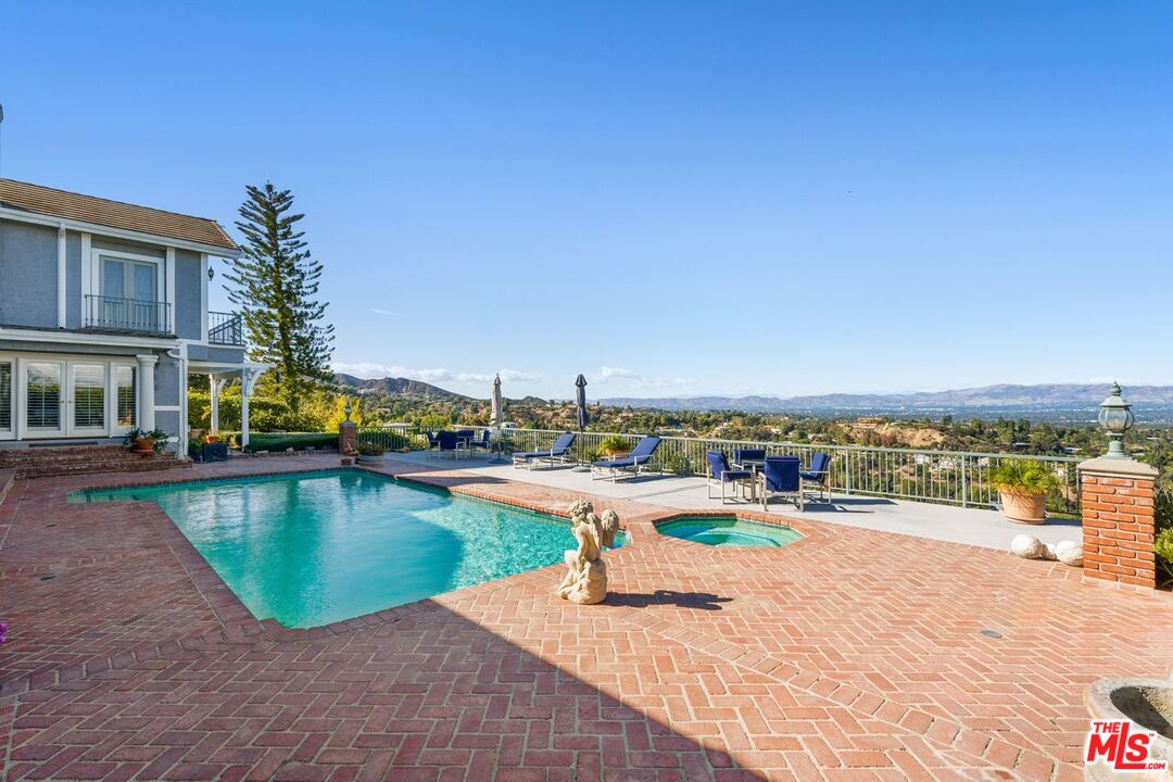 Top of the world views from this spacious home in desirably located Sherman Oaks. Overlooking a huge portion of the Valley with incredible views and total privacy on cul-de-sac street with under ground utilites and street lights. Close to the Skirball Cultural Center and private schools. Minutes to UCLA, West side, Westwood, Hollywood, Brentwood and Beverly Hills and good access to Mulholland Drive. Minutes to shopping and food. Light and bright Traditional Home with Views from most areas of the home. Double door entry with high ceilings and crown moldings. Large Living room features high ceilings, wood flooring, Fireplace, French doors. Formal dining room with large leaded glass windows. Spacious family /media room. Custom white oak cabinetry built-ins, surround sound speakers, accent lighting, wet Bar /refrigerator and fireplace. Opens out to an entertainer's dream backyard with pool/spa and water fountain. Large covered entertainer's patio. Makes for the perfect indoor-outdoor lifestyle! Your own private oasis. Center Island kitchen with breakfast area, leaded glass windows and custom white oak cabinetry, Viking stove, with large Hood and Fan, custom stainless-steel appliances, granite countertops walk in pantry. Primary bedroom suite with fireplace, large dual side walk-in closet, Large bathroom with double sinks, spa tub, bidet. French doors opens to balcony overlooking fabulous views. The second bedroom is very private and has its own bathroom, ideal for guests. Two bedrooms are used as offices.Interested in this Listing?
