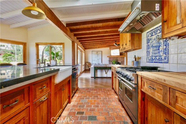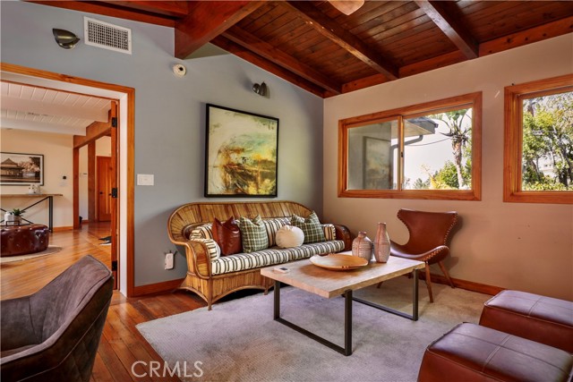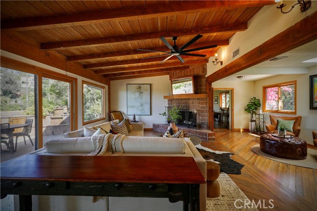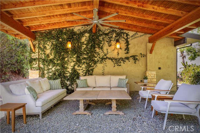 Private Hilltop Retreat with Panoramic Views! At the top of Ventura Cyn Ave., Koster Ave. is a short road that leads through a gated driveway to this very private, serene 3 bedroom, 2 bath home with den and study, of approximately 3000 square feet. The home was remodeled from the studs up through the roof by its loving owner of 27 years, an Emmy Award winning Cinematographer. Yellow pine flooring and cabinetry, antique French pavers, wood beamed ceilings, brick fireplace, marble kitchen island countertop and marble tiled bathrooms create a warm, cozy, rustic feel in this one story open floor plan with finished basement. Walls of dual pane windows allow for natural light and panoramic views of the Valley, nearby hillsides and distant mountains. Amenities such as subzero refrigerator, tankless water heater, insulated roof, and water filtration system add to the secluded, comfortable environment. Each bedroom including the ensuite primary opens to the outdoors. Spacious country-kitchen with dining and sitting areas looks out over the Valley and opens to the living room and patio with new hot tub and grill. 2 car garage, 2 car carport and space along the driveway provide for ample parking on this almost ½ acre lot. Enjoy the comfort and peaceful easy feeling that you long for in a home.Interested in this Listing?