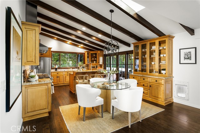 Timeless California-Ranch style home nestled on nearly one-half acre of land provides a private haven that ensures your relaxation begins the moment you arrive. Step into a large living room that offers panoramic views of the San Fernando Valley. Whether you are having a quiet evening or hosting a party this space is the perfect setting to take in our lovely California sunsets and enjoy the valley lights below. At the heart of the home is a chef s dream kitchen with a vaulted ceiling, rustic decorative beams and bar seating. The star of the kitchen is an eight burner Viking range with double oven, perfectly suited for crafting everything from cozy family meals to lavish dinner parties. Sliding French doors take you from the kitchen to a covered outdoor dining patio where you can enjoy the view. Terraced gardens with raised beds invite you to cultivate your own vegetables, herbs, and table flowers. The gardens also have fruit trees including lemon, grapefruit, apple and plum. Whether you prefer your personal retreat outdoors or inside this home has you covered. The pool is perfect for a refreshing cool down on our sunniest days and when you prefer an indoor retreat, the free-standing soaking tub in the primary bath offers another option to refresh mind, body and spirit. This three-bedroom, single level home offers privacy and the feeling of seclusion while being minutes away from everything Los Angeles has to offer. Whether you are entertaining guests or seeking your own escape, this gated retreat is a masterpiece of timeless Southern California charm. Welcome to a property where everyday living feels like a weekend get-away. Please view virtual tour.Interested in this Listing?