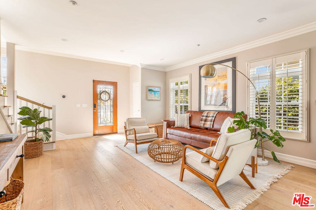 Crisp canyon air, awe-inspiring views, and a layout tailored for modern living define this radiant residence in the hills of Sherman Oaks. Framed by stacked stone and manicured landscaping, the entry unfolds to sunlit interiors of generous proportions anchored by light-toned oak flooring. Formal living and dining rooms extend seamlessly into the core of the home -- an open-concept great room with a wood-framed slider to the backyard. The kitchen features a central island, stainless steel appliances including double wall ovens and a gas cooktop, a prep sink, and quartz countertops. A built-in breakfast nook, wrapped in an enchanting bay window, invites immersion in the surrounding greenery. In the adjacent family room, a gas fireplace provides a cozy, sunlit gathering space. Designed with both relaxation and entertainment in mind, the outdoor living area includes a generous stone patio ideal for al fresco dining or lounging and a newly installed turf lawn surrounded by mature hedges. Enhancing the property's connection to the natural environment, far-reaching views stretch from the lush canyon to distant city lights and a meandering path descends the hillside. The two-level floor plan provides thoughtful separation and flexibility. On the main level, two well-appointed bedrooms share a full bath -- ideal for guest accommodations, office space, or extended stays. Upstairs, the expansive primary suite features a Juliet balcony, dual closets, and a spa-like bath with a soaking tub, double vanities, and glass-enclosed shower. Two additional ensuite bedrooms and a dedicated laundry room complete the upper level with both functionality and style. Ideally positioned just minutes from Ventura Boulevard, with easy access to renowned dining, boutique shopping, and prestigious private schools including The Buckley School and Harvard-Westlake, this hillside haven presents a rare opportunity to experience elevated living in one of Sherman Oaks' most desirable enclaves.Interested in this Listing?