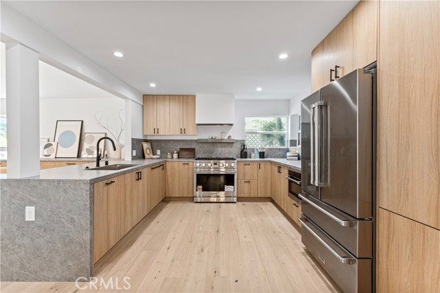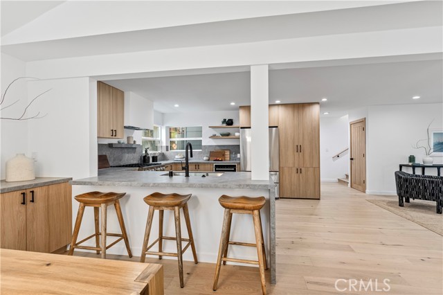 Nestled in the foothills of Sherman Oaks off Beverly Glen, this exquisitely remodeled four-bedroom residence graces a picturesque street. Its premier location offers unparalleled access to the vibrant array of shops and restaurants that Sherman Oaks is renowned for. The living and entertaining spaces blend seamlessly, creating an ambiance suffused with light, luxury, and effortless sophistication. The updated kitchen seamlessly merges style and practicality with shaker-style cabinetry, exquisite countertops, Thor range, and a spacious island adjacent to the dining room. This open-concept layout flawlessly integrates the kitchen and family room with the backyard, providing an idyllic setting for both relaxation and social gatherings. The main floor encompasses a bright and airy living room with an abundance of natural light and stunning views. Family room offers built-in cabinetry with a wine fridge, and a balcony overlooking lush treetops, it exudes tranquility Notably, one of the bedrooms boasts a separate entrance and an en-suite bathroom. Ascending upstairs reveals the private primary suite, offering a serene retreat. The primary bathroom boasts luxurious finishes, including a dual vanity sink and views. Additionally, upstairs two spacious bedrooms with a jack and jill bathroom. Outside, a generously sized private backyard is ensconced by mature hedges, evoking a serene oasis. The home offers a separate bonus room with a 3/4 bath that could be used as an office, playroom. Perfect for entertaining or unwinding, noteworthy features of the property include dual HVAC systems, new engineered flooring, elevator and an attached two-car garage. This residence epitomizes the essence of California living, seamlessly blending comfort, style, and unparalleled convenience. Enjoy breathtaking mountain views from the magnificent balconies. Situated just moments away from LA's westside, UCLA, The Galleria, and the vibrant dining and shopping district of the Village at Sherman Oaks, this contemporary haven epitomizes modern luxury living.Interested in this Listing?
