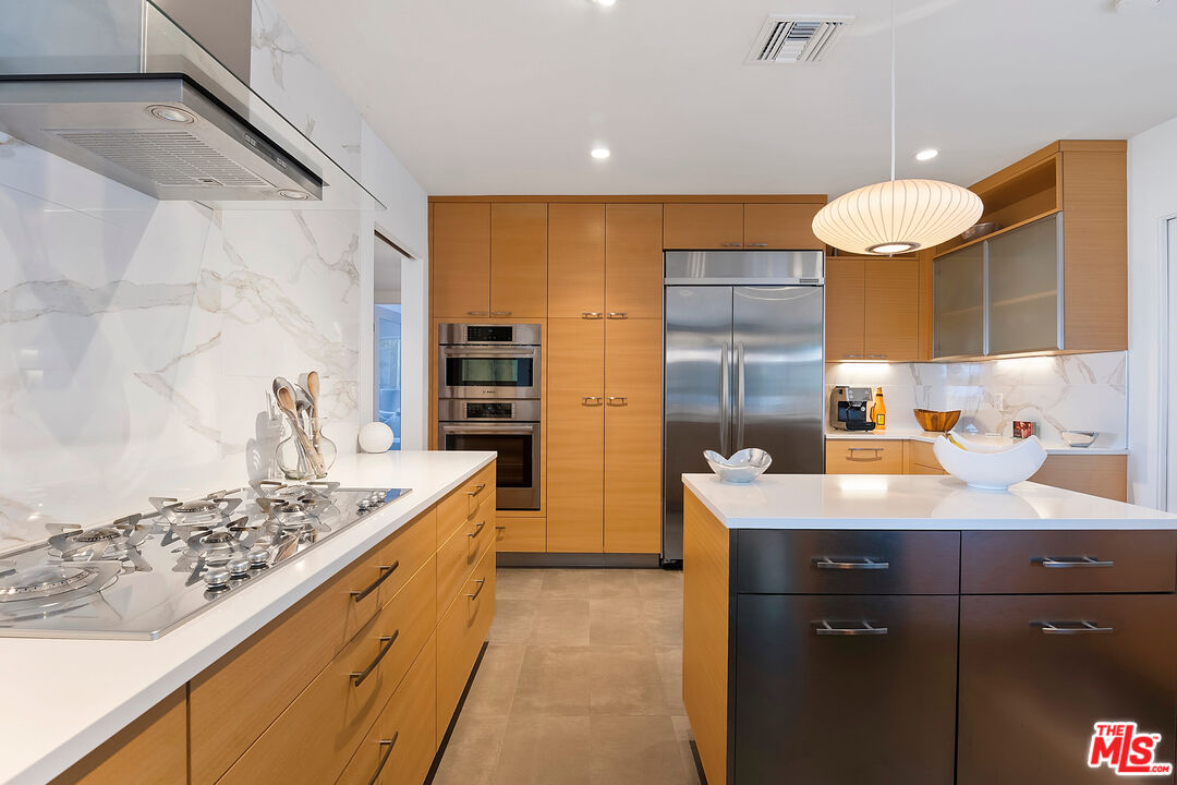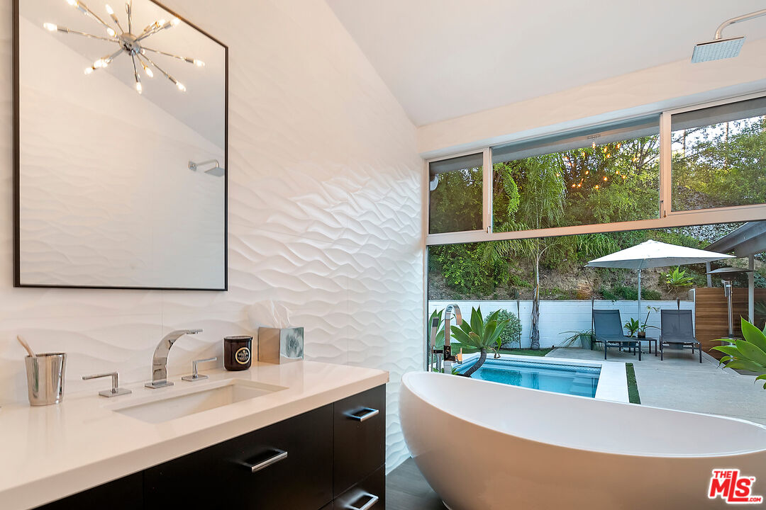 Mid-century modern gem lovingly restored and remodeled. This 3 bedroom 2 bath home is tucked into the foothills of Sherman Oaks just south of Valley Vista with privacy and walkability to restaurants and shops. It features an expansive chef's kitchen that's sure to delight. The kitchen opens seamlessly to the dining room, perfect for entertaining. Marvel at the commanding panoramic views of the valley with its spectacular twinkling lights from the spacious living room. Step out and enjoy the spa inspired private backyard and pool for easy indoor-outdoor living. In addition to 3 large bedrooms, there is also a spacious separate office with stunning views. This home was remodeled using environmentally conscious materials including Kahrs hardwood floors and Porcelanosa tiles. The Cambria quartz counters in the kitchen and bathrooms are attached using non-toxic soy-based adhesive. This property is close to major studios, has easy access over the canyons to the Westside and is the perfect serene setting to call home after a busy day!Interested in this Listing?