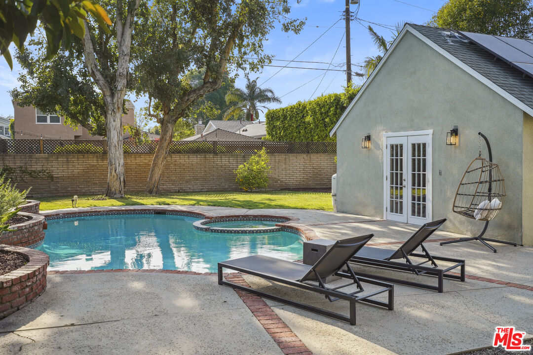 Originally designed and built by famed home builder WM Mellenthin, this exceptional residence has been thoughtfully expanded and updated with the design and amenities ideally suited for today's contemporary lifestyle. Crowning a sprawling, near 9,000 sq.ft. lot this Mid-Century California ranch resides in one of the most sought after neighborhoods, South of the Blvd. in prime Sherman Oaks. The handsome exterior offers remarkable curb appeal. Inside, the home resounds with a warm, welcoming aesthetic and an open flowing floor plan. Blending open space with stylish details, the primary living and entertaining areas become one in light, luxury and comfort. Wood floors grace the living areas. The kitchen is an open concept culinary center where style, form and function unite for the at home chef. Adorned with sleek subway tile, Caesarstone countertops and breakfast bar and top of the line professional appliances. Opening to the family room, it becomes the perfect gathering place for entertaining with friends and family. French doors give way to an idyllic backyard where the expansive pool and sprawling lawn define the Southern California lifestyle of endless al fresco leisure and limitless outdoor entertaining. Three bedrooms with three baths including a lux primary 2nd floor suite with soaring ceilings, walk-in closet and private view deck round out the comfortable accommodations. Highlights include a solar system, tankless water heater, pool automation, surround sound speakers, updated HVAC, EV car charger, and a detached studio/office adjoining the 2-car garage offering a myriad of possibilities! Located on an idyllic, picturesque tree lined street in the coveted Dixie Canyon Community Charter School District with proximity to The Buckley School and Harvard Westlake and just moments to the chic shopping and dining district along famed Ventura Blvd. Welcome!Interested in this Listing?