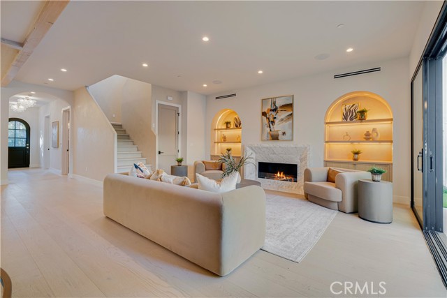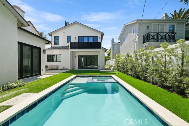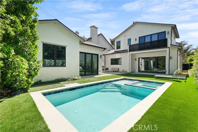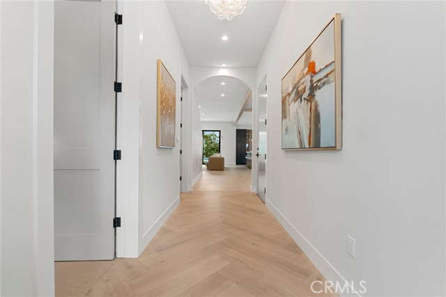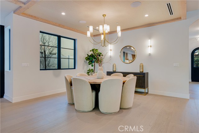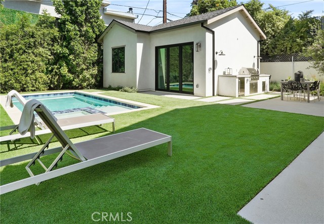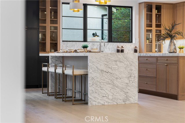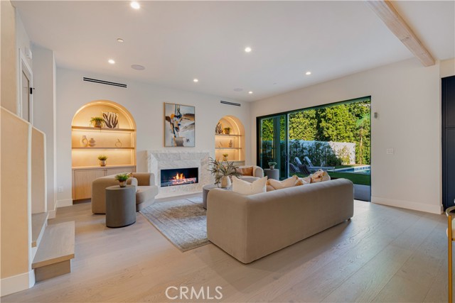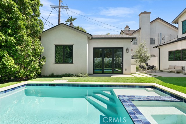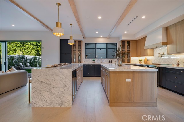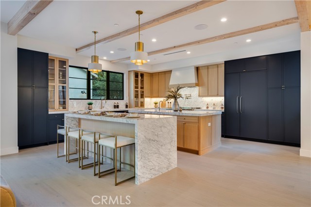 Discover the perfect blend of modern luxury and timeless elegance in this stunning, all-electric new construction, located on a peaceful, tree-lined street in the heart of Sherman Oaks. Now is your chance to seize an unparalleled deal this extraordinary home is priced significantly below recent comparable sales, offering a rare opportunity to own a bespoke luxury masterpiece at an exceptional value. Thoughtfully designed and eco-conscious, this Mediterranean-inspired retreat is the ultimate expression of sophisticated California living. Step through the gated front yard and custom-milled arched entry into a grand foyer adorned with herringbone wood flooring. From the start, you're met with elevated design featuring designer wallpaper, rich stain-grade wood ceiling beams, and a staircase highlighted by luxurious Roman clay walls. The striking facade, with its mix of classic brick and smooth stucco, sets a refined tone. Inside, the open-concept layout seamlessly connects the formal dining room and expansive family room, complete with ambient lighting and a warm fireplace. Floor-to-ceiling multi-panel sliding doors open to an entertainer's dream backyard, offering effortless indoor-outdoor flow. At the heart of the home lies a chef's dream kitchen featuring dual marble islands, top-of-the-line Thermador and Fisher & Paykel appliances, and custom rift white oak cabinetry. Every bedroom is ensuite and generously sized, including a convenient main-floor suite. Each is finished with elegant white oak floors and high-end marble accents. The primary suite is a true sanctuary, boasting a wood-clad cathedral ceiling, private balcony, oversized walk-in closet, and a spa-inspired bath with rift oak cabinetry and ambient lighting. Adding even more value, a detached 527 sq ft ADU includes its own bedroom and bathroom, soaring ceilings, induction range, and full Bosch appliances. This suite is perfect for guests, rental income, or a home studio. The beautifully landscaped backyard is made for relaxation and entertaining with a brand-new pool featuring a spa and baja shelf, a built-in BBQ area, turf lawn, drip irrigation, and privacy-enhancing podocarpus trees. Just minutes from Ventura Blvd.'s top dining and shopping, this is a home that delivers on every level - design, comfort, location, and investment potential.
