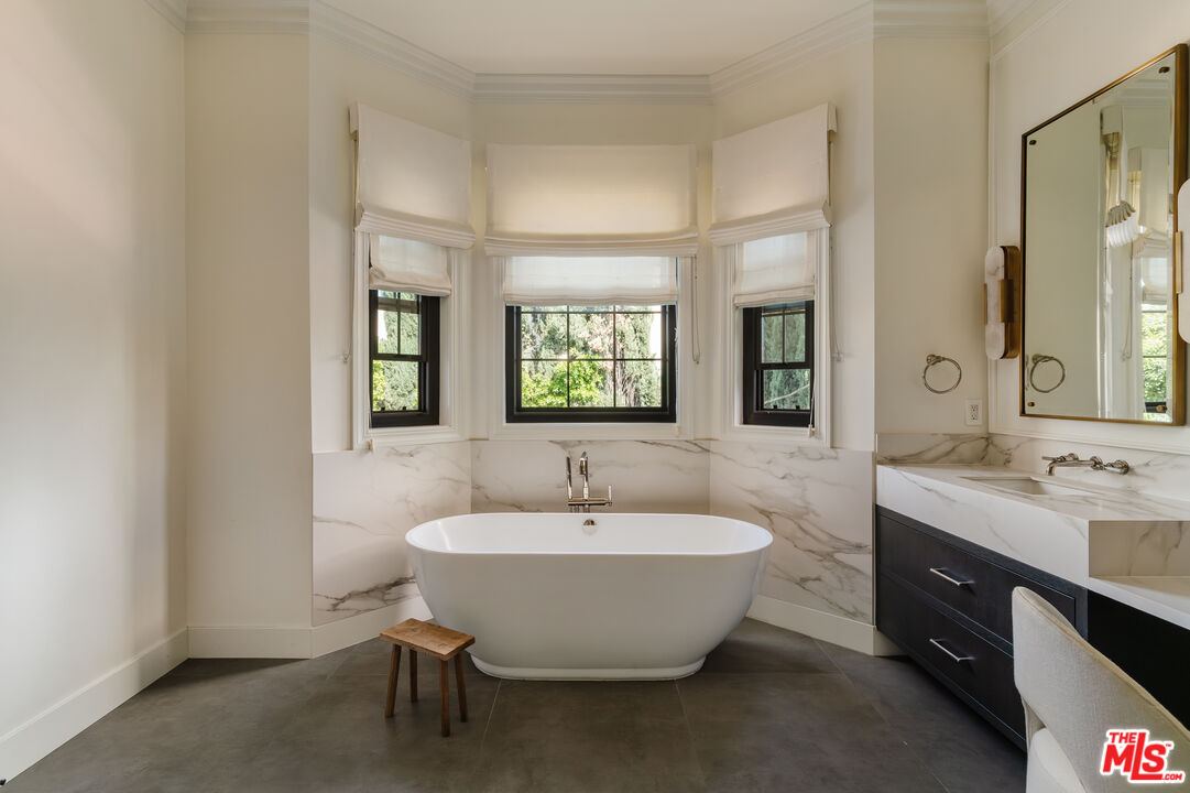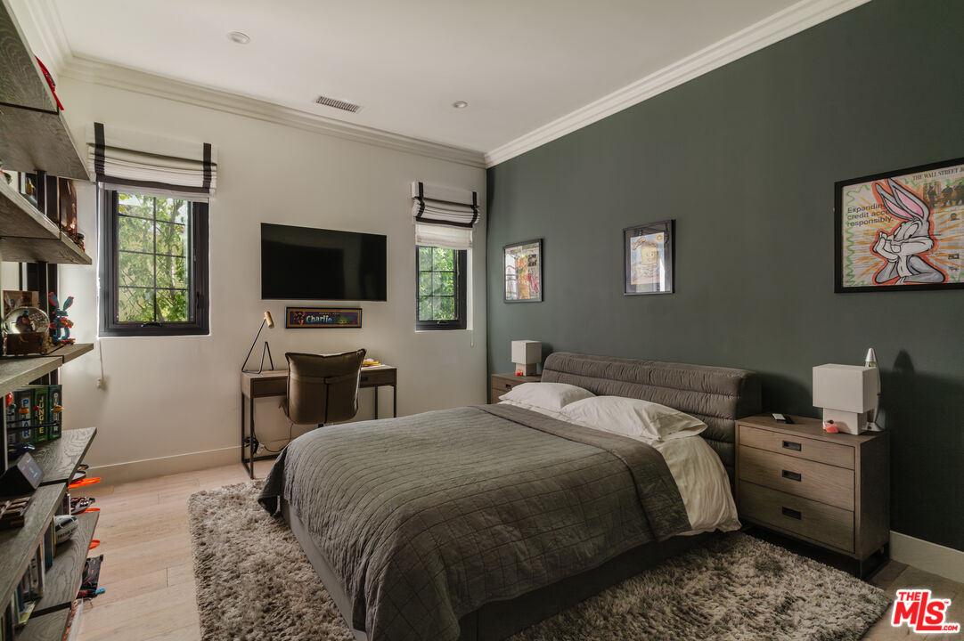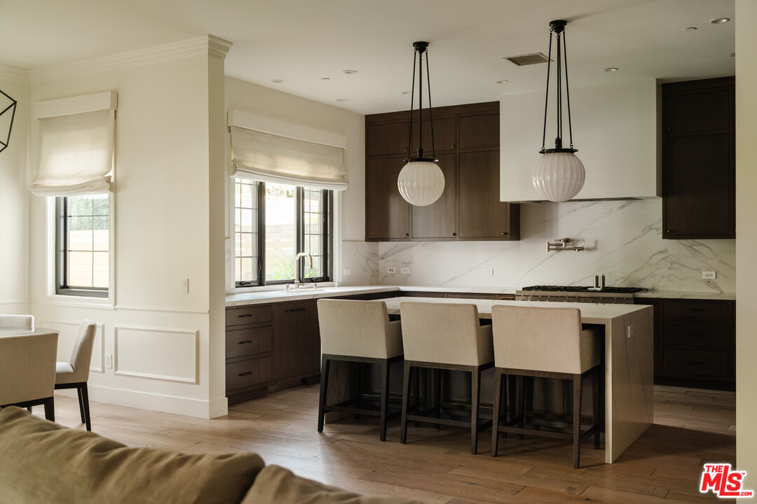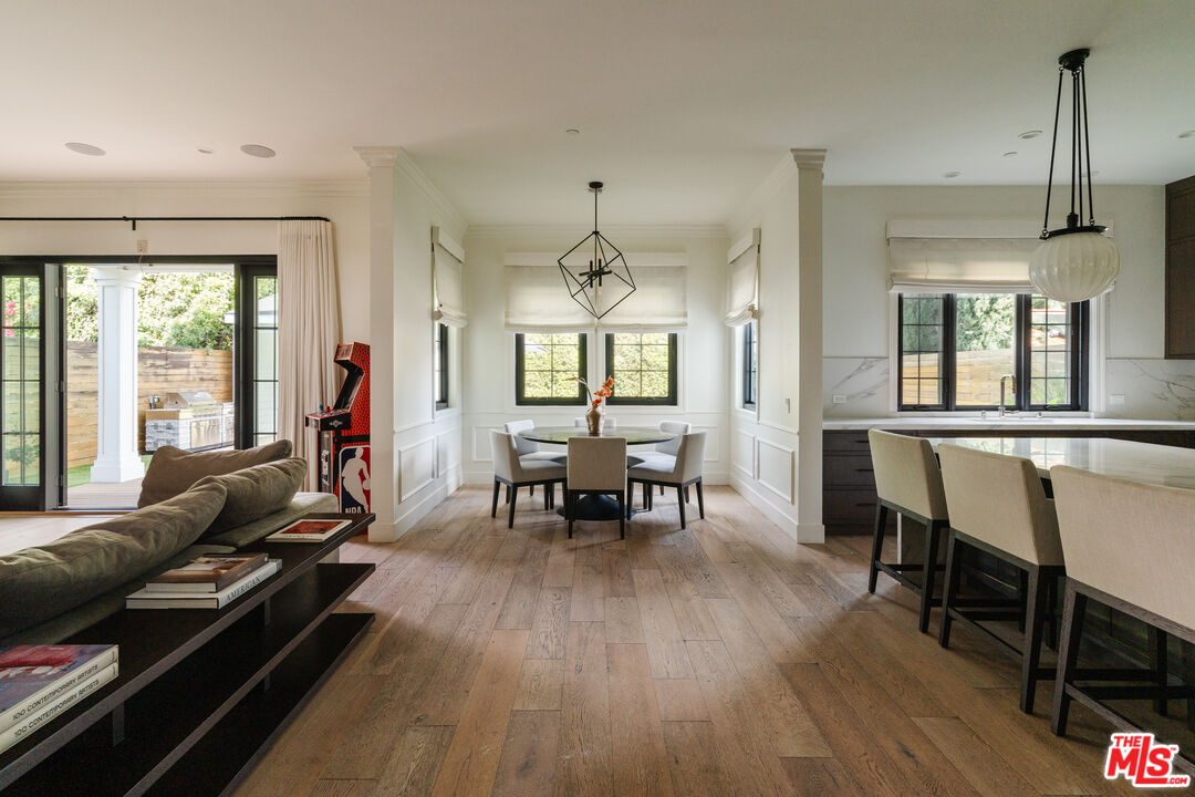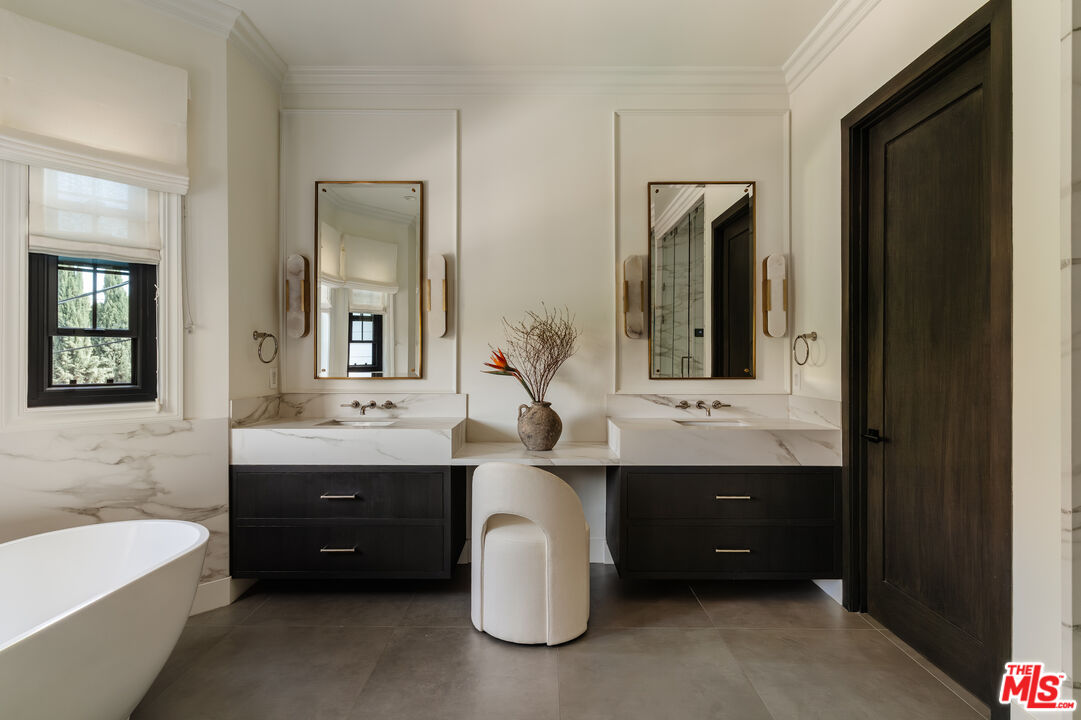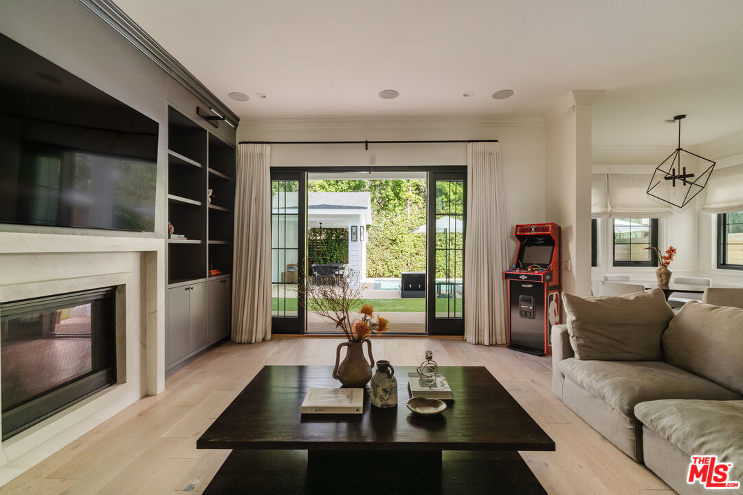 A fully re-imagined Showpiece in prime Sherman Oaks, 4656 Saloma Avenue blends high design with thoughtful functionality, offering a custom-crafted Designer living experience in one of L.A.'s most desirable neighborhoods. Enter to soaring ceilings in the dramatic formal living room, centered by a custom fireplace and flowing seamlessly into the striking formal dining room, highlighted by a Kelly Wearstler chandelier. The expansive main living area features a secondary living room with built-in bookcases, a sunlit breakfast nook, and a chef's kitchen complete with a large island illuminated by pendant lights, a custom walk-in pantry, a butler appliance cabinet, two dishwashers, and top-of-the-line Thermador appliances. The powder room stuns with a viola porcelain slab vanity sink, while upstairs, the primary suite is a sprawling sanctuary with its own lounge area, fireplace, private balcony, and a spa-inspired bath with a steam shower, dual vanities, and a luxurious soaker tub. All additional bedrooms feature recently renovated en suite baths. No detail has been overlooked - from custom drapes and shades, to porcelain fireplaces for durability, to a whimsical custom-built dog room under the stairs, a private movie theater with built-in storage, and a home gym. Outside, a private oasis awaits with a pool featuring a retractable cover, brand-new decking, a built-in BBQ kitchen, 30-foot Ficus privacy trees, lush turf, and a cabana with heaters and a fan - perfect for year-round entertaining. Smart home and security features include Control4 automation, eight cameras, laser perimeter sensors, and gated entry with alarms on both the driveway and pedestrian gate. In a prime Sherman Oaks location, this beautifully appointed home offers the perfect balance of serene living and easy access to vibrant local amenities.Interested in this Listing?
