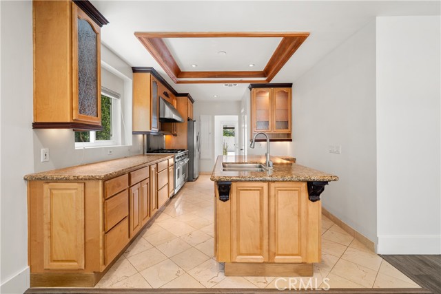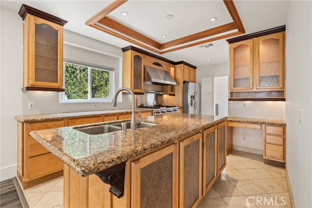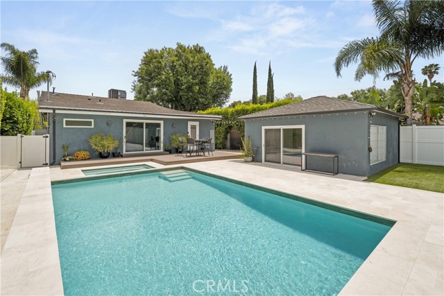 Welcome to this beautifully updated single-story home, situated on a secluded cul-de-sac in prime Sherman Oaks. Step inside to a spacious open-concept floor plan showcasing a stunning kitchen equipped with top-of-the-line appliances, a cozy fireplace in the living room, and inviting dining area ideal for both entertaining and everyday living. Retreat to the luxurious primary suite, a true sanctuary featuring vaulted wood-beam ceilings, a large walk-in closet, and spa-inspired ensuite bathroom complete with a soaking tub, rainfall shower, and double vanity. The secondary bedrooms offer ample space and share a well-appointed full bathroom. Head outside to your private backyard oasis, where a sparkling pool and spa with a tranquil waterfall feature create the perfect setting for relaxation. Additional features include a laundry room, finished two-car garage with a bathroom, security system with cameras, gated driveway with an EV charger and gated front yard with low maintenance artificial turf. This property is located just moments from Westfield Fashion Square, Ventura Boulevard s vibrant shopping and dining scene, and top-rated public and private schools.Interested in this Listing?