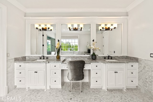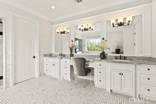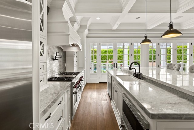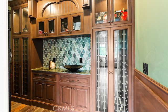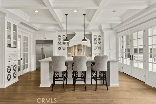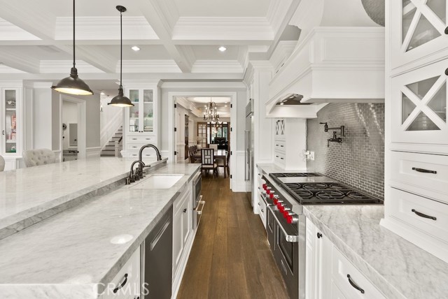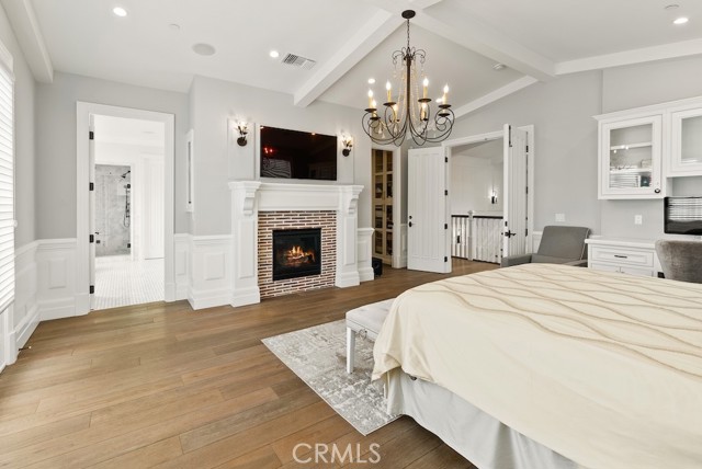 Welcome to this exceptional 2014 custom-built estate by the Arzuman Brothers, located on a tranquil, tree-lined street in Sherman Oaks. Spanning 4,100 sq. ft. of refined living space, this home features 5 ensuite bedrooms, 5.5 bathrooms, and a versatile den, perfect as an office, gym, guest suite, or media room. Enter through a grand foyer with soaring ceilings, round crown moldings, and a striking crystal chandelier. The chef s kitchen boasts a massive center island, top-of-the-line appliances, a double oven with pot filler, and flows into a stylish family room with a fireplace and custom glass-front built-ins. Adjacent to the kitchen is the formal dining room, separated by double doors and adorned with designer lighting and exquisite moldings, turning every meal into an occasion. Just beyond, the spacious formal living room with a charming fireplace offers an inviting space to gather, relax, or entertain guests in style. The den currently serves as a sophisticated office but can easily convert into a cinema room, home gym, or guest suite to suit your needs. Upstairs, the primary suite is a luxurious retreat featuring vaulted ceilings, a statement wall, chandelier, fireplace, built-in vanity/desk, and a fully customized walk-in closet with glass doors. Step out onto your private balcony and take in serene views of the pool below. The spa-inspired primary bathroom rivals any five-star resort, showcasing dual vanities, a makeup station, an indulgent soaking tub, an oversized walk-in steam shower, and a built-in mini refrigerator for added comfort. Three additional ensuite bedrooms are also located on this level, along with a laundry room complete with a sink and storage cabinetry for added convenience. The outdoor space is a true private oasis, enjoy a resort-style backyard with a covered patio, fireplace, ceiling fan, and fully equipped outdoor kitchen. The heated pool, spa, and fire pit provide the perfect setting for year-round entertaining amid lush landscaping and total privacy. Additional features include a solar system, dual EV chargers, and integrated security, lighting, sound, and alarm systems. This is a rare opportunity to own one of Sherman Oaks most stunning homes, blending timeless architectural design with the highest level of modern luxury and convenience. From its designer finishes to its fully equipped indoor-outdoor living, this estate offers the ideal setting for both elevated everyday living and unforgettable entertaining.Interested in this Listing?