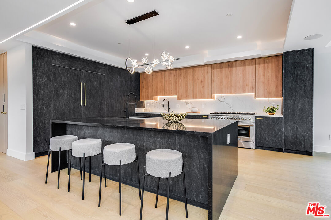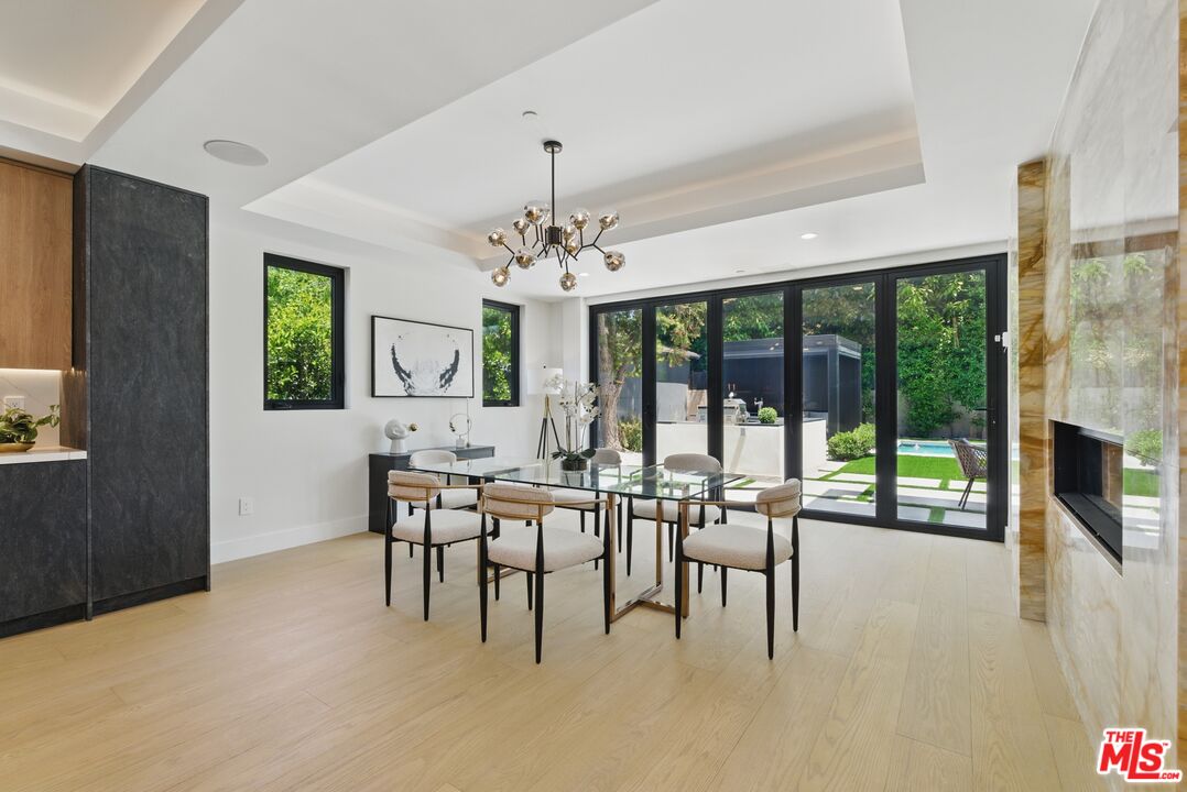 Nestled in a prestigious neighborhood, this newly constructed masterpiece redefines luxury living with its striking modern design and meticulous attention to detail. Ideally located near upscale boutiques, fine dining, Whole Foods, and more, this home blends opulence and convenience. Step inside to an expansive, light-filled interior featuring stunning hardwood floors, soaring windows, and exquisite high-end finishes. The open-concept layout is anchored by a double-sided marble fireplace, seamlessly connecting the elegant family room and sophisticated dining area, creating warmth and grandeur. The chef's kitchen is a culinary haven, boasting an 8-burner Forno stove, Zline microwave drawer, double-sided refrigerator, and hidden pantry with its own sink and dishwasher. At the center is a spacious island with a built-in sink, perfect for casual meals and gourmet prep. Adjacent is a chic bar area with a wine fridge, setting the stage for effortless entertaining. The main level also includes a stylish powder room and en-suite guest bedroom for privacy and convenience. Modern conveniences include security cameras at the front and back, plus ceiling speakers on the first floor and backyard for music or enhancing your smart home experience. Outdoors is an entertainer's paradise with a pool, spa, cabana with retractable roof, fire pit, and an outdoor kitchen featuring a grill, refrigerator, wine fridge, sink, beer tap, and pizza oven. Even more entertainment awaits on the rooftop deck, with a second BBQ, grill, wine fridge, fire pit, and ambient lighting, offering stunning views. The upper level impresses with a well-designed landing, a fully equipped laundry room, and four en-suite bedrooms, three featuring floor-to-ceiling tinted windows. The crown jewel is the opulent primary suite, a private retreat with a personal kitchenette, massive walk-in closet, and spa-like bath with dual sinks, makeup vanity, soaking tub, and dual-head shower. A marble fireplace adds warmth, while sliding doors open to a private terrace overlooking the pool and spa, with a spiral staircase to the backyard. Additional features include a floating staircase, two-car garage with epoxy floor, and private driveway gate. Combining elegance with practicality, this extraordinary home offers an elevated lifestyle in a prime location.Interested in this Listing?