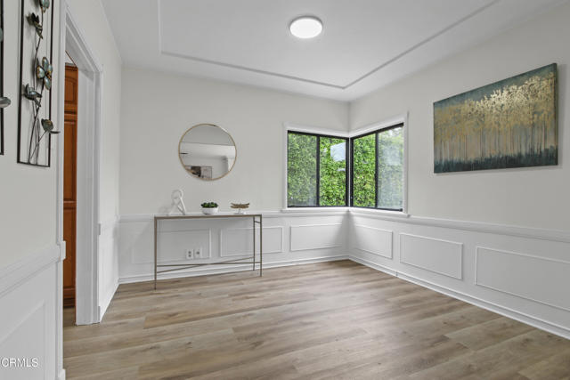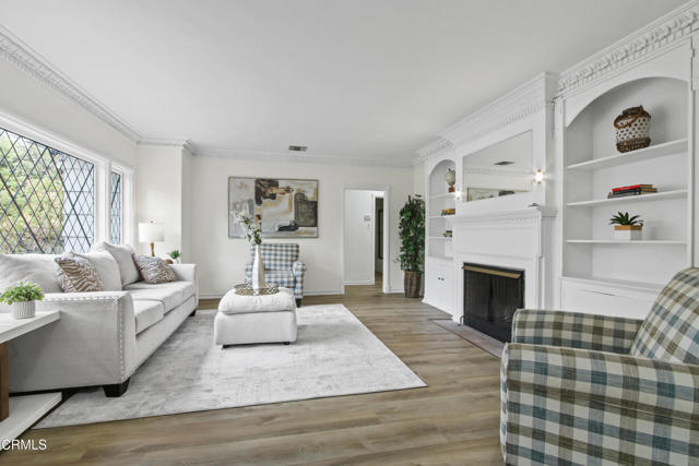 Nestled in a serene Sherman Oaks neighborhood, this charming 3-bedroom, 2-bathroom home blends classic character with modern comfort. The manicured front yard, adorned with sculpted topiary and low-maintenance landscaping, creates a striking first impression. Inside, the spacious living room showcases elegant crown molding, a stately fireplace with built-in shelving, and rich wood flooring that flows throughout. The updated galley kitchen offers abundant cabinetry, tiled countertops, and stainless-steel appliances, seamlessly connecting to a generous open-concept dining and family area--perfect for entertaining. The expansive primary bedroom is a true retreat, featuring large mirrored closets, serene garden views, and direct access to the tranquil backyard. Outdoors, a lush, private setting invites relaxation with mature trees, a stone pathway, and a peaceful ambiance. A standout feature of this property is the detached garage with an upper-level studio apartment, offering excellent potential for guest accommodations, a home office, or rental income. With gated parking, timeless architectural details, and a desirable location near parks, shopping, and dining, this well-cared-for residence offers the perfect opportunity to enjoy the best of Sherman Oaks living.Interested in this Listing?