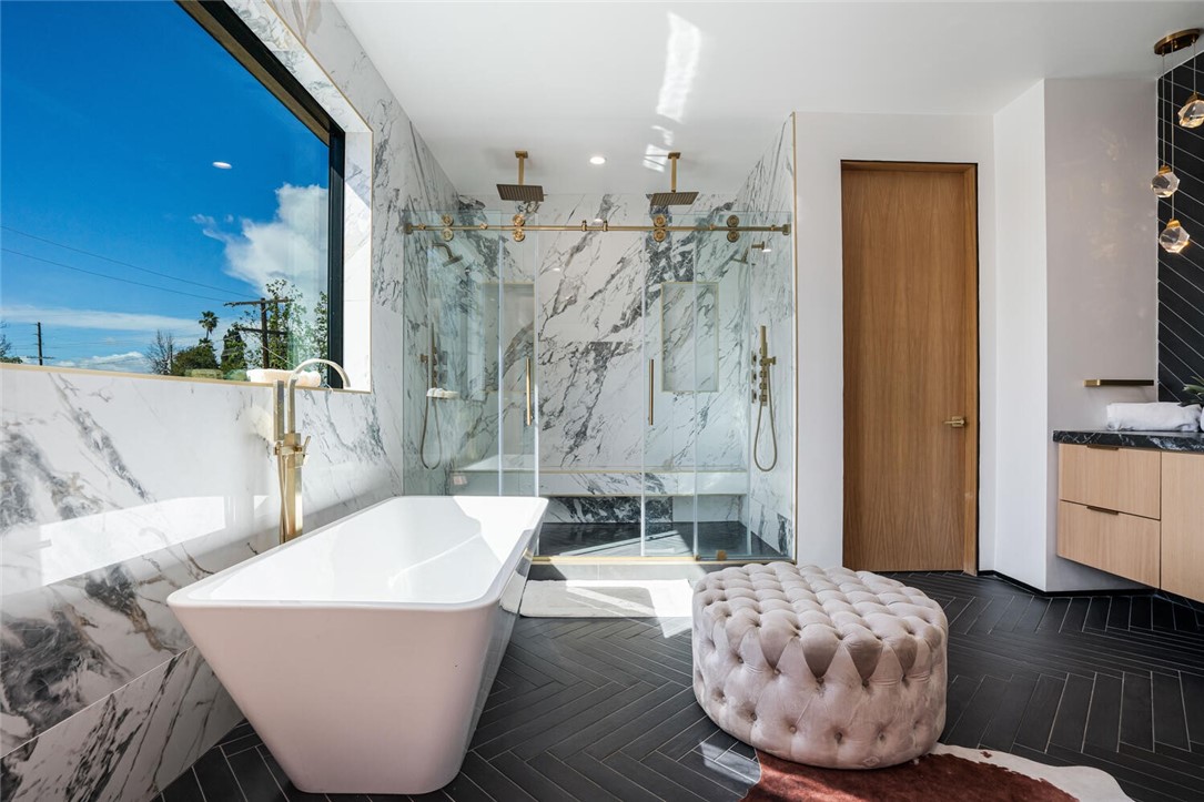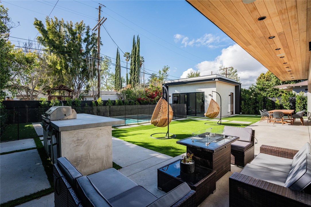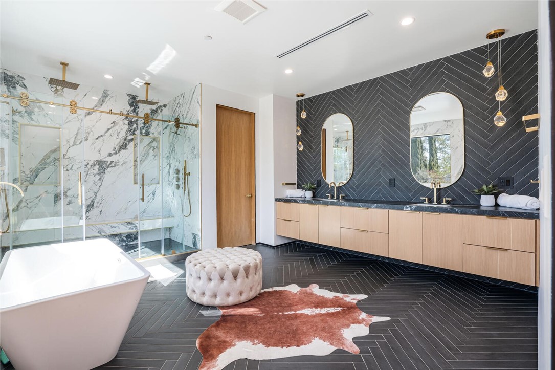 STUNNING NEWER CONSTRUCTION ESTATE IN THE HEART OF PRIME SHERMAN OAKS NEIGHBORHOOD. THIS MODERN MASTERPIECE IS GATED AND HAS A "WOW" FACTOR CURB APPEAL THAT OFFERS 5 BEDROOMS, 6 1/2 BATHS WITH ALMOST 4400 SQ FT OF LIVING SPACE. BEAUTIFUL UNIQUE OPEN FLOORPLAN WITH SOARING CEILINGS LEADS TO LIVING ROOM/FAMILY ROOM AND DINING AREAS. THE CUSTOM CHEF'S KITCHEN HAS TOP OF THE LINE APPLIANCES, CLEAN LINE CABINETRY, STONE COUNTERS, LARGE ISLAND AND BUTLERS PANTRY. THE LIVING ROOM WITH FIREPLACE, BUILT IN BOOKCASES, AND WINE CELLAR THAT FLOWS EFFORTLESSLY THRU LARGE GLASS POCKET DOORS TO ENTERTAINERS YARD WITH POOL, SPA AND SEPARATE ADU. PRIMARY SUITE HAS FIREPLACE, ENORMOUS WALK IN CLOSET AND PRIVATE BALCONY. PRIMARY SPA-LIKE BATH OFFERS VANITY WITH DUAL SINKS, OVERSIZED STEP IN SHOWER, AND SOAKING TUB. ADDITIONAL BEDROOMS ARE EN-SUITE WITH WALK IN CLOSETS AND BALCONY. ALL HIGH HIGH QUALITY FINISHES AND A PERFECT BLEND OF MODERN LUXURY AND CONVENIENCE. PAID SOLAR PANELS INCLUDEDInterested in this Listing?