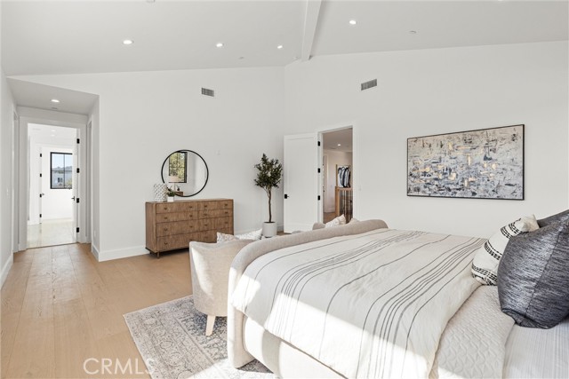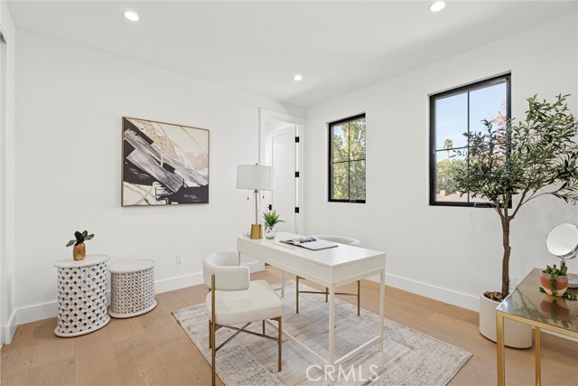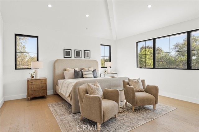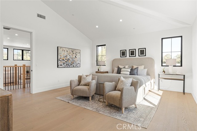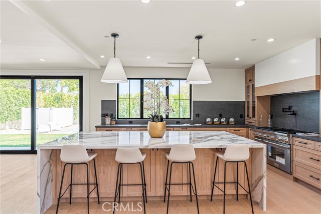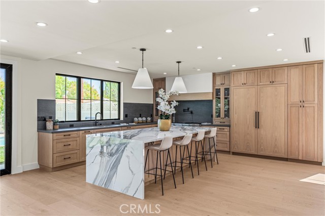 Priced to sell! Nestled within a beautiful pocket of Sherman Oaks sits a tastefully designed newly constructed modern farmhouse. Boasting 4 bedrooms, 4.5 bathrooms, and 3873 square feet of living space on a 8,644 square foot lot. Step inside and be captivated by the light and bright atmosphere that defines this home. The thoughtfully designed open-concept floorplan features a gourmet kitchen perfect for culinary enthusiasts, complete with top-of-the-line custom matching white oak panel appliances, porcelain counters, custom white oak cabinetry, glass tower counter cabinets and a wine bar nook with standing wine fridge. Your kitchen overlooks the expansive living and dining area with a gorgeous expansive fireplace with wall to wall custom shelving, and open sliding glass doors overlooking the lush backyard, bbq area, pool & spa. Engineered wide plank floors run throughout home, The primary suite is a sanctuary of relaxation, offering high ceilings, a spa-like ensuite bathroom, Taj Mahal porcelain counters, custom oak dual vanity and two large walk in closets. The additional three bedrooms are generously sized and exude comfort and style, while all boasting high ceilings and being en suite. The property also features an upstairs den area, perfect for an office, relaxing or your morning coffee. The idyllic backyard, reminiscent of a resort, is perfect for embracing the California lifestyle. Relax by the pool and spa, enjoy meals prepared on the built-in barbecue, and host outdoor gatherings on the patio for al-fresco dining and entertaining.Interested in this Listing?