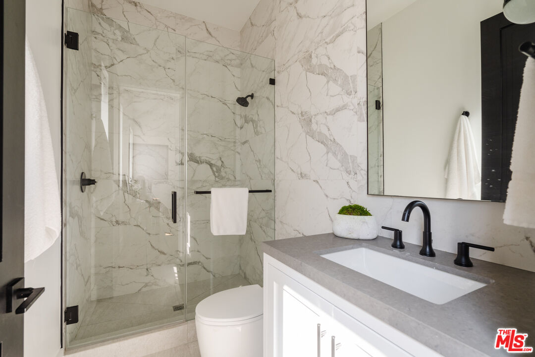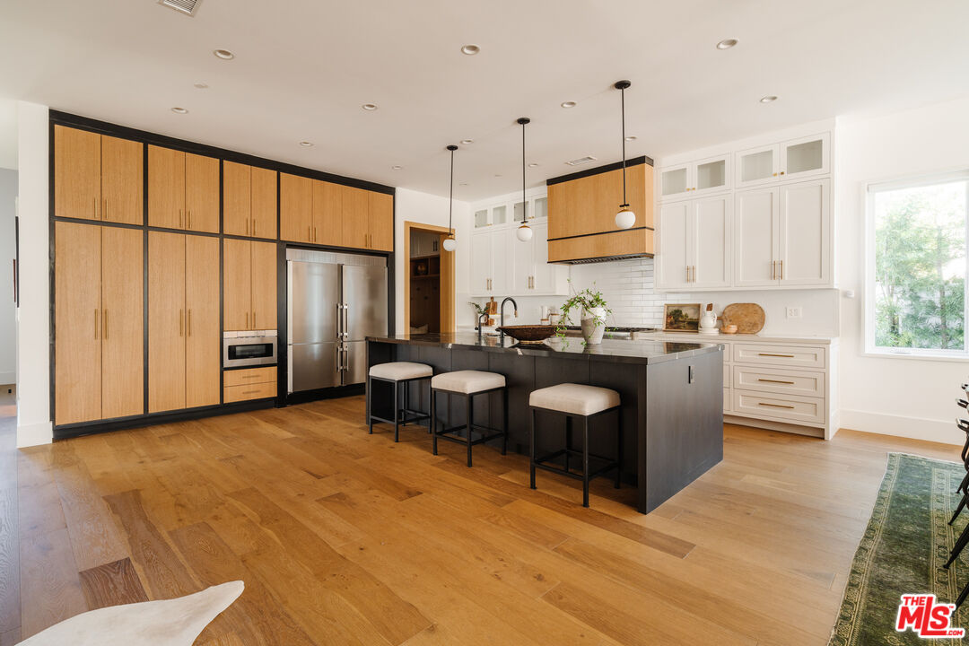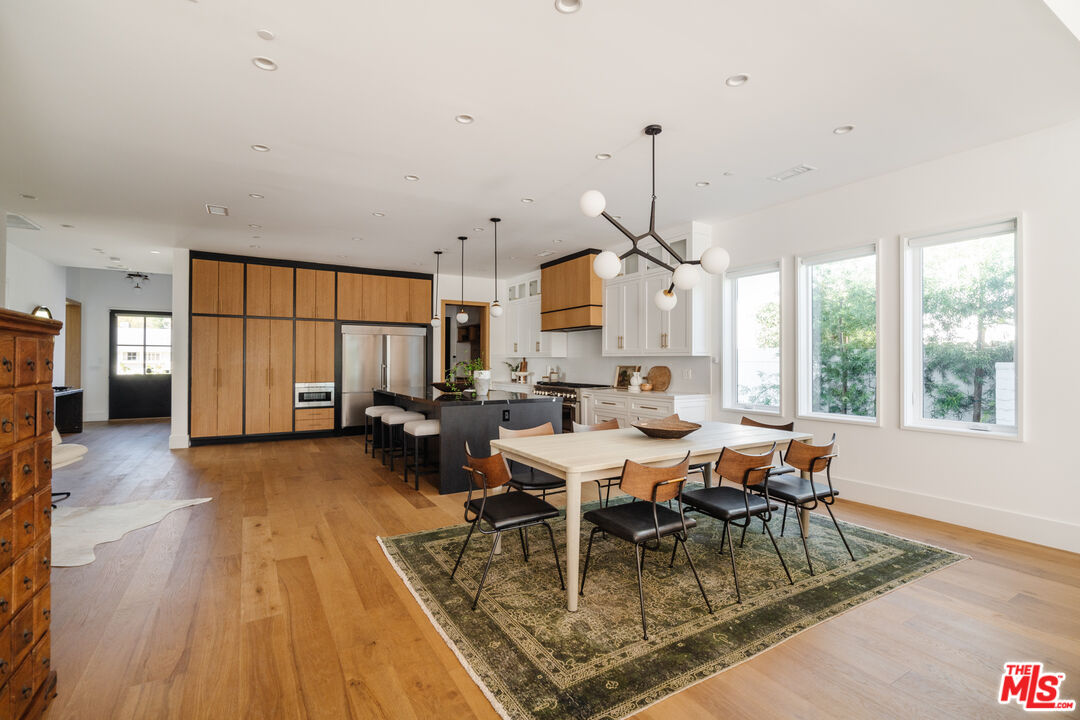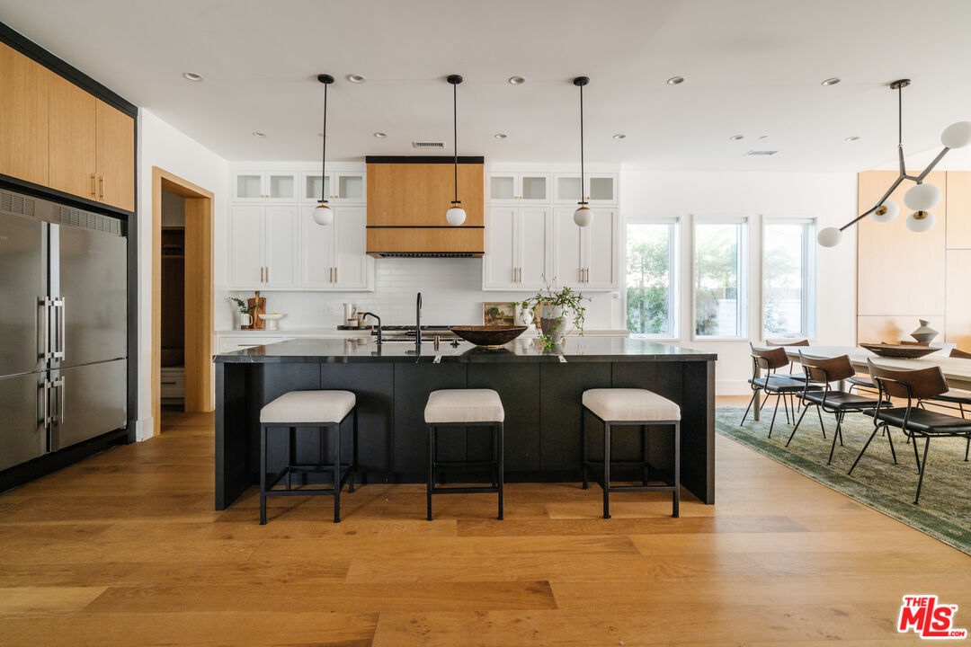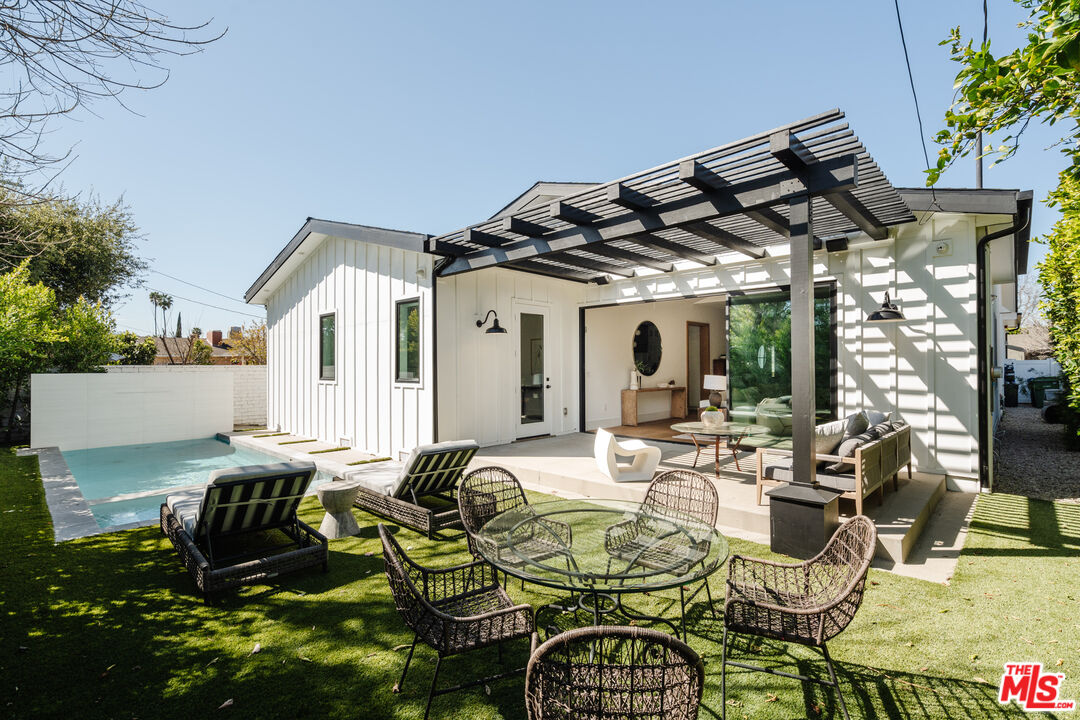 Set on a wide street in prime Sherman Oaks sits this beautiful and warm one level modern farmhouse. Offering the perfect confluence of sophistication and comfort, the open floor plan showcases seamless flow from each area to the next. The chef's kitchen is outfitted with a large stone topped island, custom floor-to-ceiling cabinets and top of the line appliances. Beyond the kitchen, a spacious dining area extends into the living room. Through large glass sliding doors, the entire great room looks out to the backyard lined by luscious and vibrant hedges. The primary features a door that opens directly to the backyard, a walk-in closet, and a stone filled bathroom with a shower, soaking tub, and double vanity. Additionally, the home has 3 more bedrooms all with ensuite bathrooms, an office and a powder bathroom. California living at its finest with a pool, hot tub, spacious patio perfect for dining, and a turf area ideal for lounging. Close to countless of the best shops and restaurants in the Valley, this home is a true standout. Plenty of parking with an attached 2-car garage and space for 2 cars in the driveway.Interested in this Listing?