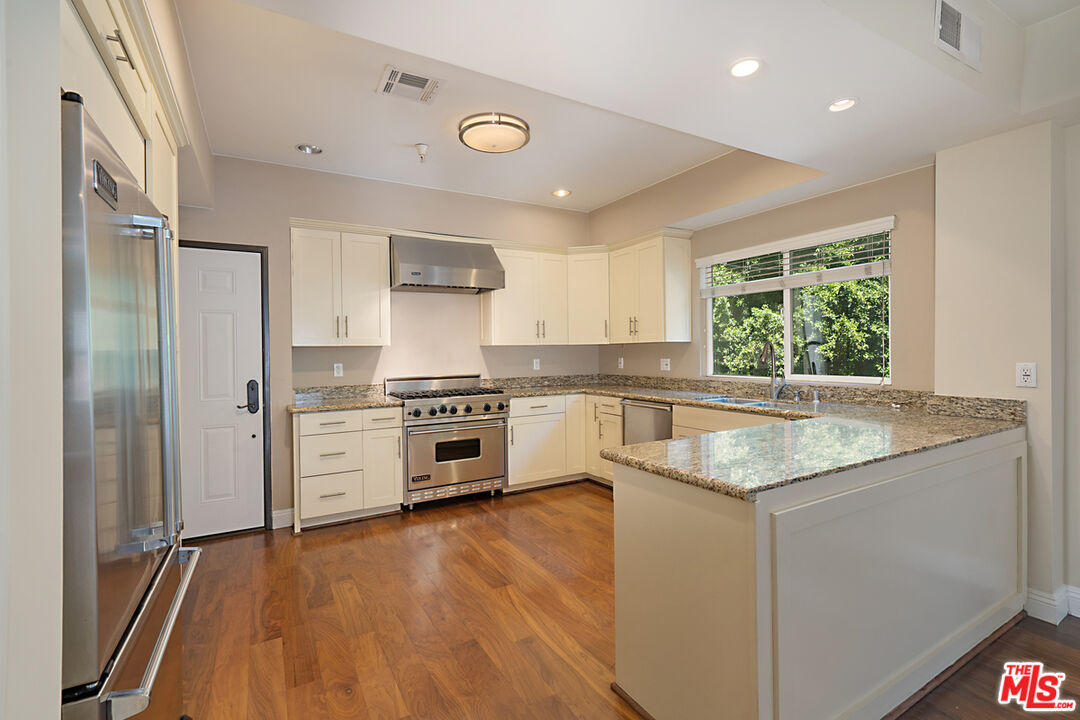 Gorgeous Townhouse style 3 bedroom and 3 1/2 baths in Sherman Oaks. Hardwood floors throughout. Main floor includes nice size living room, dining areas, fireplace, and balcony. Beautiful large kitchen with stainless steel Viking appliances, granite counter tops, and nice breakfast bar. Nice size powder room. On the 2nd floor there are 2 bedrooms suites, each one with their own bathroom and walk-in closet. The laundry closet is also located on this floor. The primary bedroom is located on the 3rd floor with a huge walk-in closet and double-sink full bath. There is a large open patio at the front of the primary bedroom for outdoor sitting. This is an end unit and very private. It is available now.Interested in this Listing?