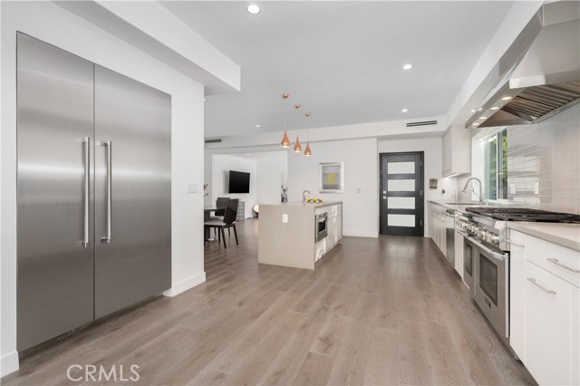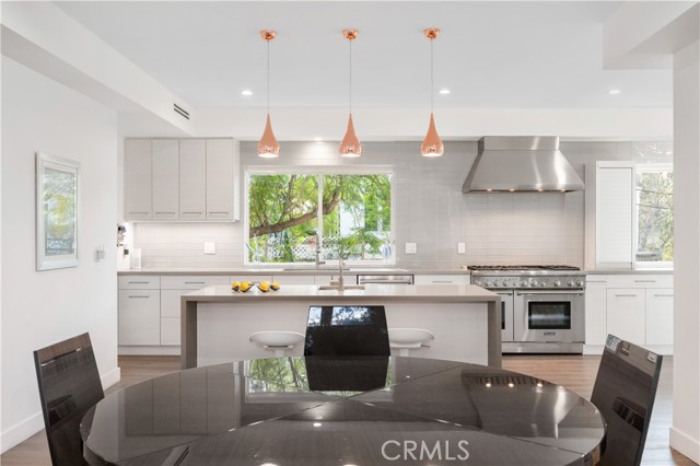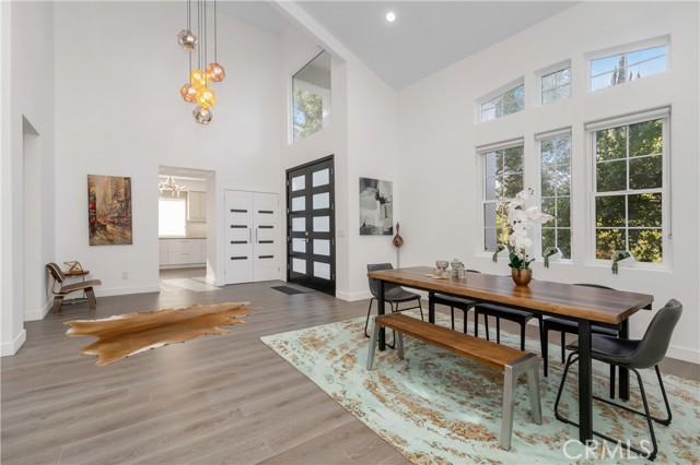 Step into this reimagined modern Spanish masterpiece, a nearly 4,300-square-foot home perfectly positioned on a coveted corner lot in the heart of Sherman Oaks. With striking curb appeal, this residence welcomes you into a sun-drenched interior featuring soaring 30-foot vaulted ceilings, custom windows, high-end finishes, and elegant light fixtures. The thoughtfully designed open floor plan creates a seamless flow throughout the home, making it ideal for both entertaining and everyday living.The chef s kitchen exudes both warmth and sophistication, boasting custom grey cabinetry, quartz countertops, a beautiful tile backsplash, and top-of-the-line Viking and Thermador appliances. A tranquil balcony off the kitchen provides the perfect setting to enjoy morning coffee among mature trees. The spacious living and dining areas, anchored by a cozy fireplace, extend effortlessly to both front and back outdoor spaces, offering endless opportunities for relaxation and entertaining. Upstairs, the luxurious primary suite is a private retreat, featuring an oversized tiled shower, double vanity, and an abundance of natural light. Two additional guest bedrooms share a stylish hallway bathroom, while a versatile den overlooks the main living area, perfect for a home office or lounge space. A private en-suite guest bedroom is conveniently located on the lower level, providing flexibility for visitors or extended stays. Outside, enjoy multiple serene spaces to unwind, along with a detached two-car garage equipped with EV charging capabilities. Located just minutes from the 405 and 101 freeways and the vibrant shops and restaurants of Ventura Boulevard, this home offers unmatched convenience. Indulge in nearby dining hotspots such as Tashio, Casita, Blvd Steak, Anajak Thai, Petit Trois and Panzanella Italian, all just moments from your doorstep. Experience the perfect blend of modern luxury and Sherman Oaks charm this exceptional home is waiting for you.Interested in this Listing?