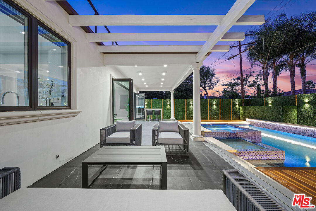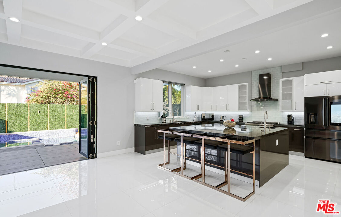 Fully furnished and turn-key. This property is available for short and long-term rental! Situated in prime Sherman Oaks, this brand new construction showcases contemporary architecture enriched with stately columns and exquisite design detail. Arrive to the grand entry hall with soaring 22 ceiling and dramatic curved window wall, filling interiors with natural light. Enter the open-plan living and entertaining spaces with white Italian tile floors, glass stairway railings and coffered living room ceiling. The chefs kitchen showcases custom cabinetry, glass backsplash, quartz countertops and stainless steel appliances. Glass doors connect interiors to the shaded lounging and dining patio, and heated pool/spa. Five bedrooms include the elegant master with custom walk-in dressing room, spa-style bath, soaking tub and glass shower. Features built-in speakers, security system, 2-car garage and spacious motor court. From a quiet neighborhood setting, this masterfully designed home is moments from Ventura Blvds shops, restaurants, Sherman Oaks Galleria, Whole Foods, Fashion square mall, Castle Park, and the award winning Kester school district. Also available with Furniture!Interested in this Listing?