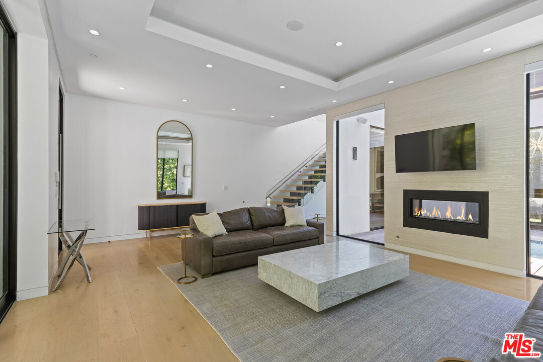 FULLY FURNISHED WITH RESTORATION HARDWARE FURNITURE. Office/gym has brand new Wood 6 foot desk, rowing machine, peloton treadmill, peloton cycle, workout bench, and brand new weights. Welcome to Greenleaf Street - one of the most prestigious and sought-after dresses south of Ventura Boulevard! Step into elevated modern living with this custom-built 5-bedroom, 5.5-bath estate, masterfully constructed in 2018. From the moment you arrive, a grand 150-foot private driveway ( 10+ car capacity) sets the tone for the exclusivity and tranquility that awaits. Surrounded by lush, mature Bamboo and Ficus trees, the property offers complete privacy and a serene, resort-like ambiance. Inside, soaring ceilings and expansive windows flood the interiors with natural light, creating an airy and open atmosphere throughout. The chef's kitchen is a showstopper, featuring top-of-the-line Bosch and Viking appliances, a stunning Calacatta marble center island, and bespoke custom cabinetry as well as a spacious walk-in pantry. Entertain effortlessly in the spacious living room, which opens onto two beautiful terraces, perfect for indoor/outdoor living. Step into your own private oasis in the backyard, complete with a dramatic 50 x 25 ft negative-edge pool, luxurious spa, and built-in BBQ area designed for the ultimate outdoor gatherings. Upstairs, you'll find four generously sized bedrooms, each with its own generously sized walk-in closet and en suite bathroom, as well as a convenient upstairs laundry room, while the fifth bedroom is thoughtfully located on the main level, ideal for guests or a home office. Just steps from Whole Foods and minutes to premier private schools like Buckley and Campbell Hall, this extraordinary property is perfectly positioned for luxury, convenience, and lifestyle. Also for sale at $3,579,000.Interested in this Listing?