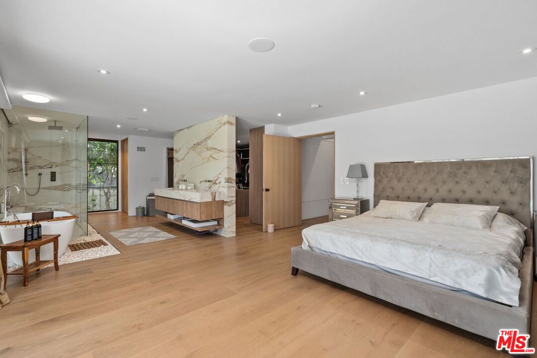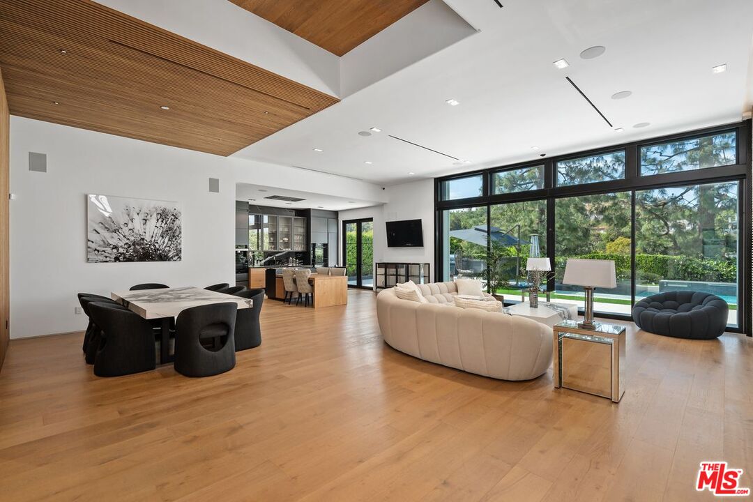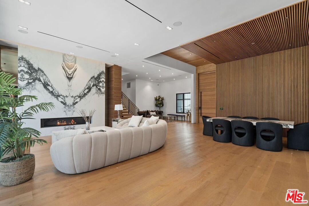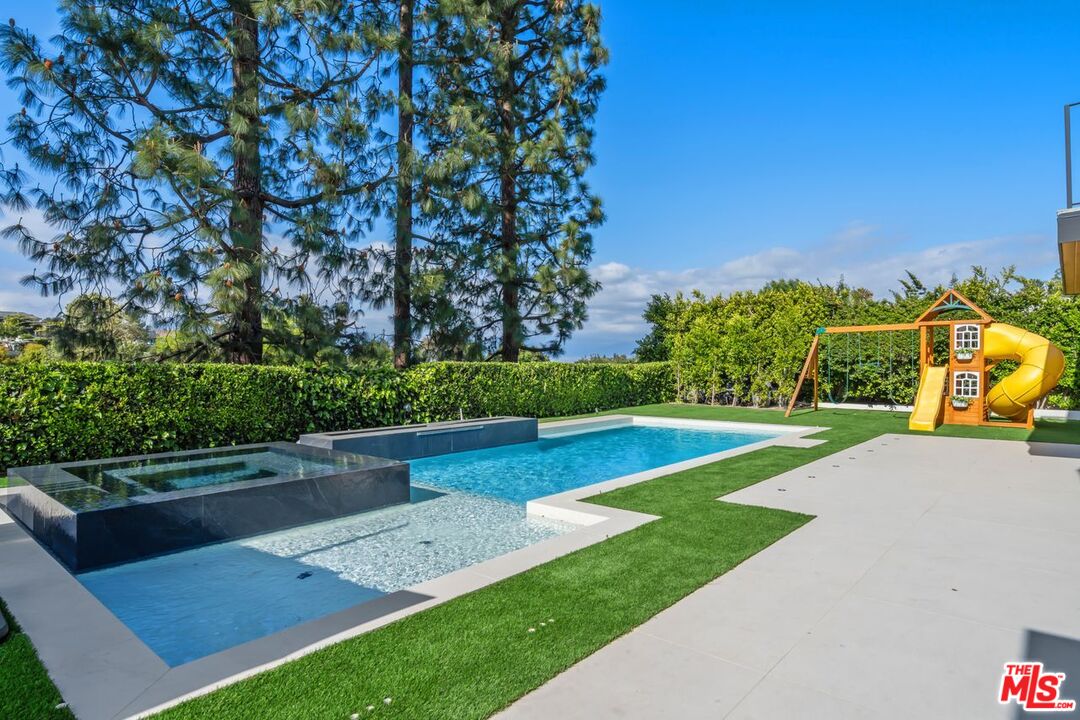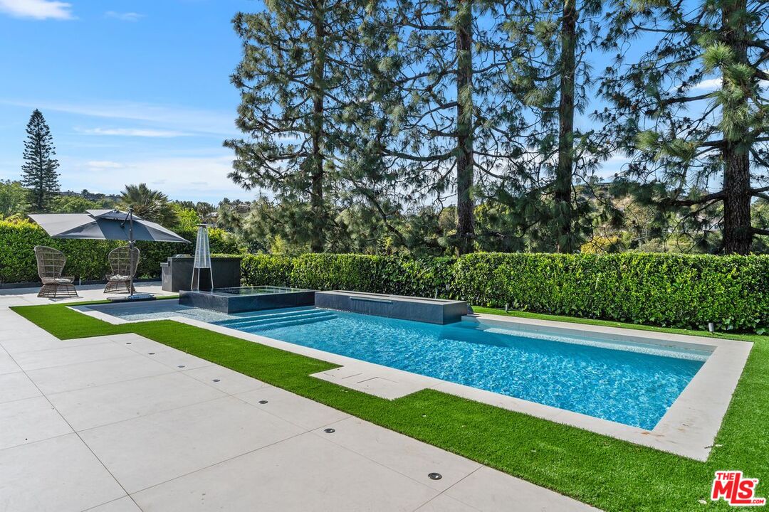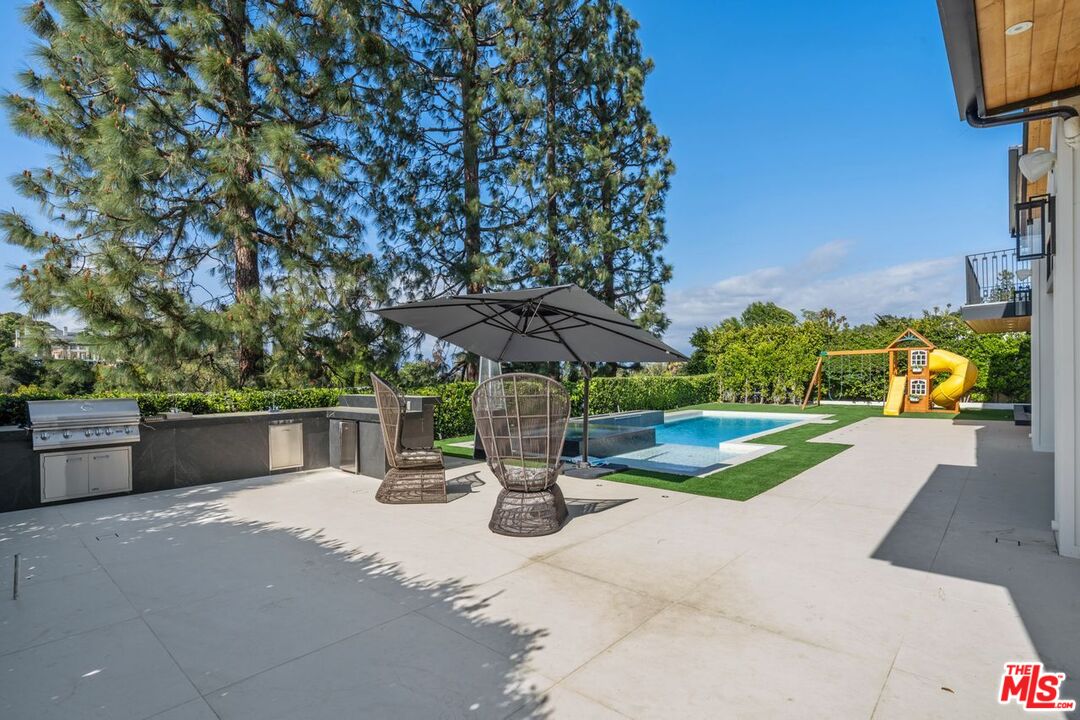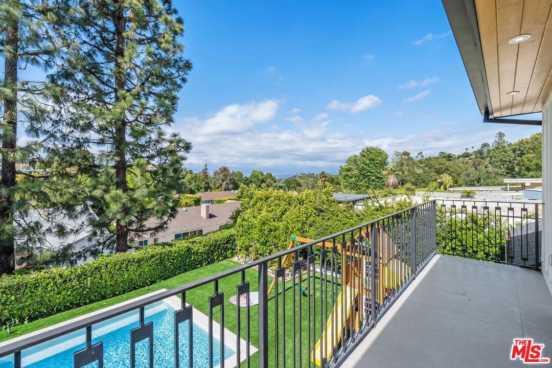 Located in the prestigious Royal Woods neighborhood south of the Boulevard, this elegant two-level farmhouse in the Sherman Oaks hills was **totally rebuilt in 2023** and offers exceptional modern living and entertaining design. Spanning 11,545 sq ft of land, the 4,100 sq ft residence features 5bedrooms, 5.5 baths, and is fully furnished. A circular driveway welcomes you to the home, and a 2-car garage with direct access includes ample cabinetry for storage. Discover multiple indoor and outdoor living areas, highlighted by designer recessed lighting, custom woodwork, stone finishes, and a striking wood-and-iron staircase. The main level includes a stunning primary suite with backyard access, three additional en-suite bedrooms, a formal dining area, an open-concept kitchen, and a living room with wood flooring, built-ins, and large sliding doors seamlessly connecting to the backyard. The chef's kitchen is equipped with top-of-the-line Miele appliances, stone and wood islands, dual sinks and dishwashers, vertical windows, ambient LED lighting, and abundant cabinetry. The spa-inspired primary bath offers dual vanities, a soaking tub, and direct access to the serene outdoor space. Upstairs, enjoy a cozy TV lounge with a fireplace, office space, and balconies with panoramic mountain views. The backyard is an entertainer's dream featuring a heated pool, spa, shower, and built-in BBQ. Additional highlights include tankless water heaters and smart home technology. No detail was overlooked in this thoughtfully designed home.Interested in this Listing?