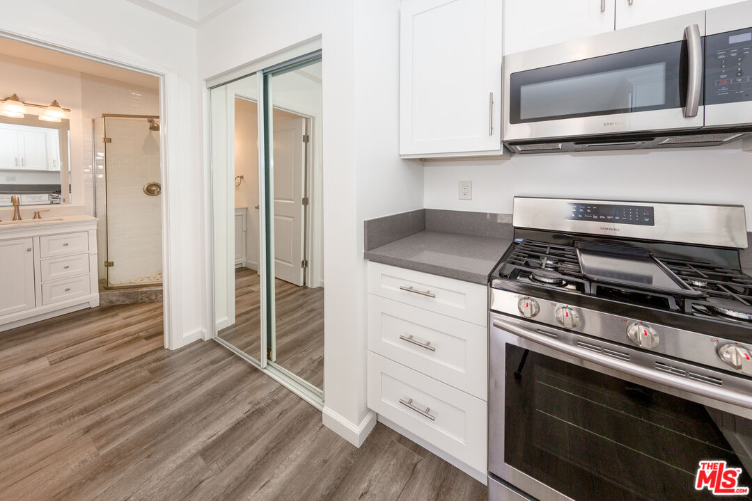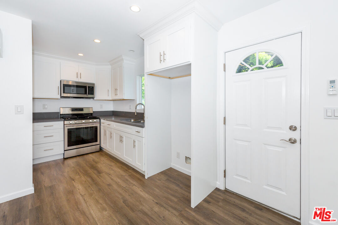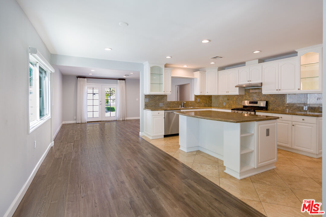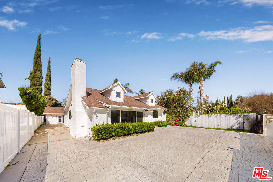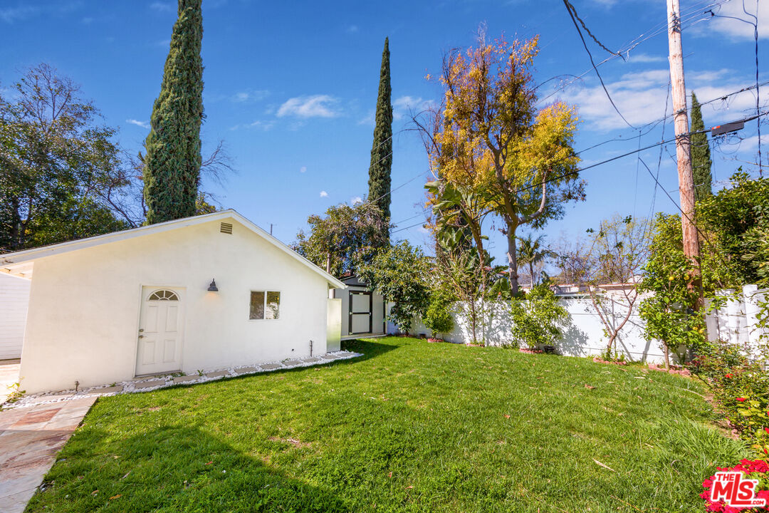 This stunning contemporary-style residence, fully renovated to perfection, alongside a newly constructed Accessory Dwelling Unit (ADU), is nestled in the highly sought-after Sherman Oaks area, just steps away from Ventura Blvd. Enclosed within secure gates with controlled access and designed with elegant stone pavers, the property boasts impressive curb appeal, featuring a lengthy driveway and ample on-site parking. Step inside to discover an exceptional open floor plan flooded with natural light. The welcoming entry leads to a spacious living room, complete with a cozy fireplace, seamlessly flowing into the formal dining area and expansive gourmet kitchen. The kitchen is equipped with a central island, abundant of modern cabinetry, granite countertops, and top-of-the-line appliances including a refrigerator, gas stove, and dishwasher. The adjacent family room offers easy access to the backyard, perfect for indoor-outdoor living. The residence includes two generously sized secondary bedrooms sharing a beautifully tiled full bathroom with a stylish shower stall. Additionally, there is a luxurious master suite featuring a sizable bedroom with a walk-in closet, and a master bathroom boasting a large spa, separate stall shower, and double sinks. The master suite conveniently opens to the backyard. A separate, never-before-lived-in ADU provides added versatility, complete with its own bathroom featuring a stall shower, kitchen, and central heating and cooling system, ideal for accommodating in-laws or guests. Outside, the lovely yard showcases a spacious grassy area dotted with fruit trees, complemented by a separate storage room. Additional highlights of this exceptional property include high-end finishes, new wood and laminate flooring, fresh paint throughout, indoor laundry facilities, recessed lighting, and complete security within the gated confines, surrounded by single-family homes on three sides. Perfect for entertaining, this home is ideally located just steps from Ventura Blvd, offering easy access to fine dining, shopping, and entertainment options. Conveniently situated near the 101 and 405 freeways, Sherman Oaks Galleria, and Westfield Fashion Square, this residence epitomizes luxurious California living at its finest.