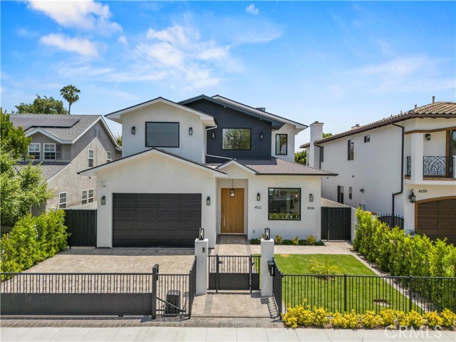 Welcome to 4532 Katherine Avenue a brand-new, ground-up construction in the heart of the coveted Library Square neighborhood of Sherman Oaks. This gated modern residence offers 3,633 sq ft of expertly crafted living space with 5 bedrooms and 5.5 bathrooms in the main home, plus a fully finished 513 sq ft ADU complete with its own bedroom and full bath ideal for guests or extended family. Designed with spaciousness and flow in mind, the home features soaring 11-foot ceilings on the first floor and 9.5-foot ceilings upstairs, creating a bright and open atmosphere. The living room is anchored by a sleek fireplace and floor-to-ceiling sliding doors that open to the backyard, delivering the ultimate indoor/outdoor California living experience. The gourmet kitchen is a true centerpiece, featuring high-end Bertazzoni appliances, custom cabinetry, designer finishes, and a built-in beverage cooler. Upstairs, the primary suite offers a tranquil retreat with a fireplace, built-in sink and beverage cooler, a spa-like en-suite bath, and a walk-in closet with custom shelving. This smart home is equipped with fully integrated technology to control lighting, fireplaces, HVAC, pool speakers, and a Sonos sound system, and it comes complete with a security camera system for peace of mind. Additional highlights include Hansgrohe faucets throughout, an attached garage, three separate HVAC systems (for each floor and the ADU), and a dedicated laundry room with Samsung washer and dryer included. Set on a quiet, tree-lined street in Library Square, this gated, camera-secured property blends modern luxury, high-tech convenience, and timeless comfort in one of Sherman Oaks most desirable neighborhoods.Interested in this Listing?