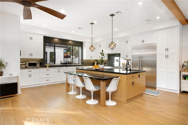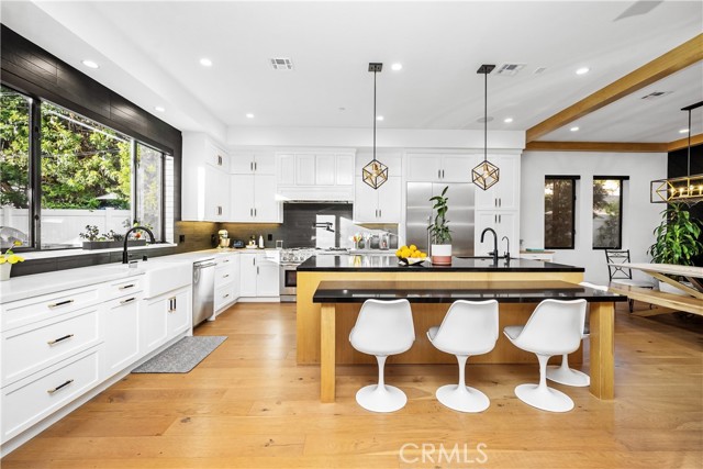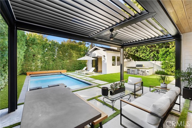 Conveniently located just minutes from Whole Foods, Sherman Oaks Park, Fashion Square Mall, Ventura Boulevard and the 101/405 freeways, in the sought-after Library Square neighborhood of Sherman Oaks, discover a beautifully crafted home with a 1 bed/1 bath guest house. The spacious open floor plan creates an ideal setting for both entertainment and relaxation. A culinary haven, the gourmet chef's kitchen is equipped with top-tier Thermador appliances, a walk-in pantry, large center island with seating, custom-built cabinets and quartz countertops. The living room features a gorgeous fireplace surrounded by built-ins and an oversized sliding glass door that opens for indoor/outdoor living. Rounding out the main level is a formal dining room with a wine closet, ensuite bedroom and laundry room. Upstairs you will find four generously sized bedrooms and three well-appointed bathrooms. Retreat to the primary suite, complete with a private balcony, custom walk-in closet and lavishly designed bathroom that includes a soaking tub, rainfall shower system and double vanities. Outside, lush greenery creates a tranquil and private suburban oasis. Take a dip in the sparkling pool with and spa with motorized cover or grill up some food on the built-in BBQ. Stay cool under the louver covered patio with automatic dropdown shades - which you can project movies onto, at night. Additional amenities include Tesla solar panels and whole-house Powerwall backup, EV charger and additional smart home features.Interested in this Listing?