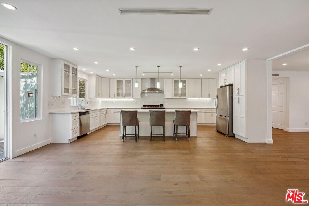 Fully reimagined and remodeled down to the studs in 2016, this stunning traditional Colonial home blends timeless elegance with modern luxury in one of the most desirable pockets of Sherman Oaks. Nestled on a tree-lined street just moments from top-rated Kester Charter School, this 4-bedroom, 3.5-bath residence offers thoughtful design, refined craftsmanship, and a layout ideal for both comfortable living and grand entertaining.From the moment you arrive, the home's crisp white exterior and classic architectural details create an inviting presence, enhanced by a large gated front yard that provides both charm and privacy. Step inside to discover a warm, open interior featuring rich hardwood floors, custom finishes, and a welcoming ambiance that flows seamlessly from room to room.At the heart of the home lies an extraordinary chef's kitchen an entertainer's dream and a true culinary masterpiece. This magazine-worthy space was designed with both beauty and functionality in mind. It features extensive custom cabinetry offering ample storage, a large center island perfect for gathering, sleek stone countertops, and top-of-the-line stainless steel appliances. A walk-in pantry adds convenience and organization, while the dedicated built-in wine cellar elevates the experience, making this kitchen ideal for hosting dinner parties, holidays, or casual evenings at home.The kitchen effortlessly opens to the main living and dining areas, creating a connected space ideal for modern lifestyles. Whether you're preparing a gourmet meal or enjoying your morning coffee, the layout is as practical as it is luxurious, filled with natural light and designed to impress at every turn.The home's 4 bedrooms are generously sized, including an expansive master suite complete with a cozy fireplace, ample closet space, and a spa-like ensuite bathroom. Two additional bedrooms are located upstairs, with a fourth bedroom conveniently situated on the main level perfect for guests, an office, or multi-generational living.Step outside to a serene and private backyard, featuring lush grassy areas ideal for play, lounging, or outdoor entertaining. The detached converted office space offers endless flexibility with its own bathroom, kitchenette with sink, making it perfect as a home office, guest suite, creative studio, or gym.Additional highlights include a spacious two-car garage, energy-efficient systems, and a location just minutes from Sherman Oaks' best shopping, dining, and freeway access. This home is a rare combination of traditional charm, modern convenience, and designer-quality upgrades truly turnkey and ready to enjoy.Interested in this Listing?