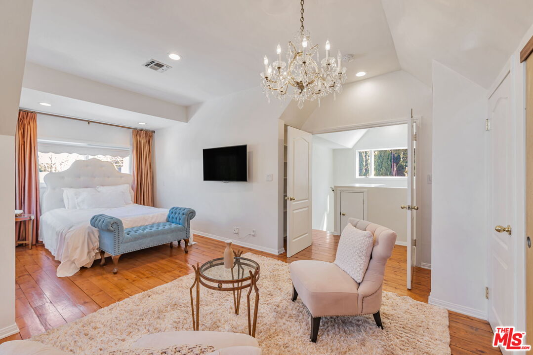 This lovely Tudor is located in the highly coveted Silver Triangle of Studio City. A charming gem hidden behind lush hedges thishome boasts natural light throughout, spacious living areas, pine hardwood floors, and a chef's kitchen. A large bedroom downstairs perfect for guests or home office, with an adjacent full bathroom. Two generous bedrooms upstairs including the bright enchanting primary suite with high ceilings, plenty of closet pace, and luxurious remodeled primary bath with double sinks and elegant tile work. A warm inviting family room with views of the lush backyard and outdoorsitting area perfect for al fresco dining. Also featured is the detached garage and a BONUS living space (additional 624 sq feet) with kitchenette and bathroom, perfect for guests, studio or home office! Around the corner from all the trendy and popular Laurel Canyon/Ventura Blvd shopping, cafes, and restaurants, Studio City Farmer's Market, Fryman Canyon hiking and Carpenter School. This lovely home in one of the most coveted pockets of Los Angeles awaits your personal touch.Interested in this Listing?