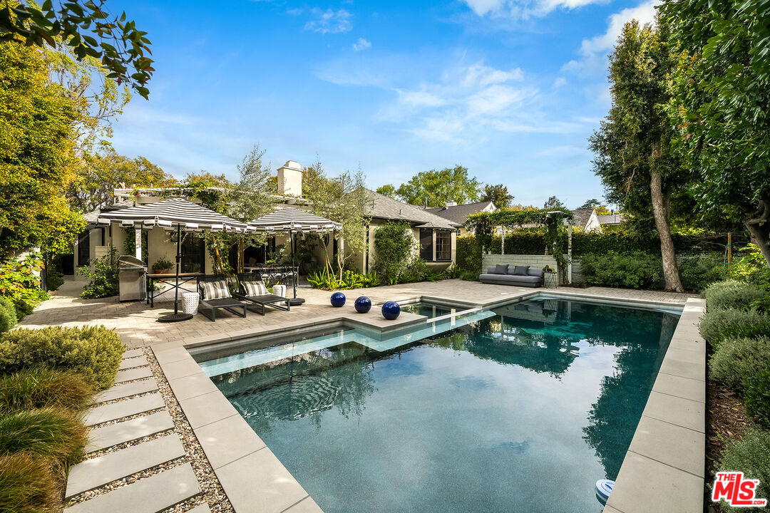 Longridge Estates! Welcome to this beautifully reimagined traditional home, seamlessly blending timeless charm with modern upgrades. Nestled behind gates, this private oasis offers a serene escape from city life. Featuring 3 bedrooms and 4 bathrooms, this home has been meticulously updated inside and out. A grand formal living room, inviting family room, additional seating area, a cozy bar and formal dining room are perfect for gracious entertaining. Enjoy the stunning landscaping with park-like grounds, mature plantings and trees and a drip irrigation system,and fully grown hedges in front and side yard for privacy. Plenty of space to entertain in both front and back yards, and a gorgeously re-designed pebble tech pool and spa. Major upgrades include a newer roof, sewer, electrical panel, full re-landscaping, fresh interior and exterior paint, and remodeled kitchen and bathrooms with high-end finishes. Primary suite bath includes large walk-in steam shower, marble flooring, and bedroom features a huge walk-in closet and bay window looking out to the backyard. Refurbished and refinished original wood floors, custom window coverings and designer light fixtures throughout. ACS alarm system with video cameras. Ideally located near Ventura Blvd's top shops and restaurants, including the newly developed Studio City Sportsman's Lodge shopping complex. Convenient access to both public and private schools. Minutes to Beverly Hills, Century City and Weho. This home is truly a must-see... an absolute "10!"Interested in this Listing?