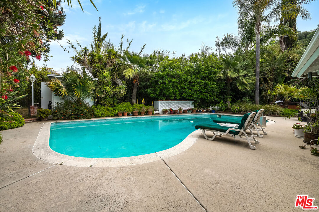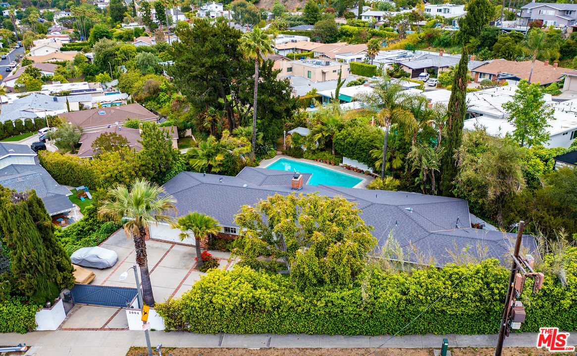 Tucked behind private gates on a lush, approximately one-third-acre lot, this exceptional residence offers 2,433 sqft of elegant living space in the heart of Studio City's prestigious Carpenter Community Charter School district. As you approach the home via a secluded, tree-lined driveway, a sense of peace and privacy takes over. The gated entrance provides off-street parking for multiple vehicles, along with a spacious two-car garage, ensuring both convenience and security. Inside, the home welcomes you with natural light, clean architectural lines, and authentic Spanish tile flooring, all set within a layout that celebrates Mid-Century Modern ideals functionality, indoor-outdoor flow, and built-in design elements. The well-proportioned floor plan offers both connectivity and separation, ideal for today's lifestyle. With three generous bedrooms and a dedicated home office, the layout supports both comfort and creativity. The formal living room radiates character, while the expansive family room, complete with a wet bar and double-sided fireplace, is framed by picture windows that showcase stunning canyon and city views offering a tranquil backdrop whether entertaining or relaxing. Step outside to discover a true resort-style retreat. A very large pool, inviting spa (Jacuzzi), and fire pit anchor the expansive outdoor space, surrounded by mature trees that create a private atmosphere. Multiple patios offer ideal settings for al fresco dining and leisure, including a secluded patio off the primary suite, complete with a soothing fountain a perfect morning or evening escape. Whether you envision a careful restoration, creative update, or full reimagination, this home offers a solid structural foundation and inspiring architectural bones to bring your vision to life.Interested in this Listing?