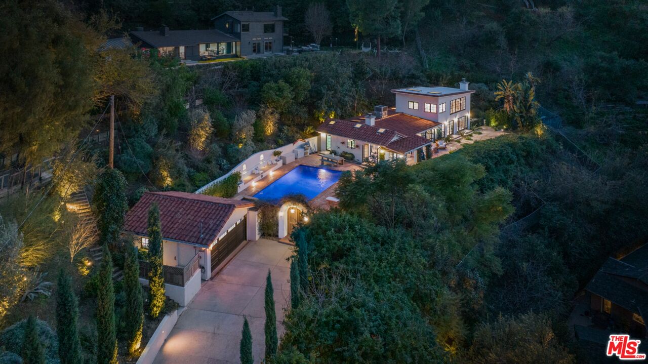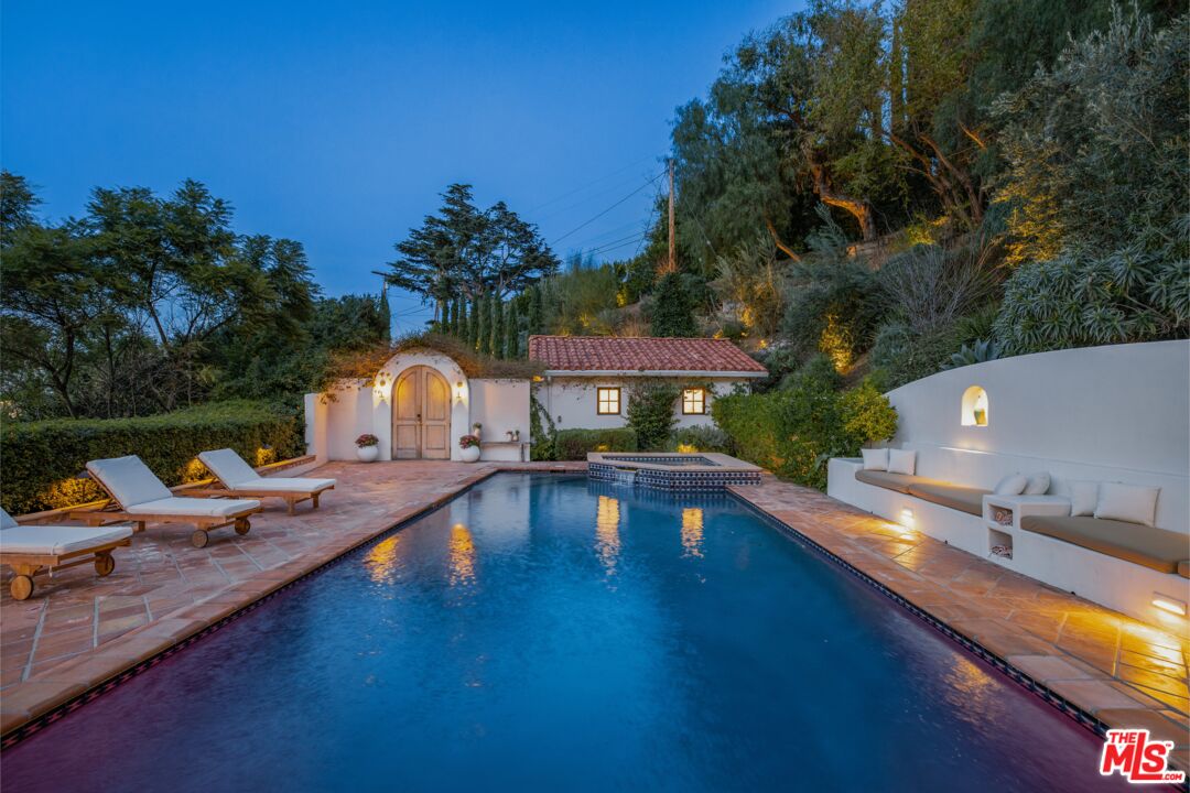 Enchanting celebrity hideaway or artist's retreat in the Studio City hills offers complete serenity and sweeping valley views. Enter through oversized gates and a long driveway for absolute privacy and seclusion. Exquisite landscaping creates a verdant, Mediterranean oasis complimented by Saltillo tiled patio, saltwater pool and spa, outdoor kitchen, multiple seating areas and fire pit. The main residence offers a bright, open floor plan that flows effortlessly between indoor and outdoor spaces. The living room features beamed ceilings, gas fireplace, wood floors (throughout) and panoramic views framed by a glass curtain wall. An updated kitchen with stainless steel appliances, marble countertops, glass-tiled backsplash and adjacent breakfast area connects the dining room and outdoor entertaining areas. The ground level is complete with a den, laundry area, powder room, and two bedrooms each with en-suite baths. Upstairs, escape to a magical primary suite appointed with a cozy fireplace, walk-in closet and full bathroom with soaking tub. Outside, the converted garage offers versatility for uses like a home office, gym, or creative studio. Enjoy additional upgrades like a state-of-the-art water filtration and home security systems. Privacy fencing around property restricts visual access from prying eyes. Overlooking the esteemed Silver Triangle, the home is moments to some of the best shopping, dining, and entertainment below, but you'll love returning to this breathtaking property time and again. Shown by appointment to prequalified buyers.Interested in this Listing?