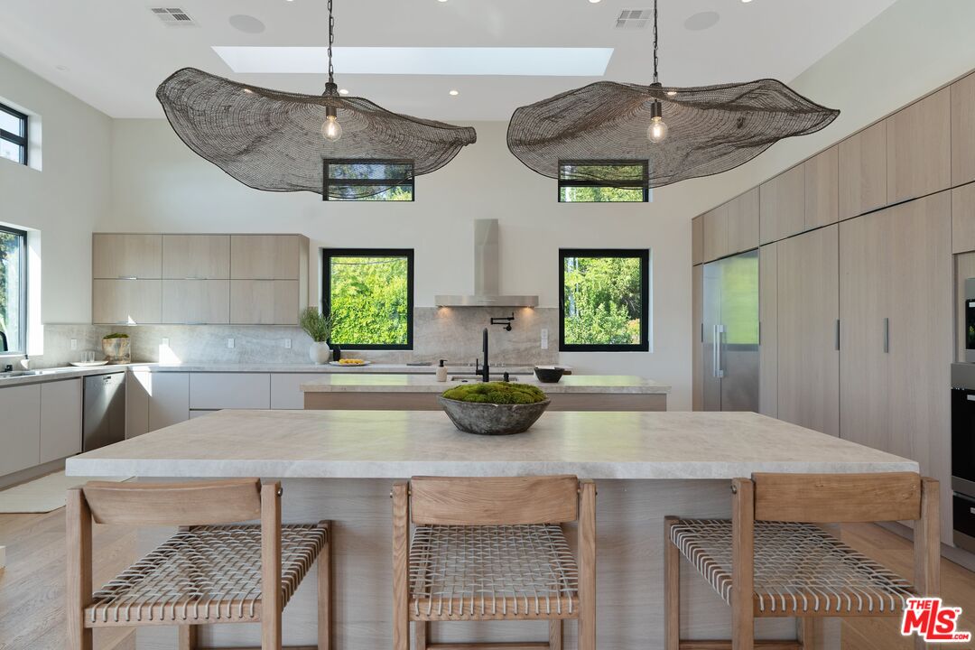 Incredible Property in Prime Location! Stunning modern organic masterpiece set up in the hills of the celebrity enclave of Studio City. Gated and private this home features 16 foot ceilings, German engineered tilt windows with panoramic mountain & city views. This home has been newly remodeled with all the wow factory a luxury home can provide. Stunning chefs kitchen with Miele & Viking appliances, elegant natural stone Taj Mahal countertops, dual custom islands & new custom cabinetry. In addition to the 4 en suite bedrooms, there is a home gym / yoga room & sauna with shower off the primary suite, plus custom outdoor kitchen & one of a kind temperature controlled zero edge salt water pool & spa. Embodying California's finest living, step outside to the newly designed outdoor deck and garden which have had extensive upgrades providing the ultimate environment for outdoor entertaining. This modern retreat is an entertainers dream with smart home capabilities including 26 speakers throughout. Gated driveway and large 2 car garage! Other features include 2 laundry areas, custom bar area off the impressive family room and more!Interested in this Listing?