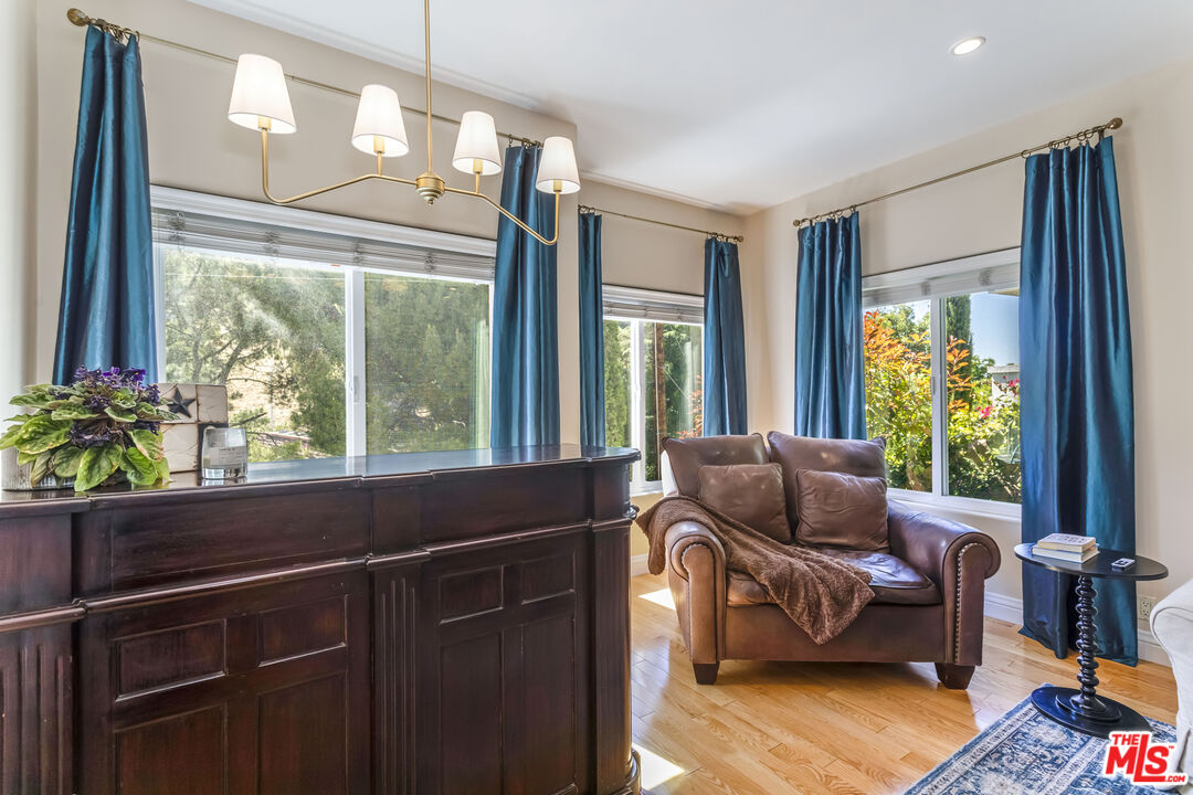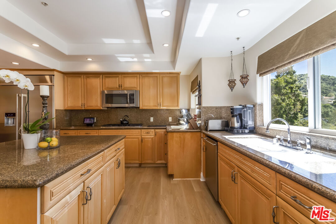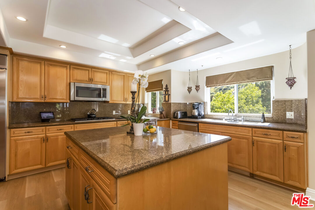 Tucked away on a secluded street south of the Boulevard, just moments from Ventura Blvd.'s restaurants, shops, and markets, this beautifully designed home was built in 2002 and offers a flexible, generously sized floor plan with approximately 3,442 square feet (per public record).The property features a total of five bedrooms and six bathrooms, including a separate guest apartment with its own private entrance, living room, bathroom, and kitchenette ideal for guests, extended family, or a home office.The light and bright living room opens to both the backyard and the kitchen, creating a seamless flow. The eat-in chef's kitchen boasts stainless steel appliances, dual standard-sized ovens, granite countertops, wood cabinetry, a center island, and detailed lighting, all with beautiful, tree-lined views.A gracious powder room and an ample dining room with a fireplace, floor-to-ceiling sliding doors, a balcony, and a hand-troweled plaster wall with a dragon mural add character and elegance to the main level.The secluded backyard (approx. 1,000 sqft) offers privacy and tranquility with an outdoor fireplace, water fountain, and space wired for a spa. Additionally, a rooftop deck (approx. 800 sqft) provides 360-degree views of the surrounding hills and valley.Upstairs are three ensuite bedrooms, including the light-filled primary suite with treetop views, a fireplace, dual walk-in closets, and a spa-like bath with a jetted tub and oversized shower. A bar area and a convenient upstairs laundry room complete the upper level.Additional features include a three-car garage, an off-street uncovered parking space for the guest apartment, and a residential elevator. With its flexible and spacious layout, this home is perfect for entertaining privately nestled yet just moments from everything.Interested in this Listing?