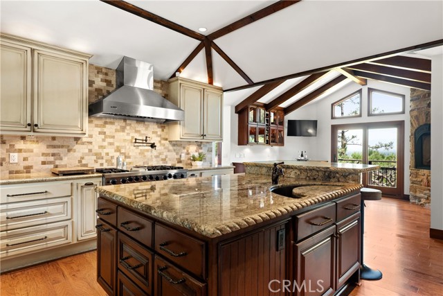 This three level expansive and private Studio City retreat offers sweeping city and mountain vistas, seamlessly blending serenity, sophistication, and artistic distinction. Floor-to-ceiling glass doors open to breathtaking wraparound view decks, inviting indoor-outdoor living with multiple spaces for lounging, dining, and soaking in the panoramic scenery. The heart of the home is an exceptional chef s kitchen outfitted with Viking Professional appliances, hand-crafted cabinetry, hammered copper sinks, 2 pantries, 2 dishwashers and a unique hand-hewn granite island with roped edge. The lush grounds are highlighted by a tranquil footbridge over a beautiful waterfall ecosystem by California Waterscapes. Inside this four bedroom home, rich warmth meets refined elegance with four cozy gas fireplaces, a collector s wine cellar, and a spa-like primary suite featuring a rock-pebble steam shower and spa bath. This sprawling estate includes modern and energy-efficient features: tankless water heaters and a new main hot water heater for optimal efficiency; ample built-in storage throughout the home; and a newly installed Kevlar-lined sewer system. Additionally, there is a lower-level unfinished space, ideal for conversion into a guest suite or fully independent ADU (Accessory Dwelling Unit), making this a four level residence. This home is situated on a peaceful cul-de-sac (with a two car garage and street parking for guests) for maximum privacy, yet conveniently located just minutes from major studios, the Westside, Harvard-Westlake School, and Ventura Boulevard s top dining and shopping. This one-of-a-kind estate offers the ultimate blend of tranquility, luxury, and accessibility. A rare and timeless retreat in the heart of Studio City, this is California living at its finest. You ll never want to leave.Interested in this Listing?
