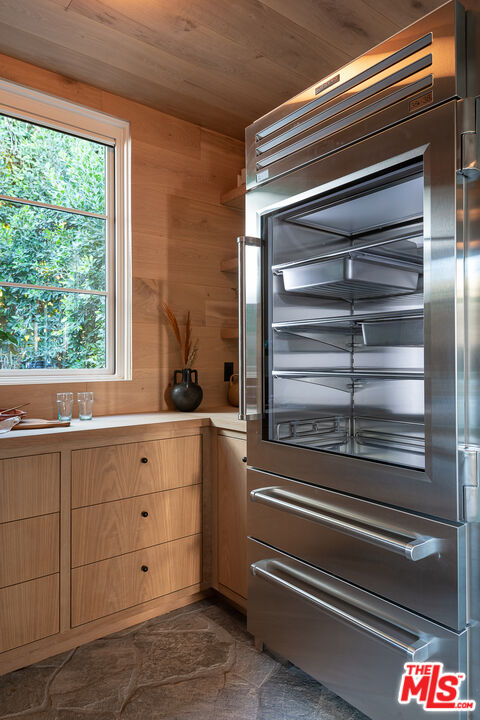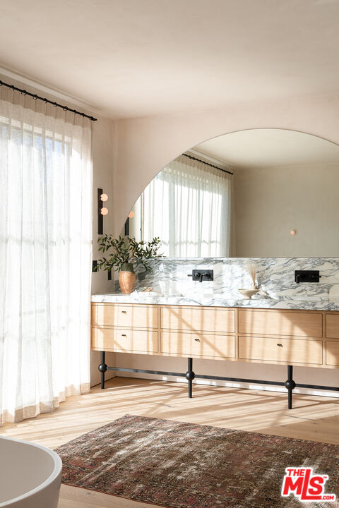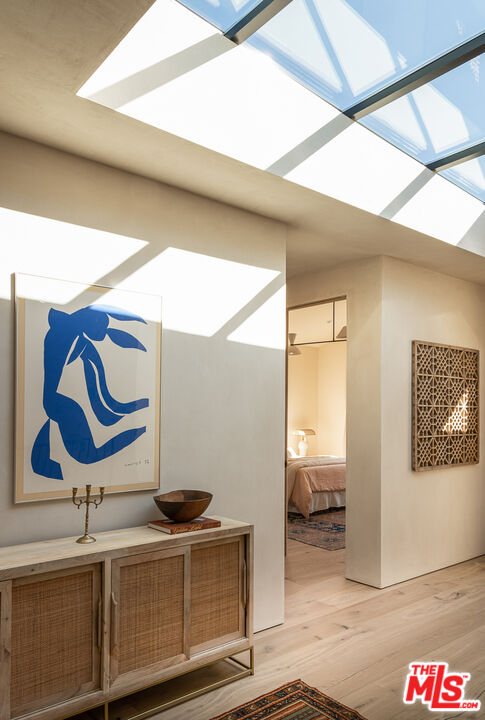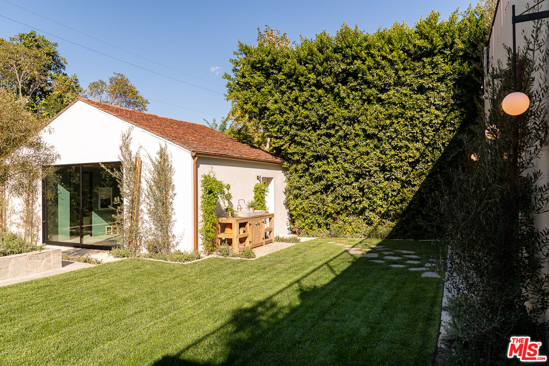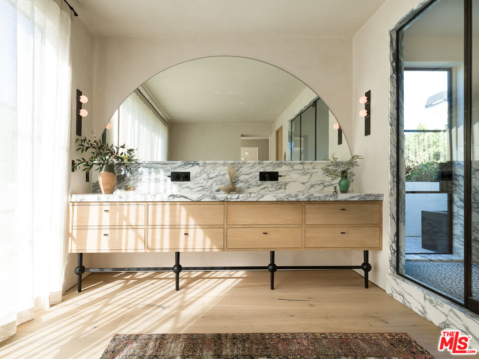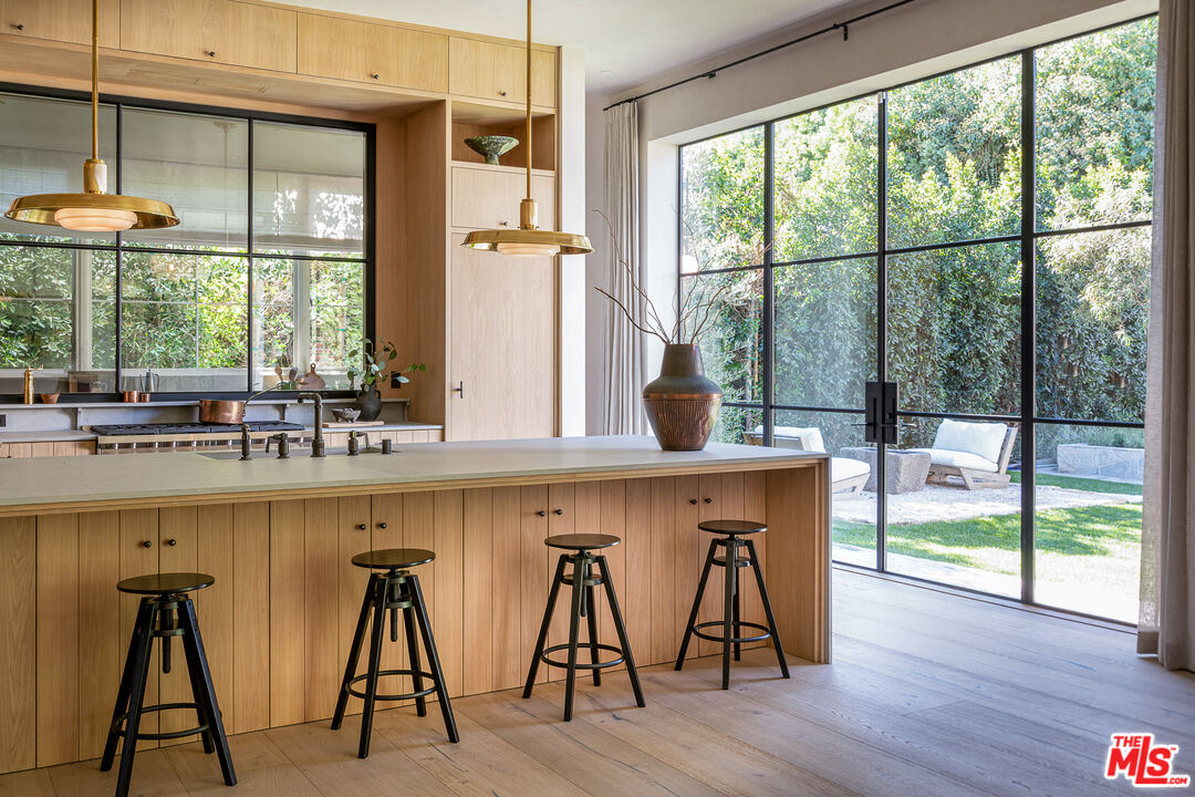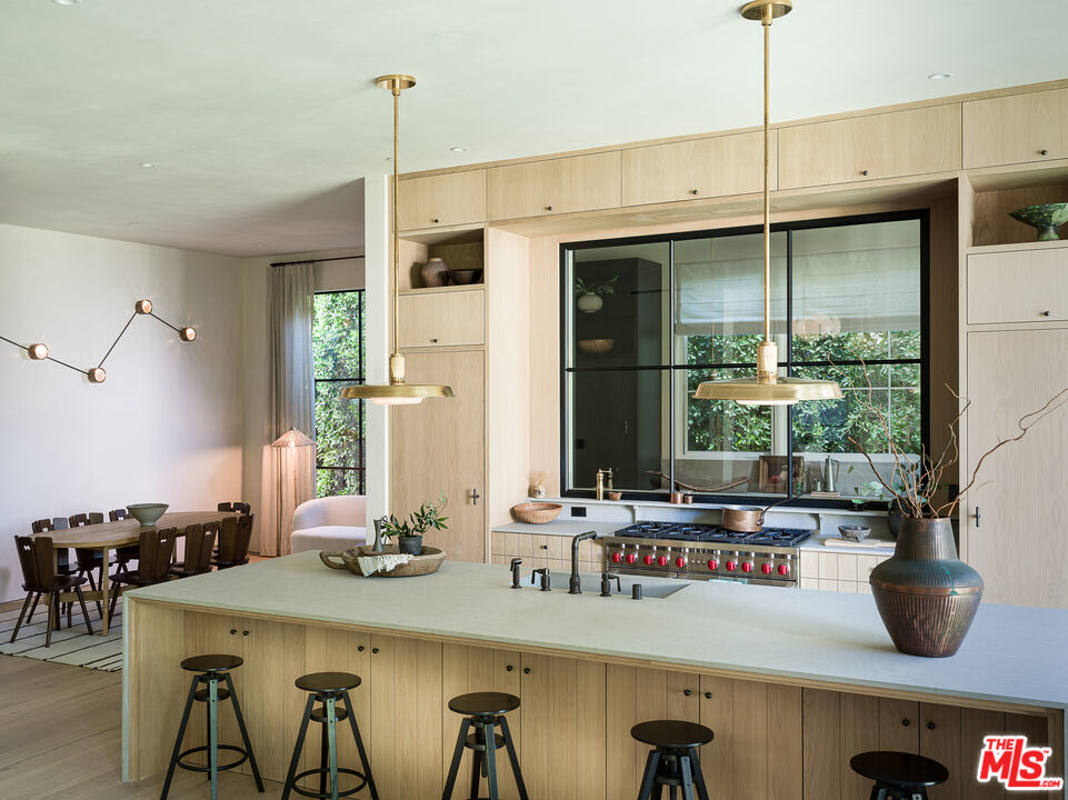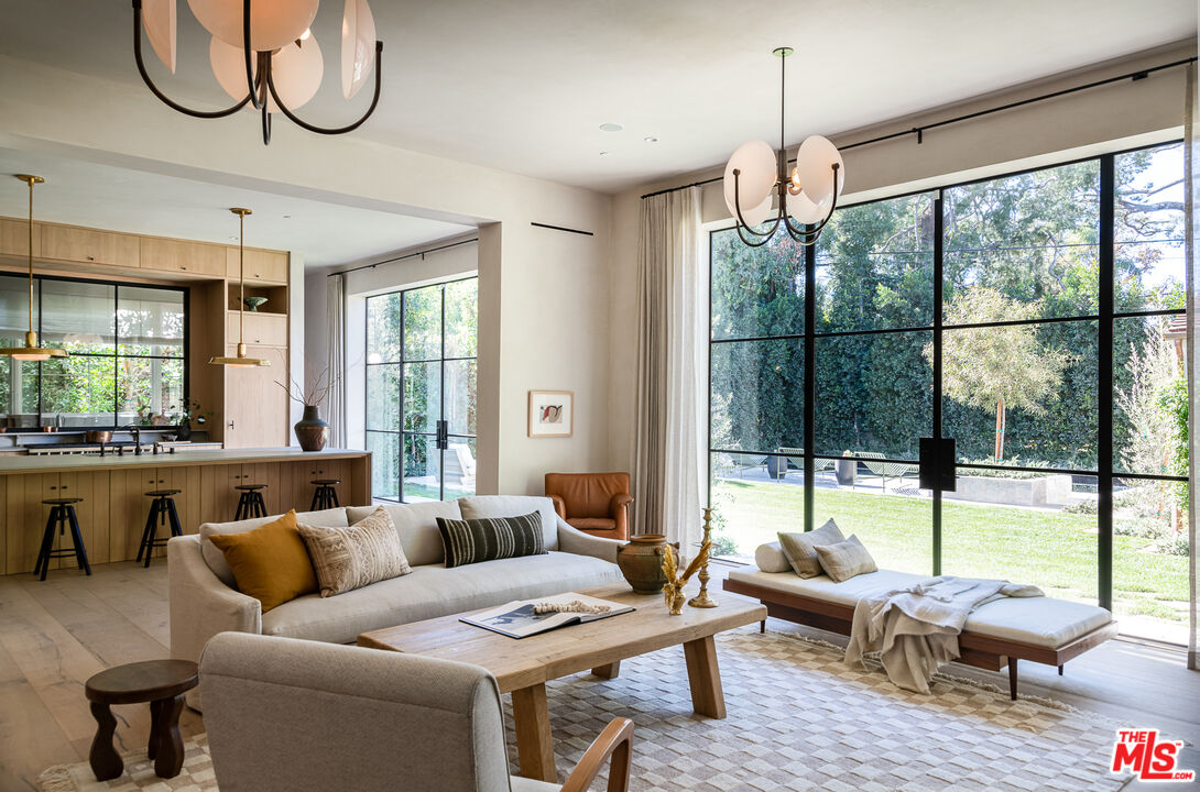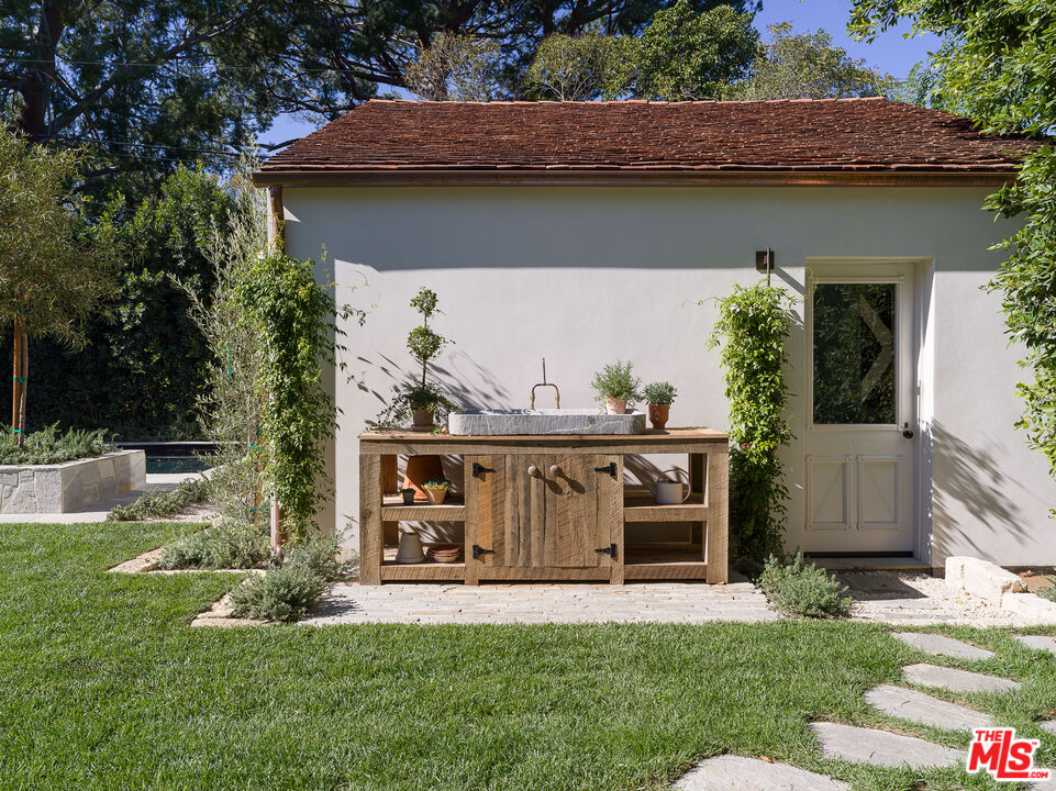 Situated on a tranquil, tree-lined street in Longridge Estates, this newly built masterpiece seamlessly blends architectural brilliance with natural beauty. The property includes artfully curated grounds and a detached full-service guest house. Square footage is as follows main house - 4,535/Upper floor open decks - 1,254 sf/ADU - +/- 500 sf. The interior features thoughtfully designed spaces with sanded limestone floors, oak-encased beams, and Apparatus Studio lighting. The living, dining, and kitchen areas are framed by expansive Euroline steel doors, while a fully-equipped prep kitchen supports large gatherings. A grand staircase with custom brass handrails leads to an upper landing with a 14-foot steel skylight and garden views. The primary bedroom boasts a barrel-vaulted clay ceiling and vintage lighting. Dual closets feature white oak cabinetry, custom hardware, and Sub-Zero refrigeration, while the luxurious primary bathroom includes Calacatta marble, an outdoor garden bathtub, and Samuel Heath fixtures. The stunning rear yard offers a black-bottom pool, infrared sauna, fire pit area, and ample space for relaxation. A large private den/bar area sits tucked in with a private courtyard great for entertaining. Timeless, elevated and family friendly home in one of Sherman Oaks best spots.Interested in this Listing?