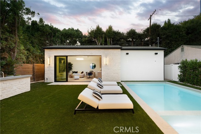 Discover this breathtaking new construction residence nestled on a gated lot within one of Studio City s most coveted enclaves. Verdant, impeccably manicured landscaping leads you to the front door, where European oak wood floors, lofty ceilings, and exquisite finishes welcome you inside. Upon entering, a grand hallway flows into an expansive formal dining area, accented by a stylish wine showcase and an elegant, staircase. The inviting family room boasts a fireplace and custom cabinetry, with large sliding glass doors that seamlessly connect indoor living to the exceptional backyard ideal for hosting guests. The gourmet kitchen is a chef s paradise, featuring stone countertops, a spacious central island, and premium stainless steel appliances. Upstairs, the enchanting primary retreat awaits with its own fireplace, a generous balcony, and an impressive walk-in closet. The luxurious primary bathroom offers a dual vanity, a deep soaking tub, and a rainfall shower for ultimate relaxation. Spacious guest bedrooms, each with private balconies, refined bathrooms, and walk-in closets, ensure abundant comfort. The secluded backyard serves as a tranquil retreat, complete with a radiant pool and spa perfect for unwinding or entertaining. A charming 600 sqft guest house, equipped with a bedroom, bathroom, and kitchenette, enhances the property s appeal. Outfitted with a state-of-the-art Control4 system and surround sound, this home delivers contemporary elegance. Perfectly positioned just moments from Tujunga Village, Ventura Blvd, Woodbridge Park, and the Studios including CBS, NBC, Universal, Disney, and Warner Bros. as well as all the vibrant offerings of fabulous Studio City, this residence promises an unmatched lifestyle of sophistication and convenience.Interested in this Listing?