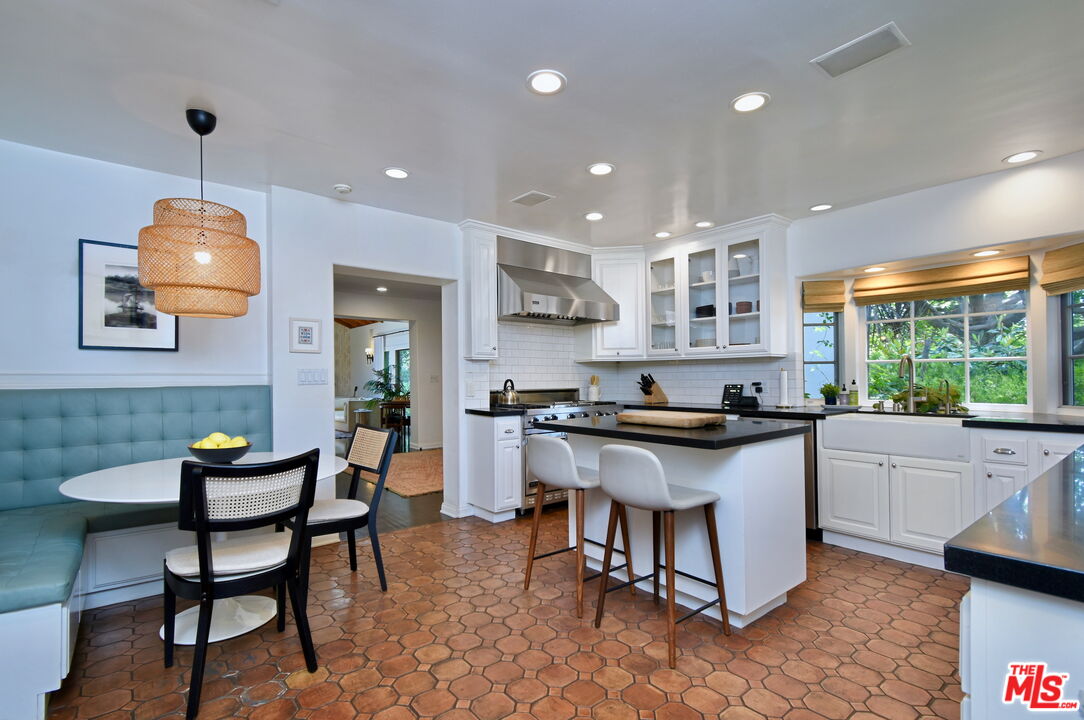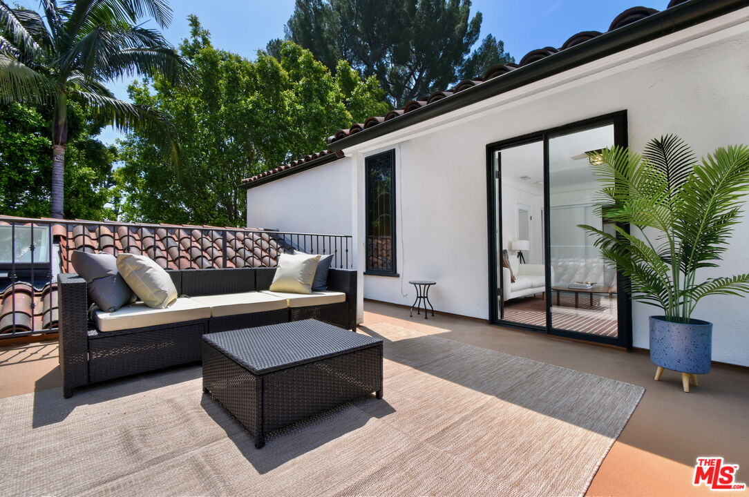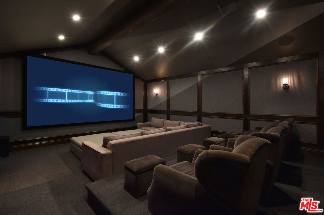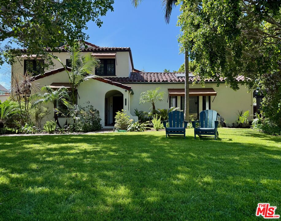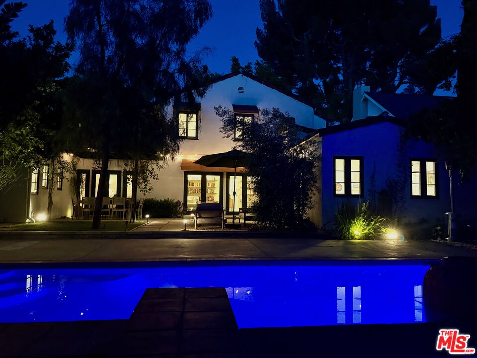 Tucked away in one of LA's most sought-after neighborhoods, Colfax Meadows, is a place where time slows down. People stroll leisurely along tree-lined streets, kids ride their bikes and there's a 4th of July parade with the local firefighters. It's a community with heart and soul. 4277 Beck is that rare SPANISH architecture rich with character and stately charm. As you approach the oversized lot, the first thing you notice is a 1937 home set back far from the street, with a generous front lawn. A mighty tree greets you, its branches casting dappled shadows across the yard where you can sit on the grass, relax and watch the world go by. In this magical setting, you can't help but feel you've travelled back in time. Pass through the arched entry to find a beautifully remodeled interior blending modern updates with authentic Spanish style. A curved staircase leads your eye to a stained-glass window and original 1930s light fixtures, creating a timeless atmosphere that highlights enduring craftsmanship. The high-beamed living room is dramatic and captivating, complete with a crackling wood-burning fireplace (also plumbed for gas). The ceiling, meticulously restored to its original grandeur, adds an undeniable sense of history. Step into the formal dining room, where a large picture window offers sweeping views of the expansive, lush yard. The renovated kitchen features a large center island, built-in corner seating, and gourmet features like a Viking range, warming drawer, two dishwashers, and a walk-in pantry perfect for modern living and entertaining. Enter the main level primary suite and find yourself immersed in luxury. In the stunning sunlit bathroom, no expense has been spared, including Heath Ceramic tiles, top-of-the line fixtures, powered window blinds and a powered skylight above the oversized shower. Completing the primary suite is a generous walk-in closet with accent lighting. Curiously, in the bedroom you might notice there's no television. That's because you'll be watching your favorite shows on a 10-foot screen which automatically lowers from the ceiling at the press of a button. And thanks to commercial-grade sound-proofing in the walls, no one else in the house will be bothered by your powerful in-wall 5.1 sound system. Also on the main level, you'll find a second bedroom suite with full bath and walk-in closet, ideal for younger children, teens or guests. Upstairs, three additional bedrooms and two baths accommodate families of all sizes. In the courtyard, the firepit seating and al fresco dining areas enhance the coveted outdoor So Cal lifestyle. The backyard romantic sparkling pool and spa are shaded by towering privacy trees. Adjacent to the pool, your final discovery is perhaps the most special; a detached ADU/Guest House containing a state-of-the-art movie theater, so extraordinary that celebrities have requested it to screen movies for friends. The structure, which also contains a separate office and bathroom, has its own address, making it a unique value-add for anyone who works from home. Timeless appeal, timely finishes and design. Your forever home.