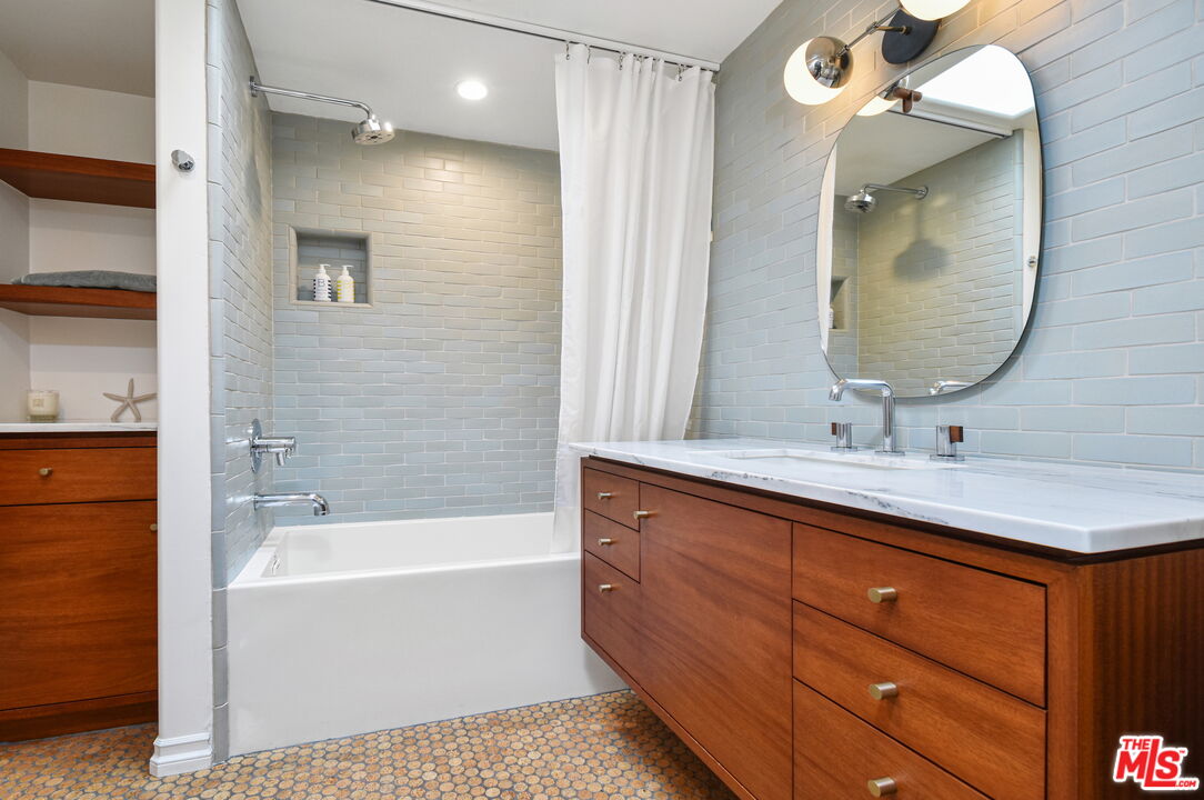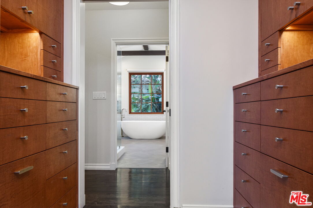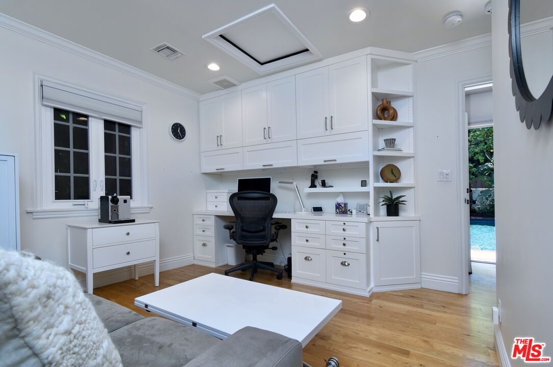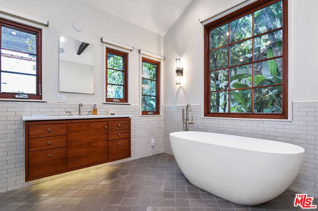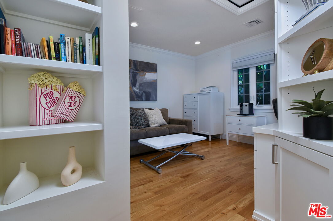 Tucked away in one of LA's most sought-after neighborhoods, Colfax Meadows, is a place where time slows down. People stroll leisurely along tree-lined streets, kids ride their bikes and there's a 4th of July parade with the local firefighters. It's a community with heart and soul. 4277 Beck is that rare SPANISH architecture rich with character and stately charm. As you approach the oversized lot, the first thing you notice is a 1937 home set back far from the street, with a generous front lawn. A mighty tree greets you, its branches casting dappled shadows across the yard where you can sit on the grass, relax and watch the world go by. In this magical setting, you can't help but feel you've travelled back in time. Pass through the arched entry to find a beautifully remodeled interior blending modern updates with authentic Spanish style. A curved staircase leads your eye to a stained-glass window and original 1930s light fixtures, creating a timeless atmosphere that highlights enduring craftsmanship. The high-beamed living room is dramatic and captivating, complete with a crackling wood-burning fireplace (also plumbed for gas). The ceiling, meticulously restored to its original grandeur, adds an undeniable sense of history. Step into the formal dining room, where a large picture window offers sweeping views of the expansive, lush yard. The renovated kitchen features a large center island, built-in corner seating, and gourmet features like a Viking range, warming drawer, two dishwashers, and a walk-in pantry perfect for modern living and entertaining. Enter the main level primary suite and find yourself immersed in luxury. In the stunning sunlit bathroom, no expense has been spared, including Heath Ceramic tiles, top-of-the line fixtures, powered window blinds and a powered skylight above the oversized shower. Completing the primary suite is a generous walk-in closet with accent lighting. Curiously, in the bedroom you might notice there's no television. That's because you'll be watching your favorite shows on a 10-foot screen which automatically lowers from the ceiling at the press of a button. And thanks to commercial-grade sound-proofing in the walls, no one else in the house will be bothered by your powerful in-wall 5.1 sound system. Also on the main level, you'll find a second bedroom suite with full bath and walk-in closet, ideal for younger children, teens or guests. Upstairs, three additional bedrooms and two baths accommodate families of all sizes. In the courtyard, the firepit seating and al fresco dining areas enhance the coveted outdoor So Cal lifestyle. The backyard romantic sparkling pool and spa are shaded by towering privacy trees. Adjacent to the pool, your final discovery is perhaps the most special; a detached ADU/Guest House containing a state-of-the-art movie theater, so extraordinary that celebrities have requested it to screen movies for friends. The structure, which also contains a separate office and bathroom, has its own address, making it a unique value-add for anyone who works from home. Timeless appeal, timely finishes and design. Your forever home.