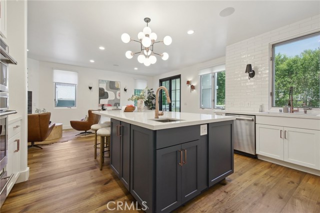Amazing Studio City home with over 4,600 sq.ft. of living space. Entry foyer leads to a lovely living room with a cozy fireplace and beautiful wood flooring (installed throughout the house in 2020). The chef s kitchen was renovated in 2021 with Monogram and Bosch stainless steel appliances, custom cabinetry and an oversized island with breakfast bar and prep sink. It opens to the family room with a fireplace and has a Sonos ceiling speaker system. All of the gorgeous French doors on the main level were installed in 2021. Other main floor features include a large formal dining room, wonderful den, guest bedroom with a full bath and a laundry room. There are 2 patios (redone in 2021) on the main floor, one off the living room, the other opens from both the dining room and the kitchen/family room. It includes a full outdoor kitchen with 30 natural gas griddle, BBQ, Big Green Egg Smoker, refrigerator, sink and storage plus outdoor Bluetooth Sonos speakers. The spacious primary suite has an amazing en-suite bath (redone in 2021) with heated floors, a Mr. Steam shower system with audio, and an oversized spa tub with 30 hydro and air massage jets. Additionally there is a fireplace, a large walk in closet and a balcony. Other upstairs rooms include 3 additional bedrooms (one with en-suite bath and the other two are Jack and Jill bedrooms with a shared bath. The lower level projection TV room has a 10 screen and projector and a wet bar. It opens to the lovely backyard making it perfect for indoor/outdoor entertaining. The house has solar panels on the roof. There is also a large storage room and additional storage in the 3 car garage (one side is tandem). This magnificent home is located near wonderful dining and shopping at the Sportsmen s Lodge complex, close to great schools like Harvard Westlake upper campus and has easy access to all canyons and freeways.Interested in this Listing?