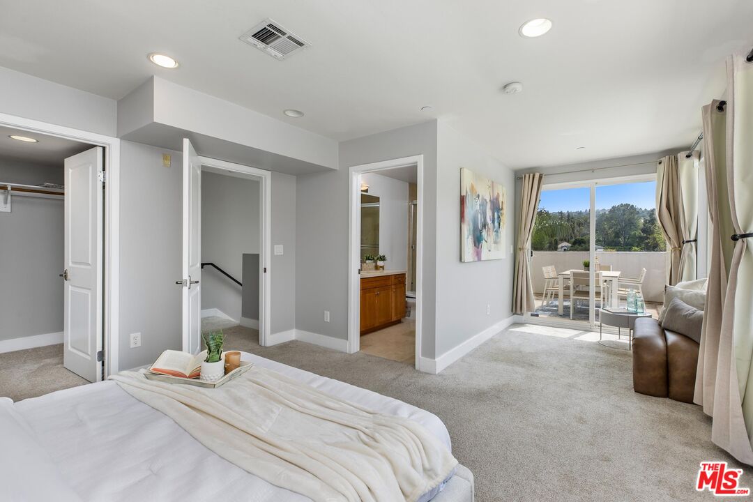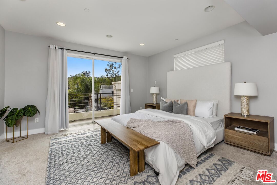 Spectacular 3BD/3.5BA townhome south of the Boulevard in Studio City! This beautifully maintained, move-in ready home features soaring ceilings and an abundance of natural light throughout. The chef's kitchen is a dream, boasting granite countertops, stainless steel appliances, and a spacious walk-in pantry. The inviting living room includes a cozy fireplace and opens to one of three private patios, perfect for indoor-outdoor living. Upstairs, the expansive primary suite offers a spa-like bath, a large walk-in closet, and access to a second private patio. Also on this level: a second bedroom with its own full bath, plus a convenient in-unit laundry area. The top floor features a third bedroom with an en-suite bath and a private patio with breathtaking views of the hills. Additional highlights include two side-by-side parking spaces, a private storage unit in the garage, guest parking, a community patio with BBQ, a recreation room with gym equipment, and dedicated bike/stroller storage. Just moments from all the shopping and dining along Ventura Boulevard and located within the coveted Carpenter Elementary School district, this one won't last! Property is also available for lease at $6,000/month.Interested in this Listing?