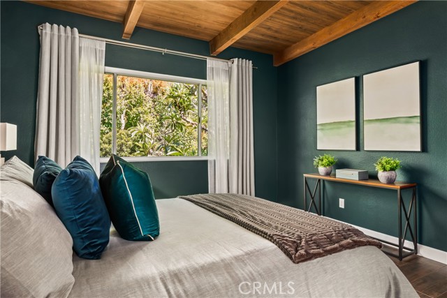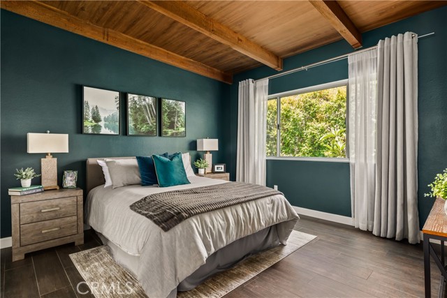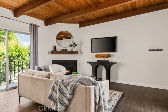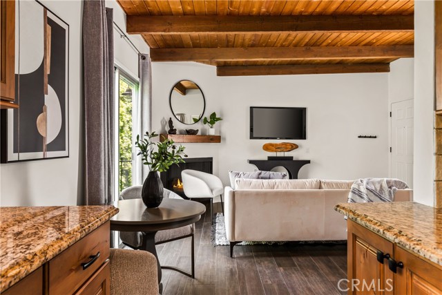 As you enter the unit, you're immediately welcomed by an open-concept living and dining area, warmed by a charming fireplace in the living room. Come home to relax in a space featuring wood-like floors and beam-accented ceilings. Step onto the adorable balcony perfect for letting in a refreshing cross breeze.The beautiful kitchen boasts stone countertops, a terracotta tile backsplash, an over-the-range microwave, and generous counter space on either side of the stove an ideal setup to flex your culinary muscles for family and friends.As you move past the kitchen, you'll find an ample linen closet and a laundry closet with space for a side-by-side washer and dryer. To your right, just before the bedroom, is a grand bathroom featuring a stone countertop vanity with abundant counter space and an exquisite tile-walled shower-tub combo.At the end of the hallway, the spacious bedroom awaits, complete with a large closet. All of this, plus access to a pool and located just a few blocks from Ventura Blvd and everything it has to offer.Interested in this Listing?