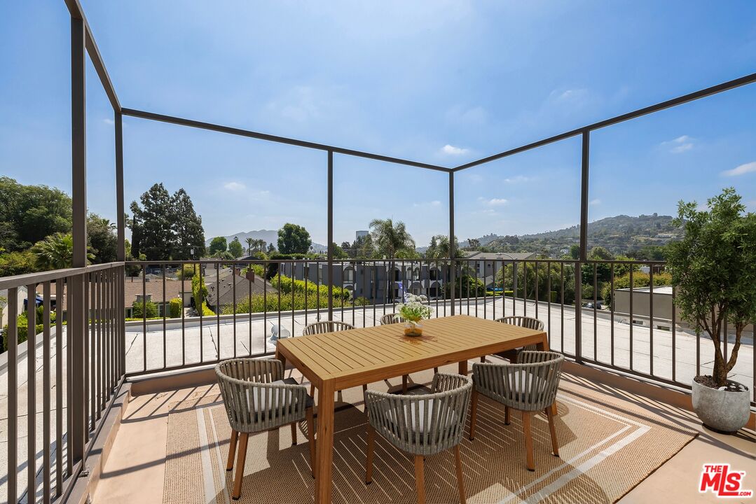 Presenting a lovely front-facing Colfax Meadows townhome with a rooftop showcasing 360-degree views of treetops and mountains, perfect for entertaining and relaxing on warm summer evenings. Mature, manicured landscaping includes shade trees, a privacy hedge, and a grassy yard. Inside, discover light-filled spaces on each level, from the foyer to the living room with its fireplace and Juliet balcony. A wraparound terrace can be accessed from both the formal dining room and the eat-in kitchen, allowing effortless indoor-outdoor flow and al-fresco bites and beverages. There are stainless-steel appliances including a cooktop with hood, granite counters, and copious cabinetry. The primary bedroom, also with Juliet balcony, includes an en-suite bath with dual-sink vanity and separate tub and shower as well as a walk-in closet with custom built-ins. Other bedrooms are spacious and can be utilized as guest bedrooms, an office, gym, meditation, and more. Entertain friends on the private rooftop deck under California skies. Conveniences include a laundry pulley system, side-by-side washer/dryer, and secured garage parking plus guest spots. Welcome to this perfect Studio City location just one block to the boutiques and old-school charm of Tujunga Village, beloved Aroma Coffee, and Jon & Vinny's! It's also close to parks, award-winning schools, major freeways, and the restaurants along Ventura Boulevard, just moments to Universal City Walk and The Shops at Sportsmen's Lodge, anchored by Erewhon and Equinox. Some photos are virtually staged.Interested in this Listing?
