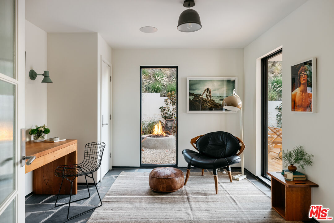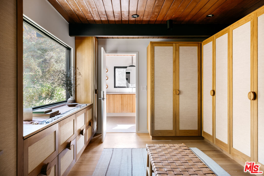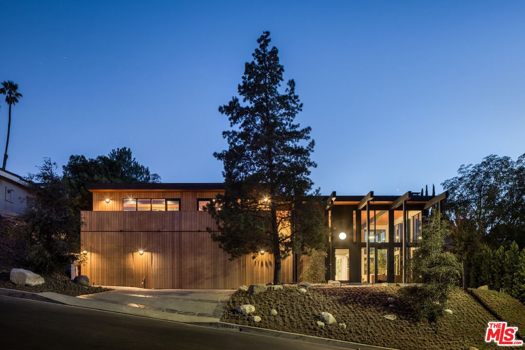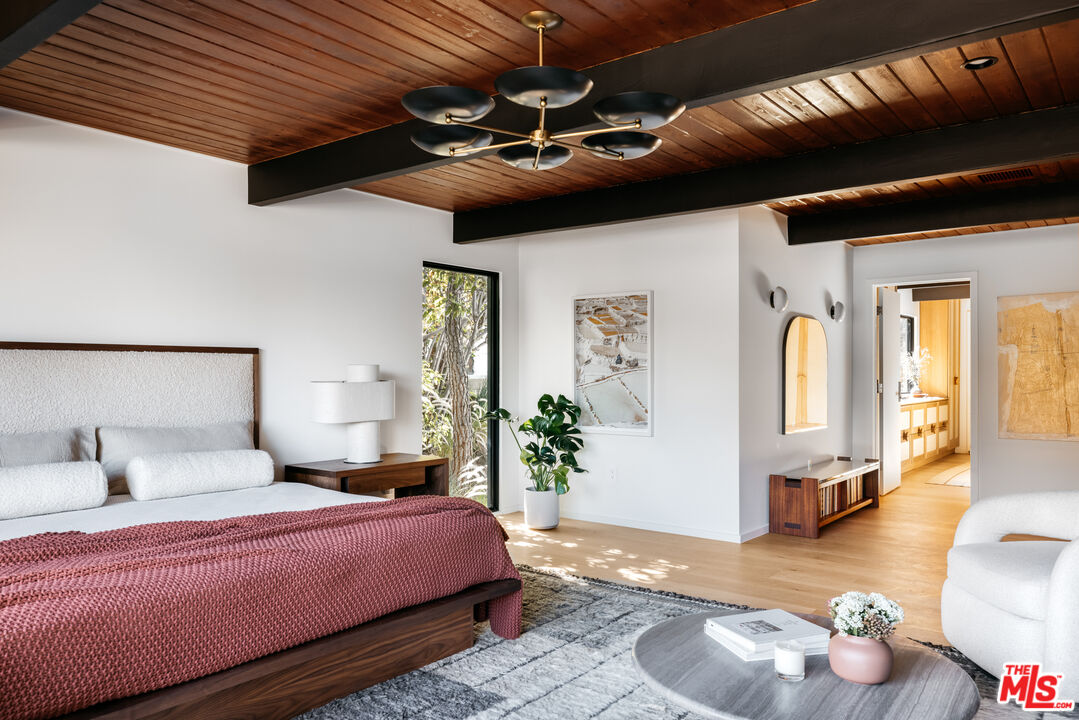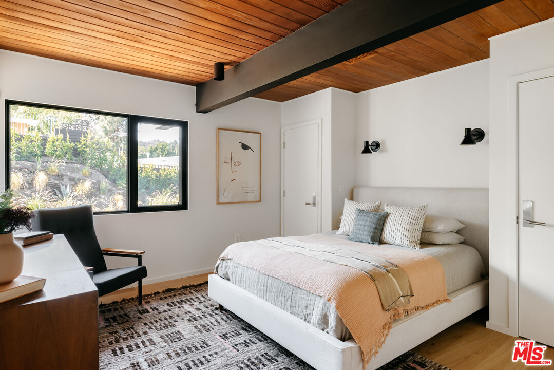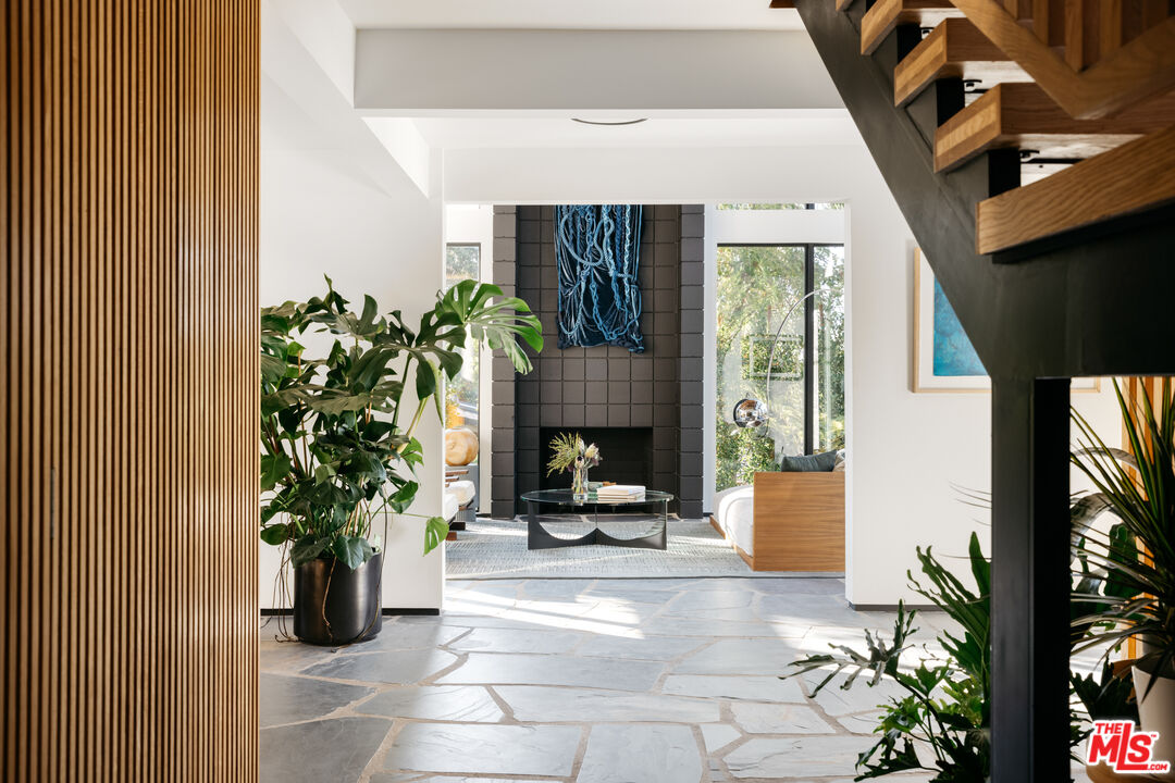 This period perfect FRYMAN CANYON 5 bed, 5 bath, Mid-Century Post & Beam renovation embodies the ethos of its time by staying true to its clean lines and careful simplicity with thoughtful re-imagining to cater to today's modern living and entertaining. This three year renovation was designed and carefully sourced by a high-end design group with absolutely no expense spared, using skilled craftsmen and custom wood artisans for one-of-a kind creations. This Dwell featured home has floor to ceiling walls of glass in an awe-inspiring living room with 20 ft ceilings, complemented by a massive matte black fireplace and stunning slate floors that seamlessly extend to the outdoor space, fusing the indoor and outdoor space with ease and complete privacy. Experience a deep connection to nature through multiple walls of glass, opening to wonderful outdoor spaces showcasing earth, fire and water elements, with a new pebble-tec salt water pool/spa, gas fire pit sitting area, wood deck and picturesque landscaping, including Japanese Maple trees and blooming Magnolias. An expansive gourmet kitchen has a 25 foot Quartzite island, with Miele appliances, and an island of slatted white-oak mill work cabinetry designed and made for the space by artisans. Slatted wood design accents grace the stunning staircase to the upstairs loft and bedrooms. White Oak wide plank floors span the upstairs space, where all upstairs bedrooms are en-suite with bathrooms featured in House Beautiful and various other publications. The large primary suite has a balcony and mountain views, with a room sized closet with 8 custom-built Oak wardrobe closets with additional built-in drawers offering plentiful enclosed wardrobe and shoe storage. The primary bathroom has a custom made dual vanity, Quartzite counters, terrazzo floors and a large walk-in shower and separate soaking tub. Automatic blinds in most rooms allow light or privacy instantly. Two laundry rooms, one on each level. There are simply not enough words to describe this breathtaking and emotional home. Furnishings are a fusion of restored Danish/European MCM imports and new Modern. If your clients are looking for an ultra-sexy renovated lease that is NOT your cookie-cutter new construction, THIS IS IT. Just a couple blocks to serene hiking trails and close to all the studios, with easy access to Beverly Hills and Hollywood and top rated Carpenter School District. This visually captivating home is unrivaled in today's rental market!Interested in this Listing?