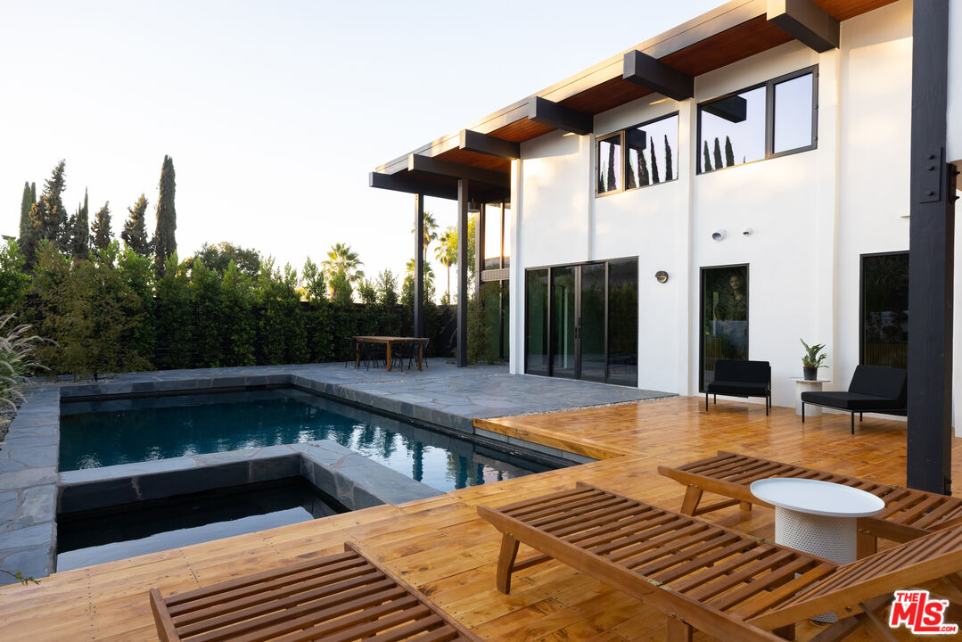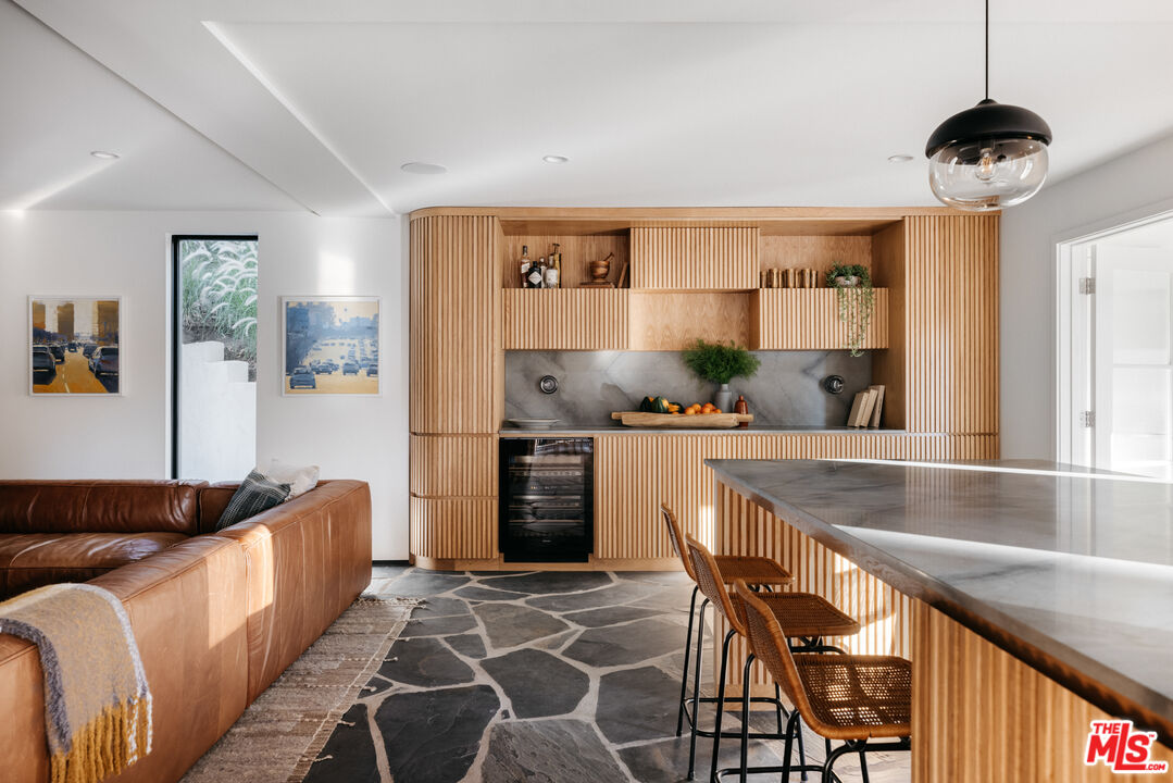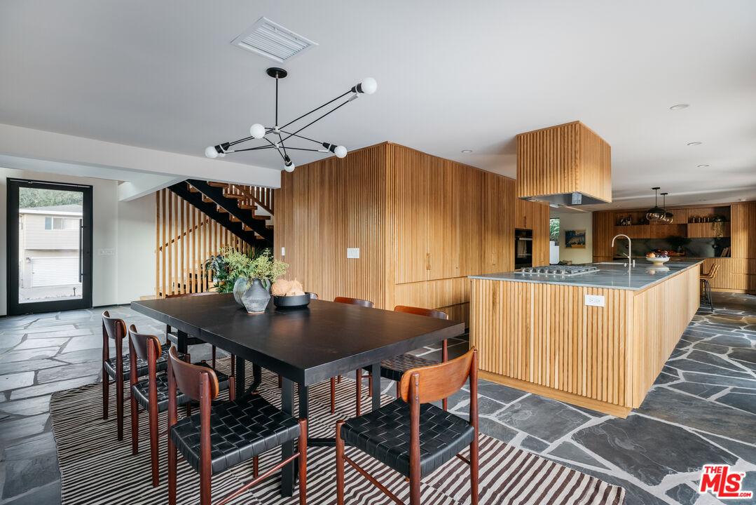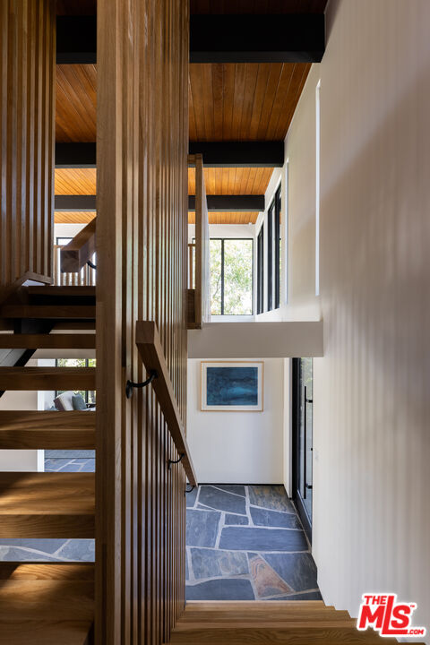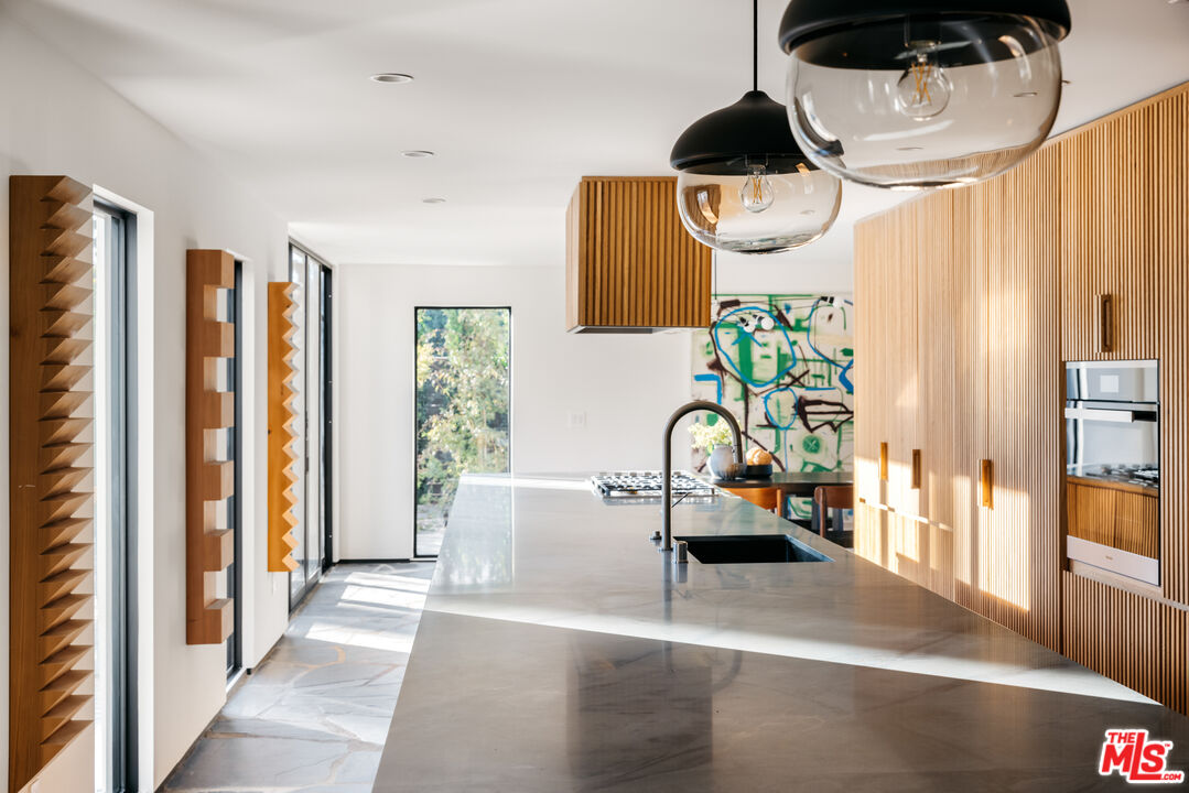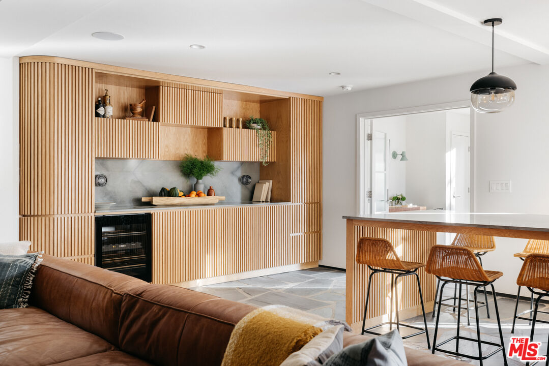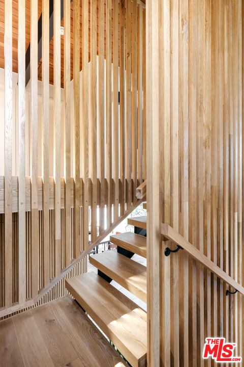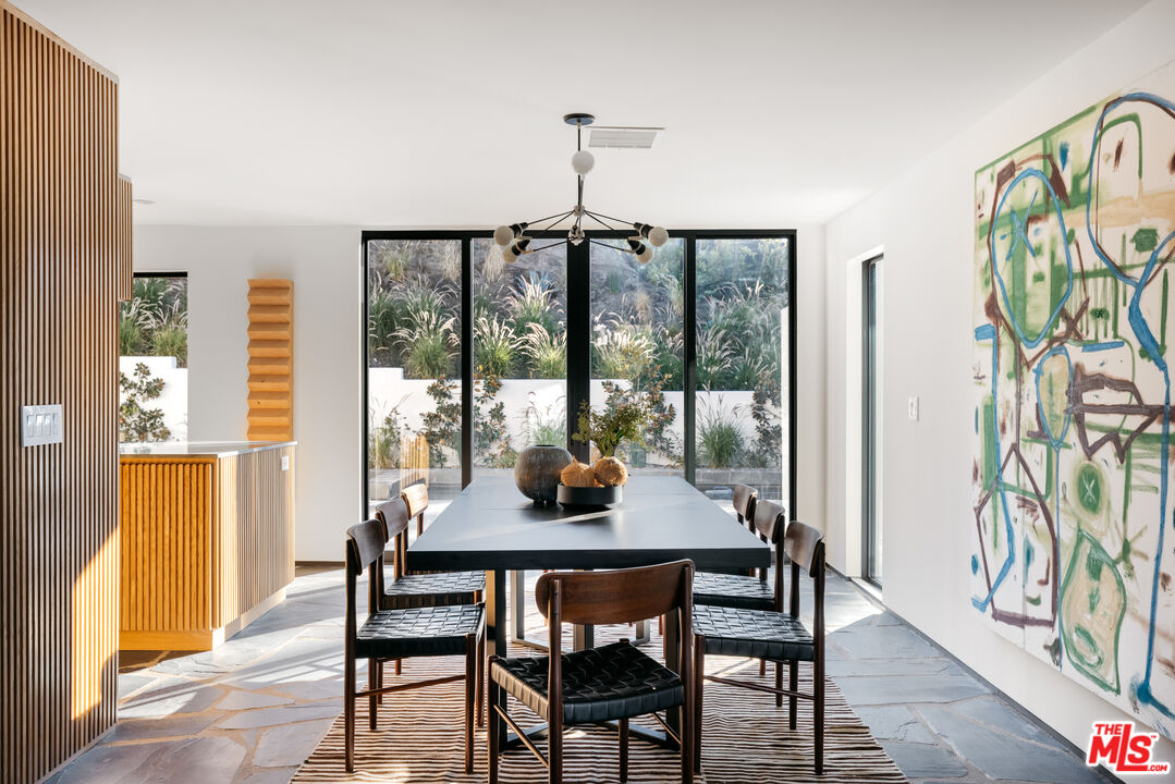 This period perfect FRYMAN CANYON 5 bed, 5 bath, Mid-Century Post & Beam renovation embodies the ethos of its time by staying true to its clean lines and careful simplicity with thoughtful re-imagining to cater to today's modern living and entertaining. This three year renovation was designed and carefully sourced by a high-end design group with absolutely no expense spared, using skilled craftsmen and custom wood artisans for one-of-a kind creations. This Dwell featured home has floor to ceiling walls of glass in an awe-inspiring living room with 20 ft ceilings, complemented by a massive matte black fireplace and stunning slate floors that seamlessly extend to the outdoor space, fusing the indoor and outdoor space with ease and complete privacy. Experience a deep connection to nature through multiple walls of glass, opening to wonderful outdoor spaces showcasing earth, fire and water elements, with a new pebble-tec salt water pool/spa, gas fire pit sitting area, wood deck and picturesque landscaping, including Japanese Maple trees and blooming Magnolias. An expansive gourmet kitchen has a 25 foot Quartzite island, with Miele appliances, and an island of slatted white-oak mill work cabinetry designed and made for the space by artisans. Slatted wood design accents grace the stunning staircase to the upstairs loft and bedrooms. White Oak wide plank floors span the upstairs space, where all upstairs bedrooms are en-suite with bathrooms featured in House Beautiful and various other publications. The large primary suite has a balcony and mountain views, with a room sized closet with 8 custom-built Oak wardrobe closets with additional built-in drawers offering plentiful enclosed wardrobe and shoe storage. The primary bathroom has a custom made dual vanity, Quartzite counters, terrazzo floors and a large walk-in shower and separate soaking tub. Automatic blinds in most rooms allow light or privacy instantly. Two laundry rooms, one on each level. There are simply not enough words to describe this breathtaking and emotional home. Furnishings are a fusion of restored Danish/European MCM imports and new Modern. If your clients are looking for an ultra-sexy renovated lease that is NOT your cookie-cutter new construction, THIS IS IT. Just a couple blocks to serene hiking trails and close to all the studios, with easy access to Beverly Hills and Hollywood and top rated Carpenter School District. This visually captivating home is unrivaled in today's rental market!Interested in this Listing?