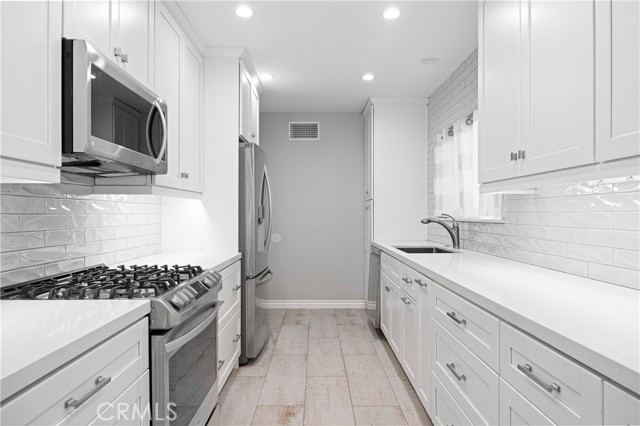COME TAKE A LOOK! FRONT HOUSE ONLY FOR LEASE. Front home interior has just been freshly painted. Kitchen and two baths completely redone in 2020. Vinyl flooring everywhere except kitchen and baths which have tile. One bedroom and 3/4 bath downstairs. No stairs at entry or from garage which is attached with direct across to kitchen. Two bedrooms and large full bath with Vanity upstairs. This home has loads of closets and storage. A fireplace takes center stage to the living room and dining room. Breakfast area at end of kitchen. There is an attached patio with 2 skylines the full width of the home and 11 deep. This home has a large entry and open floorplan with French doors leading to the patio and private backyard with orange and tangerine trees. Lot size is 6,500. Wonderful area 3 blocks to Beeman Park.Interested in this Listing?