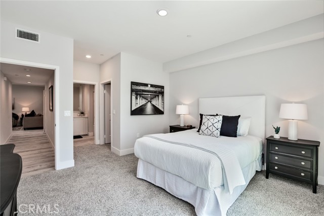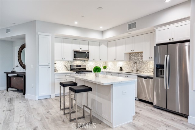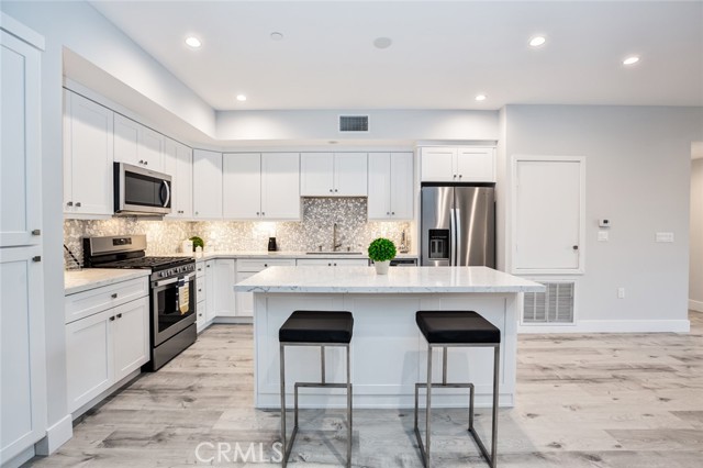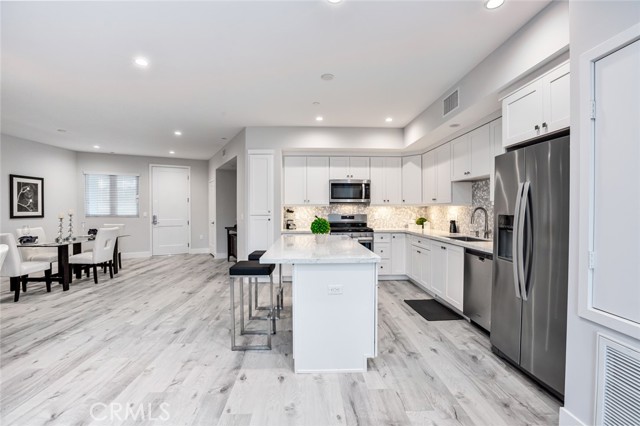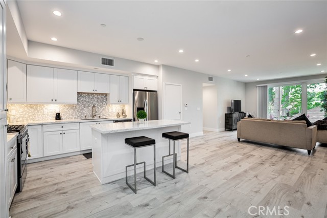 Welcome to Studio City! Spectacular newer 9 unit luxury building in prime residential neighborhood with beautiful views and very close to Universal Studios, Hollywood, Metro Station, local restaurants, parks and many entertainment places on Ventura Blvd. Amazing unit offer privacy, 9' ceilings, double pane windows and a lot of custom features. This spacious unit is light and bright with open floor plan and space to create your home office area. Very large living room with views of trees and balcony access. Dining area as well as breakfast bar. Cook's kitchen with an island, custom cabinetry, beautiful backsplash and top of the line stainless steel appliances including built-in microwave and refrigerator. Unit includes washer and dryer. Large master suite with full bathroom, walk-in closet and balcony access. Two other good sized bedrooms as well with nice hallway bathroom. Other features include; recessed lighting, window coverings, beautiful luxury vinyl floors, plenty of closet space and tankless water heater. Gated parking.
