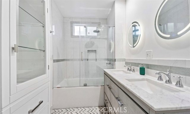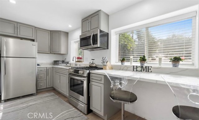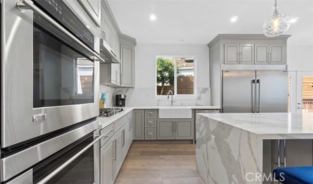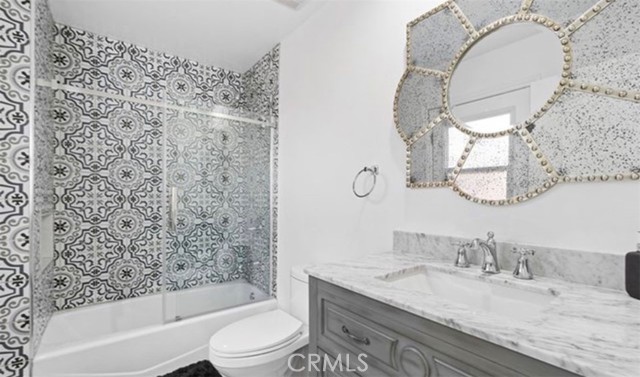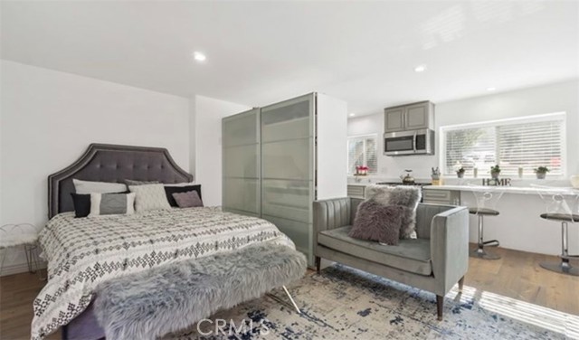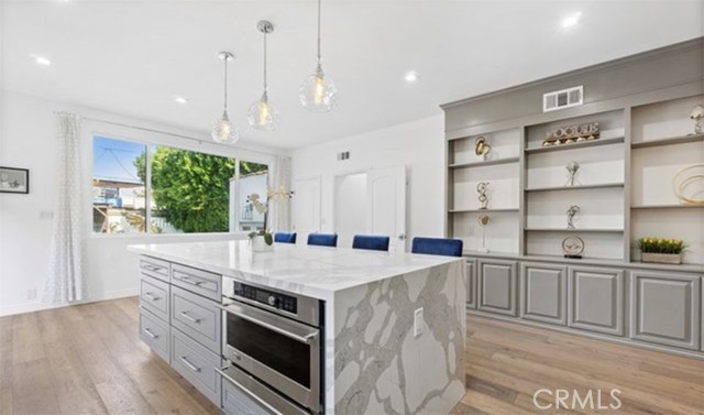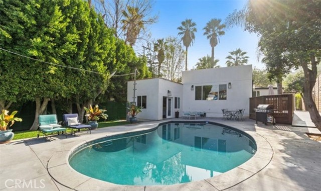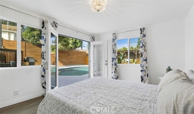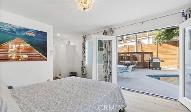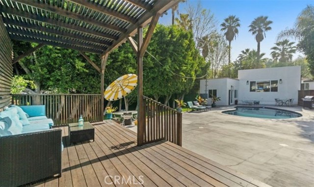 Step in through the front porch to be welcomed by a large and bright living room with custom built-ins, a gas fireplace, hardwood floors, and easy access to the kitchen. This 2,110 square foot home features 5 bedrooms, 4 bathrooms, an upgraded ADU with its own kitchen, bathroom, bedroom, living area and entrance. The immaculate kitchen features stainless steel appliances, marble countertops, a large center island, custom built-ins plenty of cabinet space. The two en-suite bedroom have beautifully remodeled bathrooms, and one has direct access to the backyard through the double doors. The remaining guest bedrooms are spacious and full of natural light and perfect for an office/work station set up. Enjoy the California sun in the entertainer's backyard, featuring a large deck and sparkling pool. Contact for short-term pricing.Interested in this Listing?
