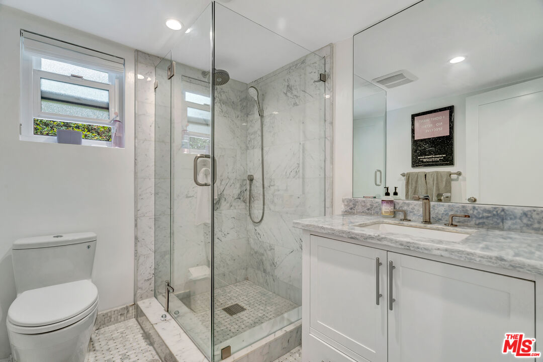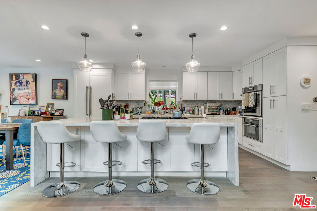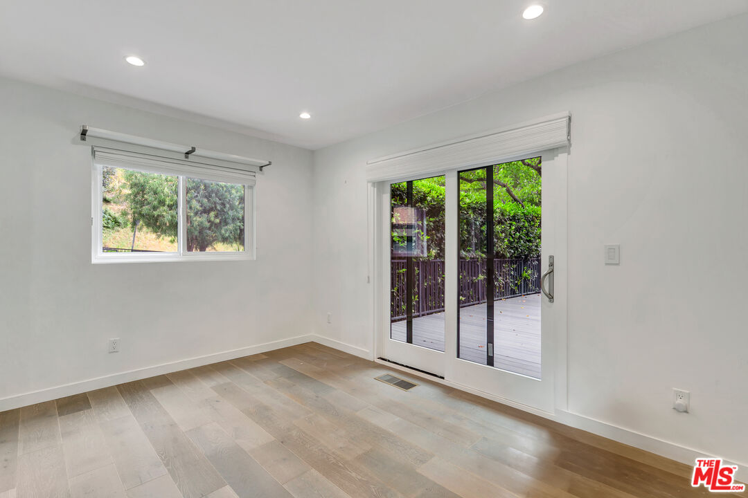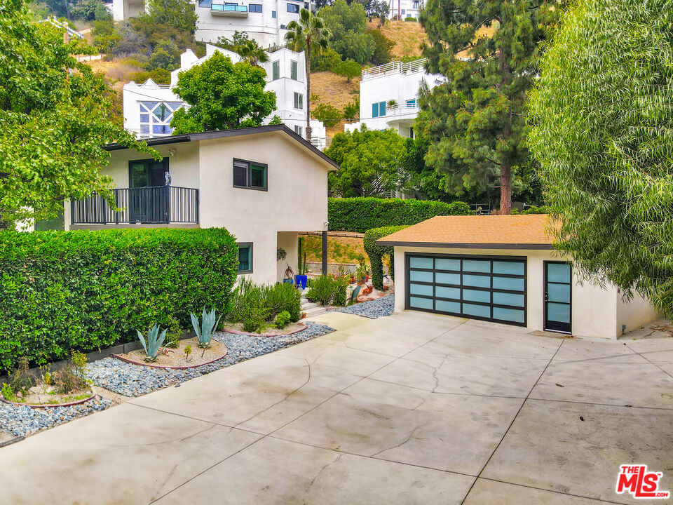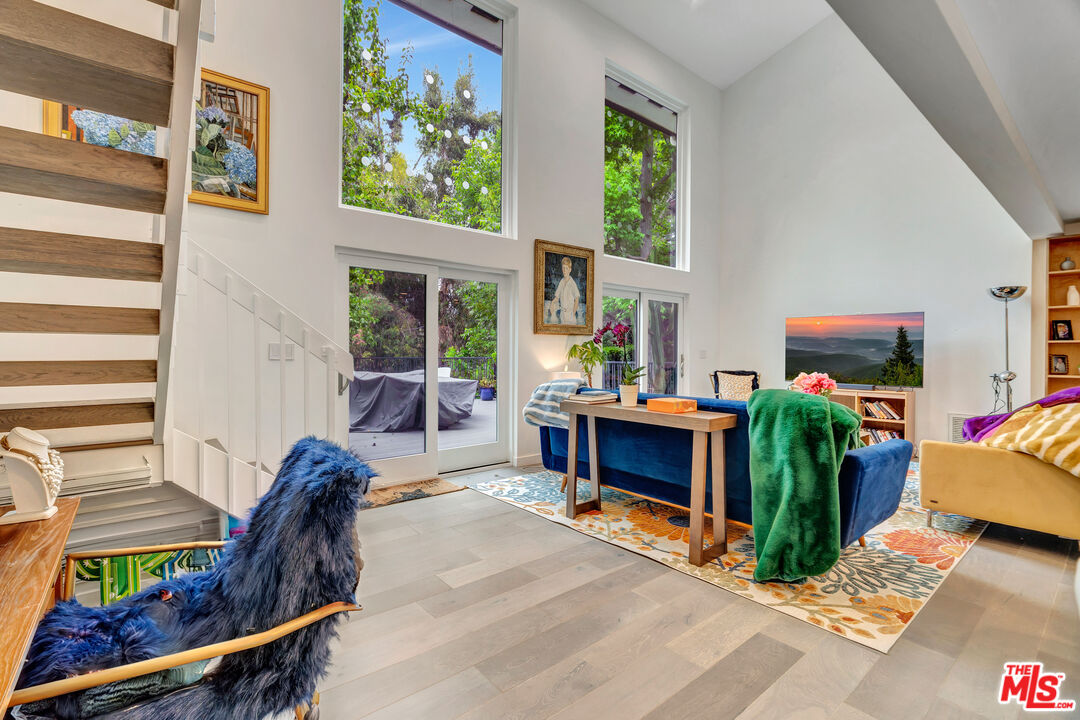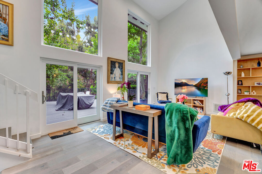This stunning 3-bedroom, 3-bath home welcomes you with soaring 15-foot windows that fill the main living space with natural light, highlighting the open-concept first floor. Glass doors open to an expansive, treehouse-like deck ideal for entertaining or relaxing in nature. The kitchen includes a striking 10-foot Quartzite waterfall island, generous cabinets, and high-end Thermador stainless steel appliances. The main level features a bedroom or office with sliding doors to the deck and a stylish three-quarter bath nearby for guestsUpstairs, the primary suite offers a spa-like escape with an oversized shower, freestanding soaking tub, and double sinks set in a seamless marble vanity. A custom walk-in closet and private balcony with serene treetop views complete the space. The laundry closet is conveniently located between the upstairs bedrooms. The secondary bedroom includes its own ensuite with a glass-enclosed tub/shower, marble countertop, and custom closet. Behind a gated entrance, you'll find a two-car garage and additional parking for up to 10 vehicles. Located close to top-rated schools, fine dining, and shopping, this Studio City home offers comfort, elegance, and privacy in a prime location.Interested in this Listing?